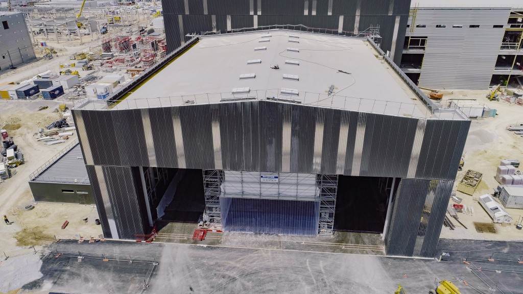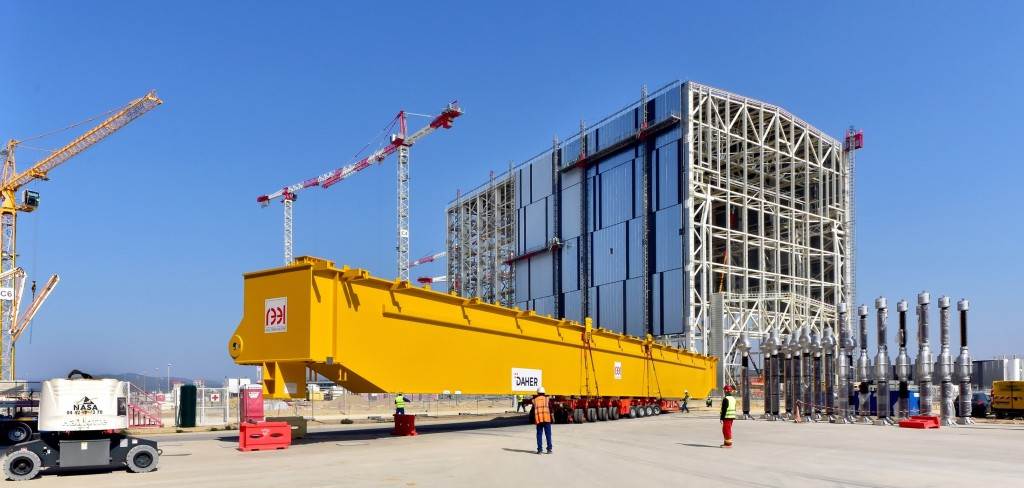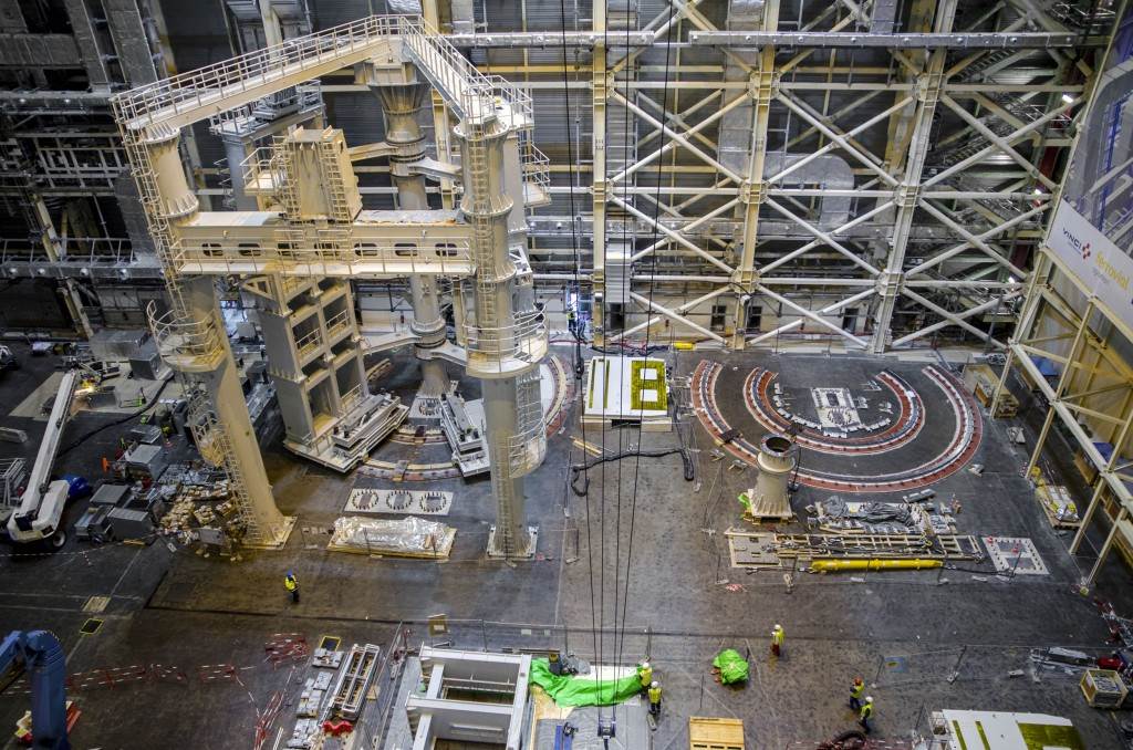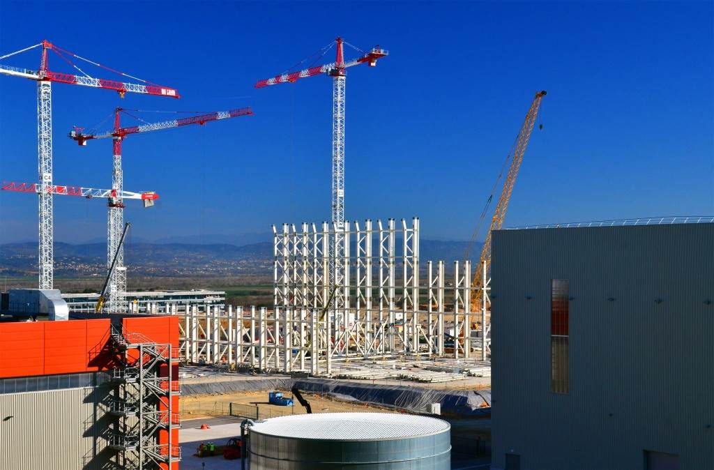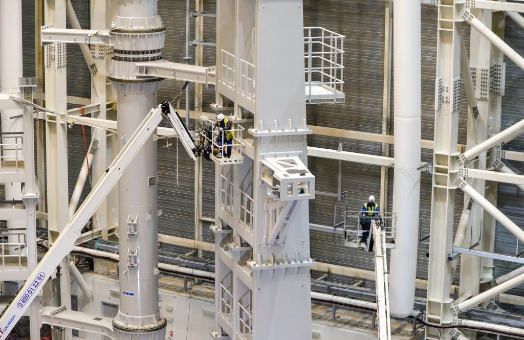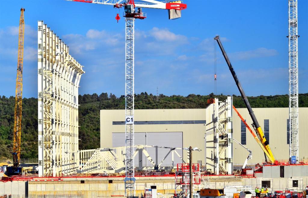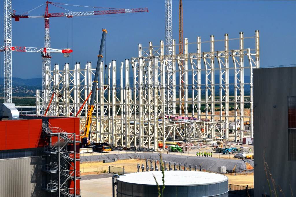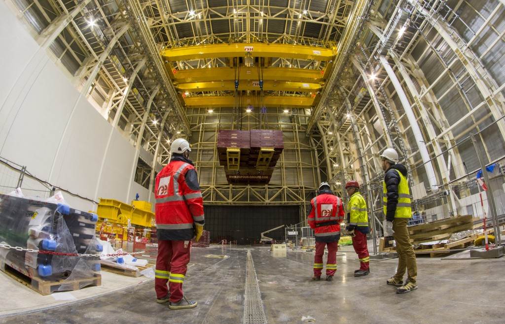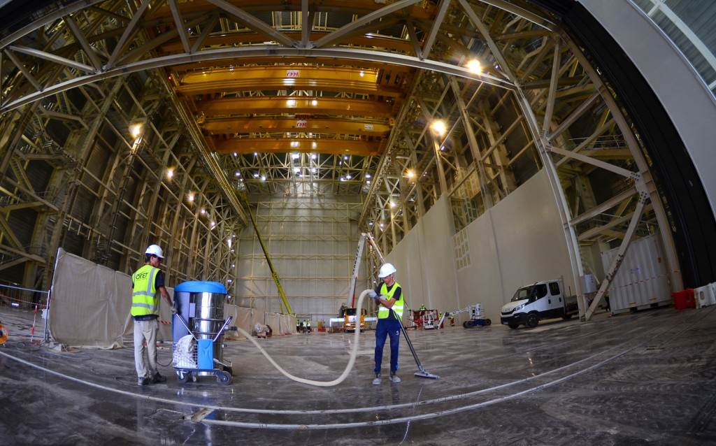 Connected directly to the Tokamak Building, the Assembly Hall is the location for pre-assembly activities on the massive components of the ITER device before they are transported to the Tokamak Pit for installation. This vast workshop hosts custom-made tools as well as two 750-tonne cranes that travel the length of the Assembly and Tokamak buildings.