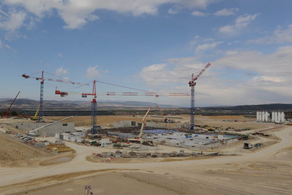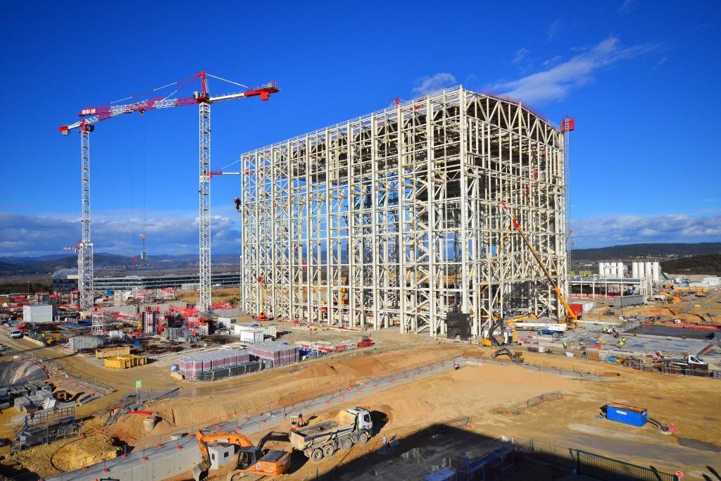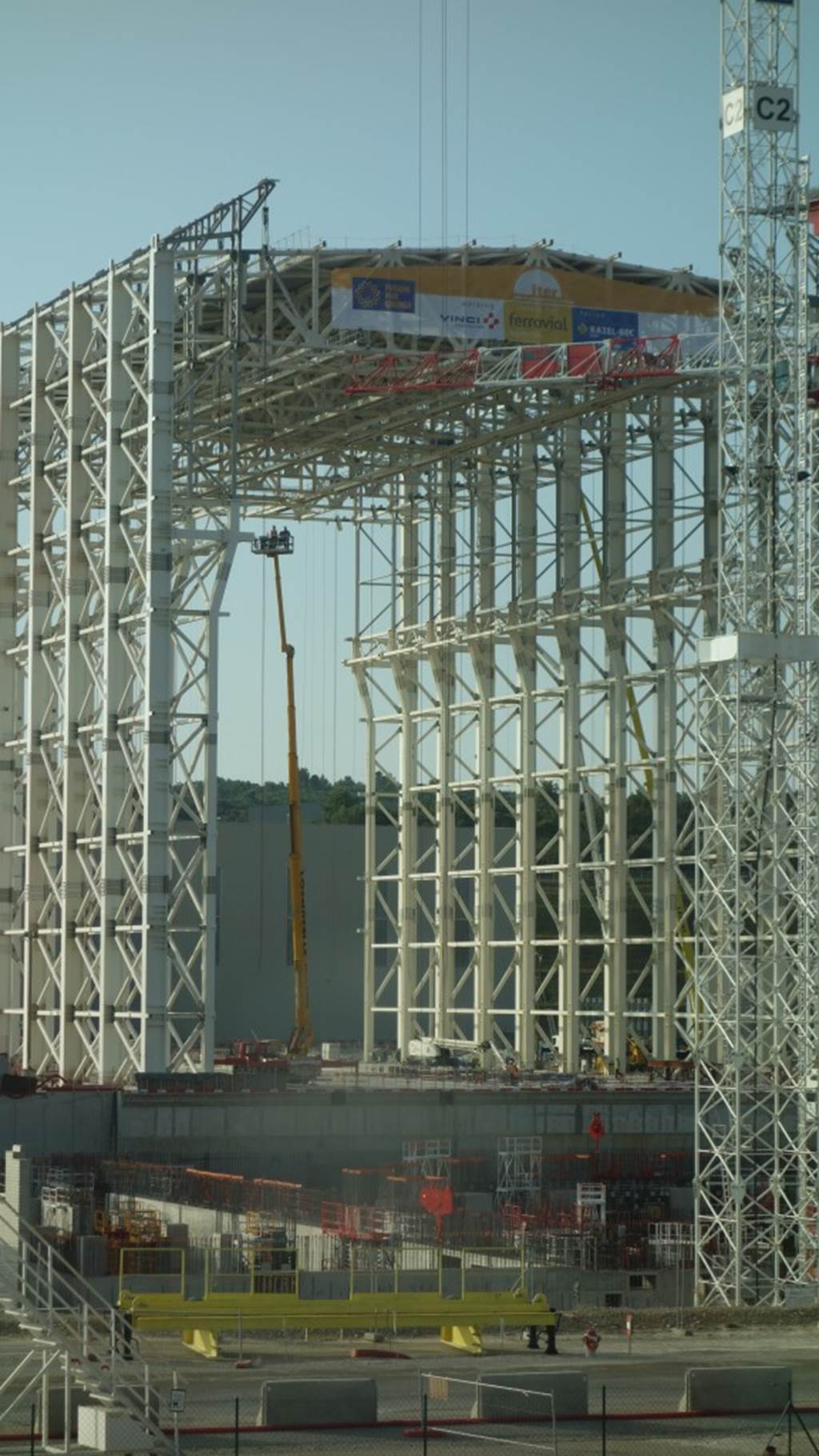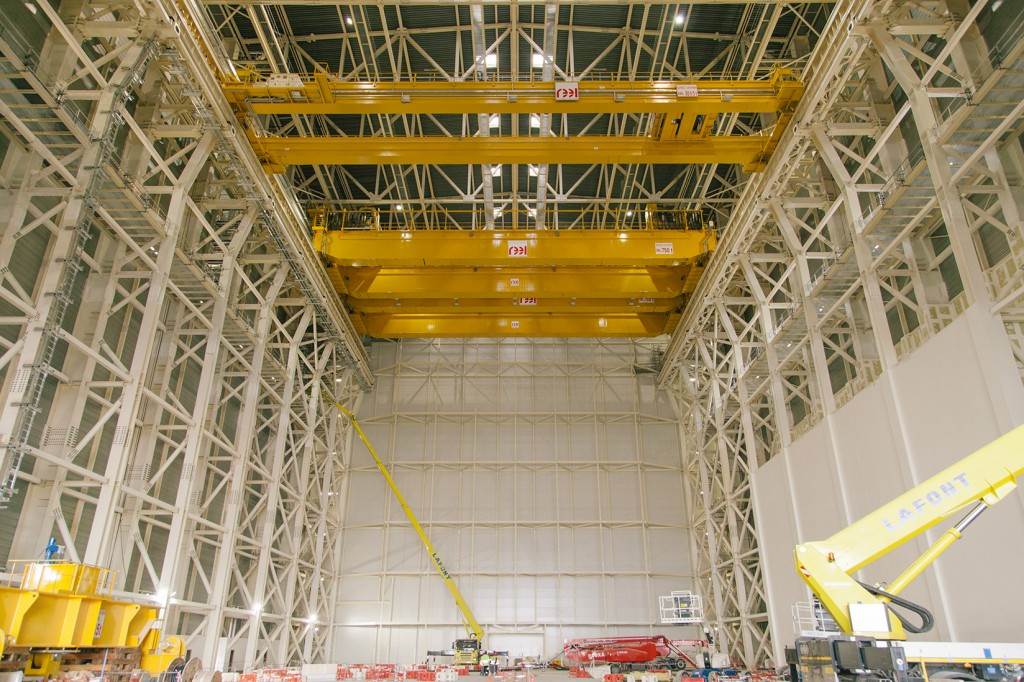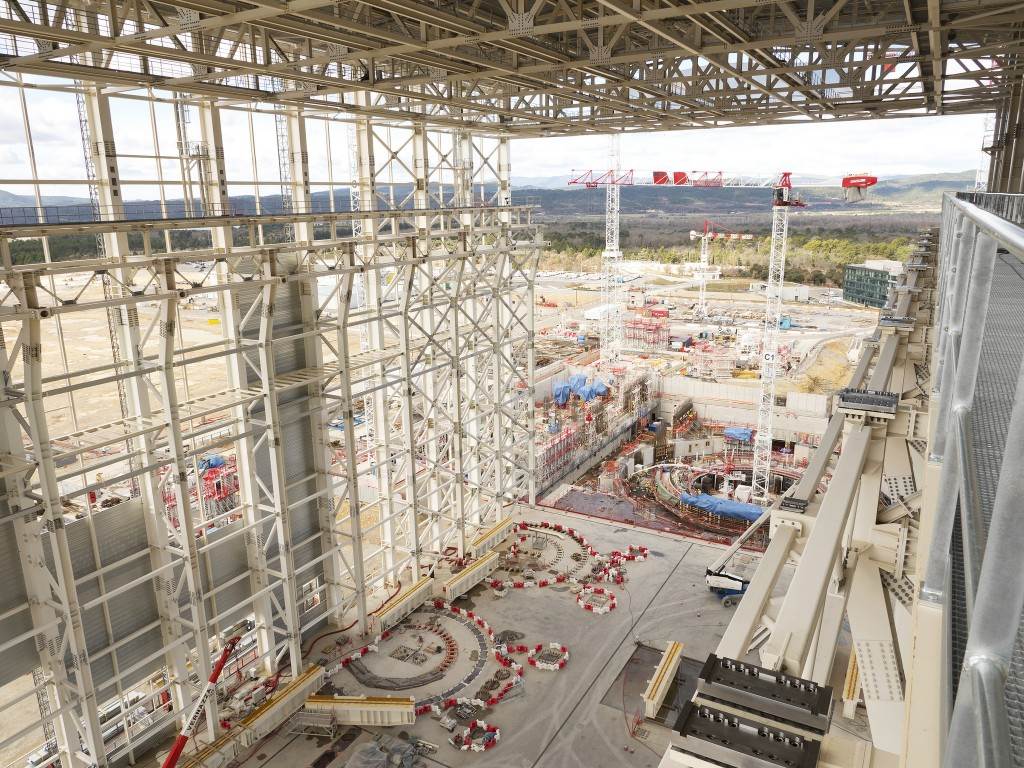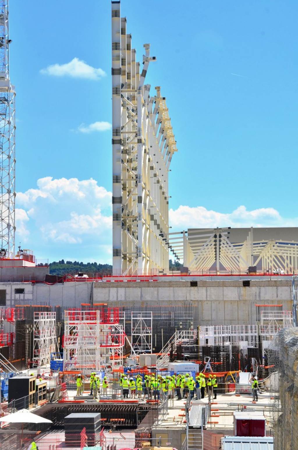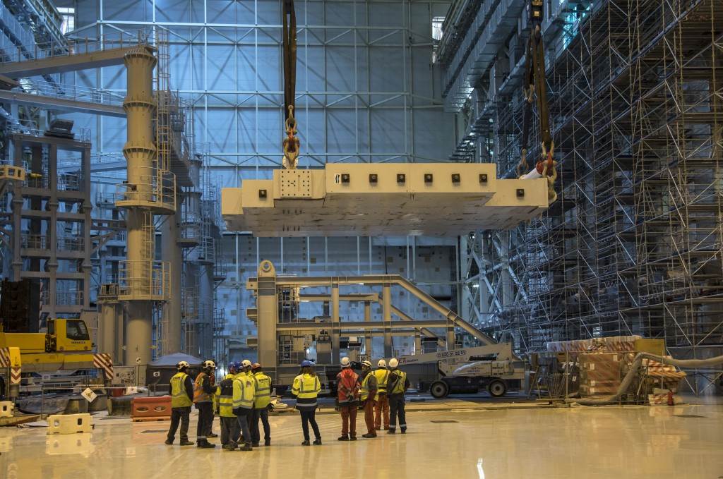 Connected directly to the Tokamak Building, the Assembly Hall is the location for pre-assembly activities on the massive components of the ITER device before they are transported to the Tokamak Pit for installation. This vast workshop hosts custom-made tools as well as two 750-tonne cranes that travel the length of the Assembly and Tokamak buildings.