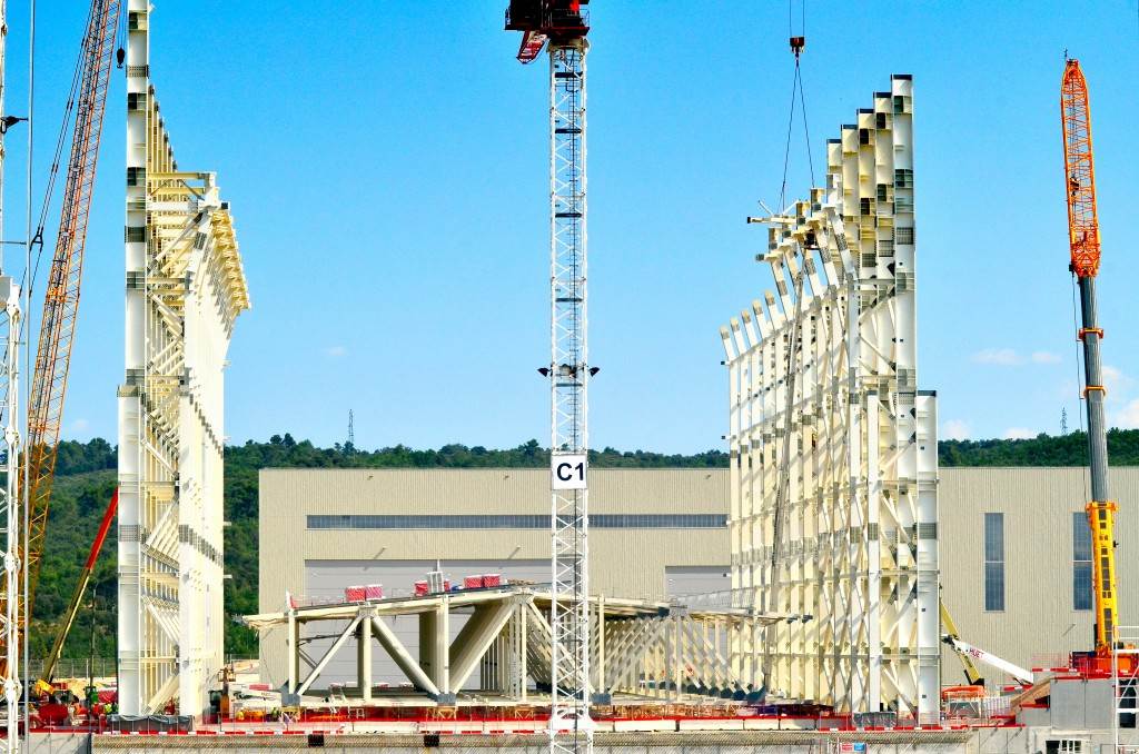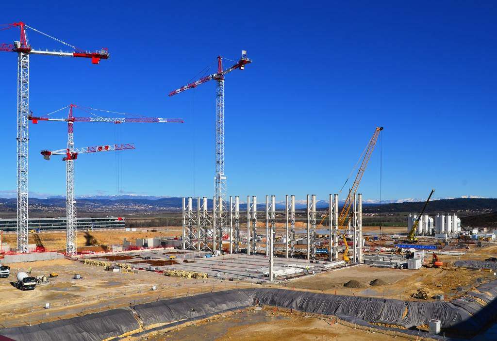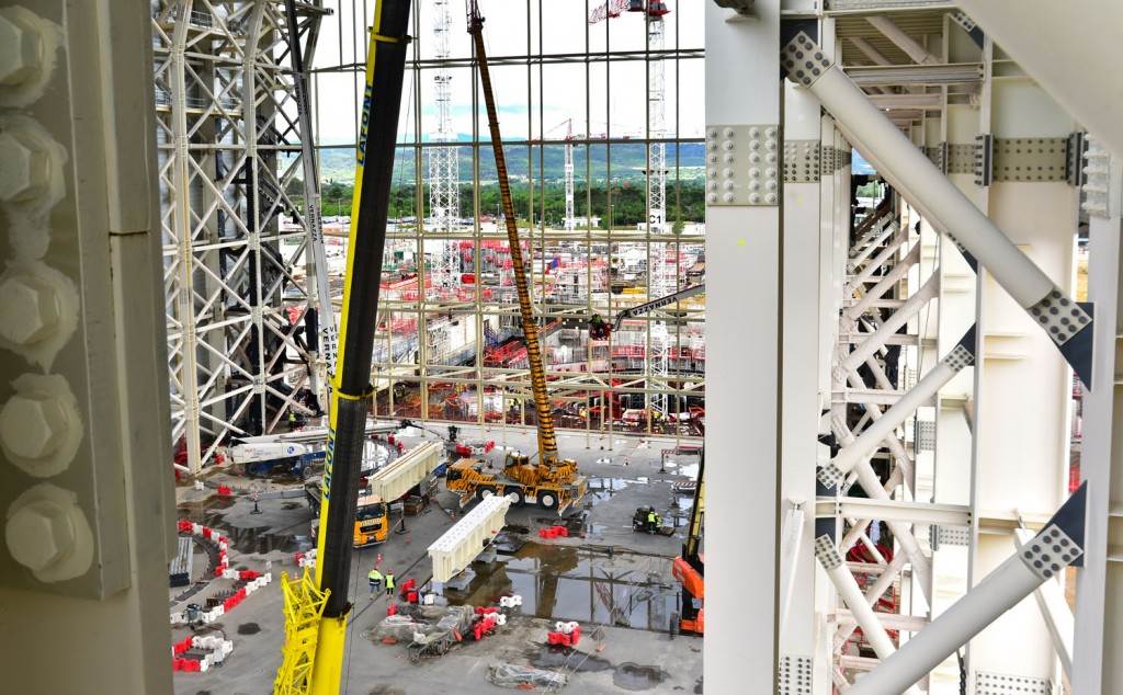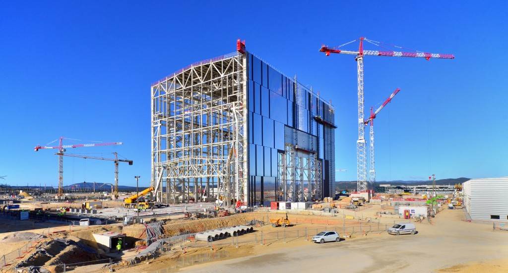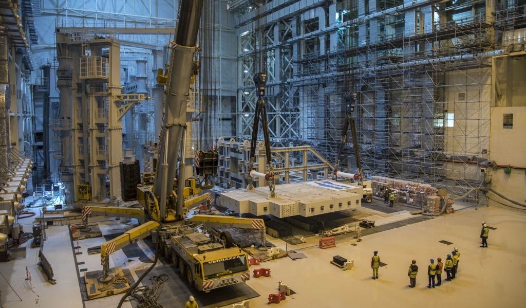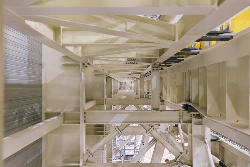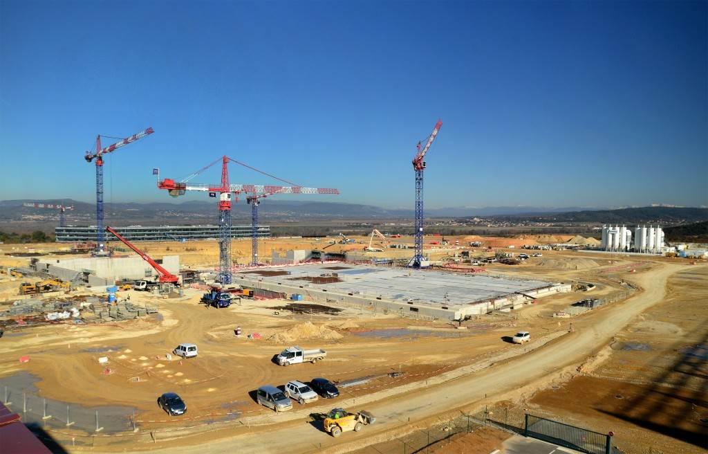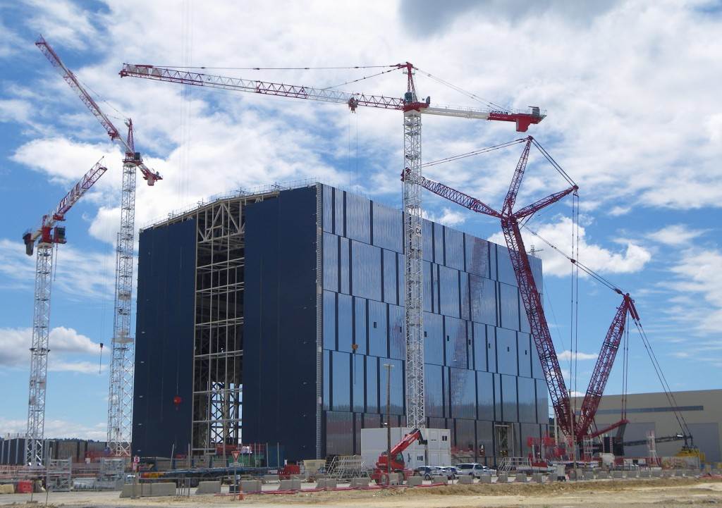Connected directly to the Tokamak Building, the Assembly Hall is the location for pre-assembly activities on the massive components of the ITER device before they are transported to the Tokamak Pit for installation. This vast workshop hosts custom-made tools as well as two 750-tonne cranes that travel the length of the Assembly and Tokamak buildings.