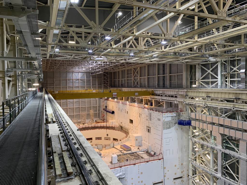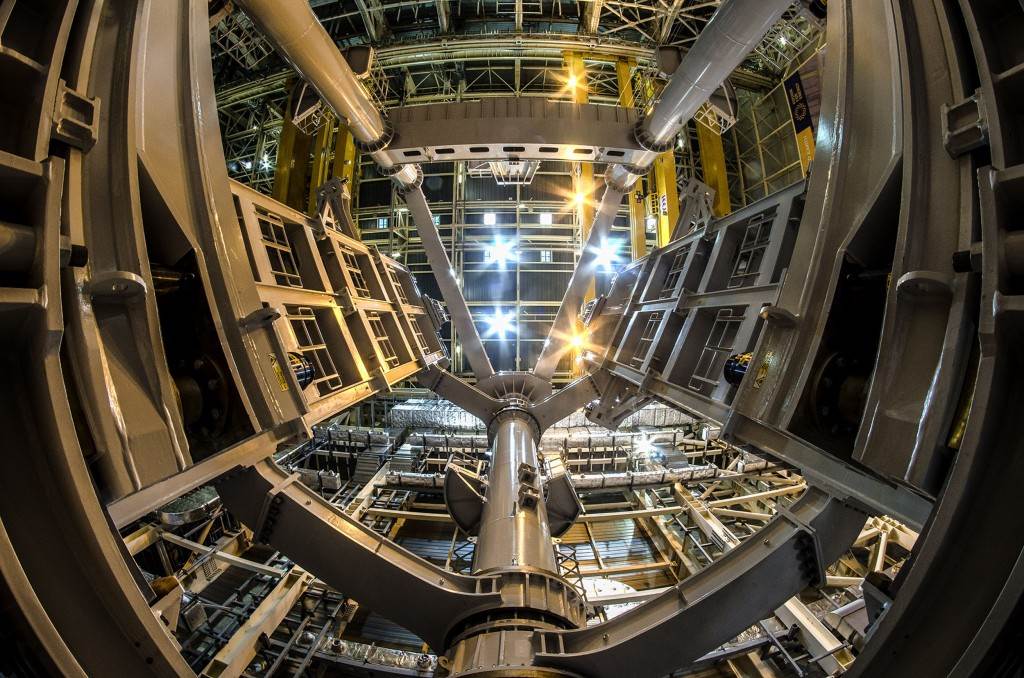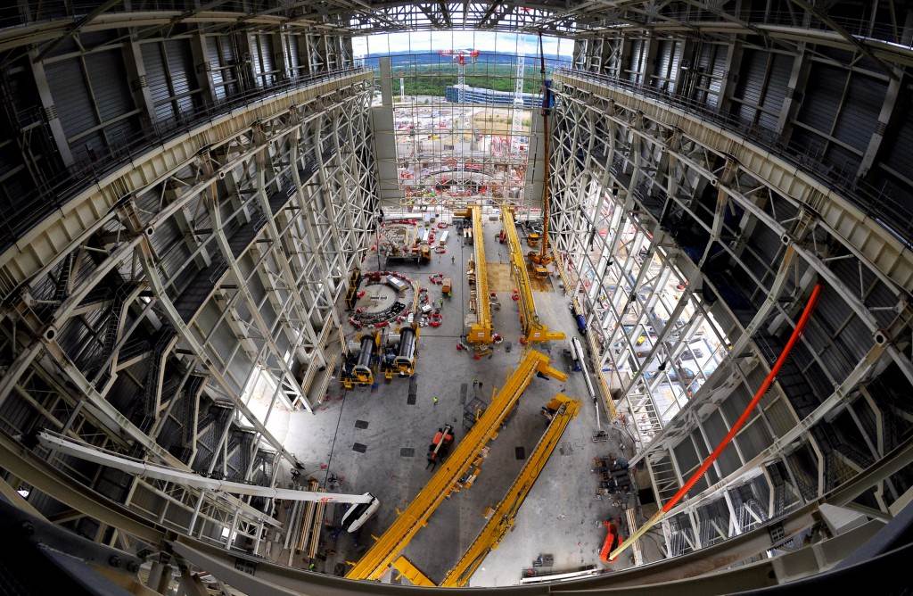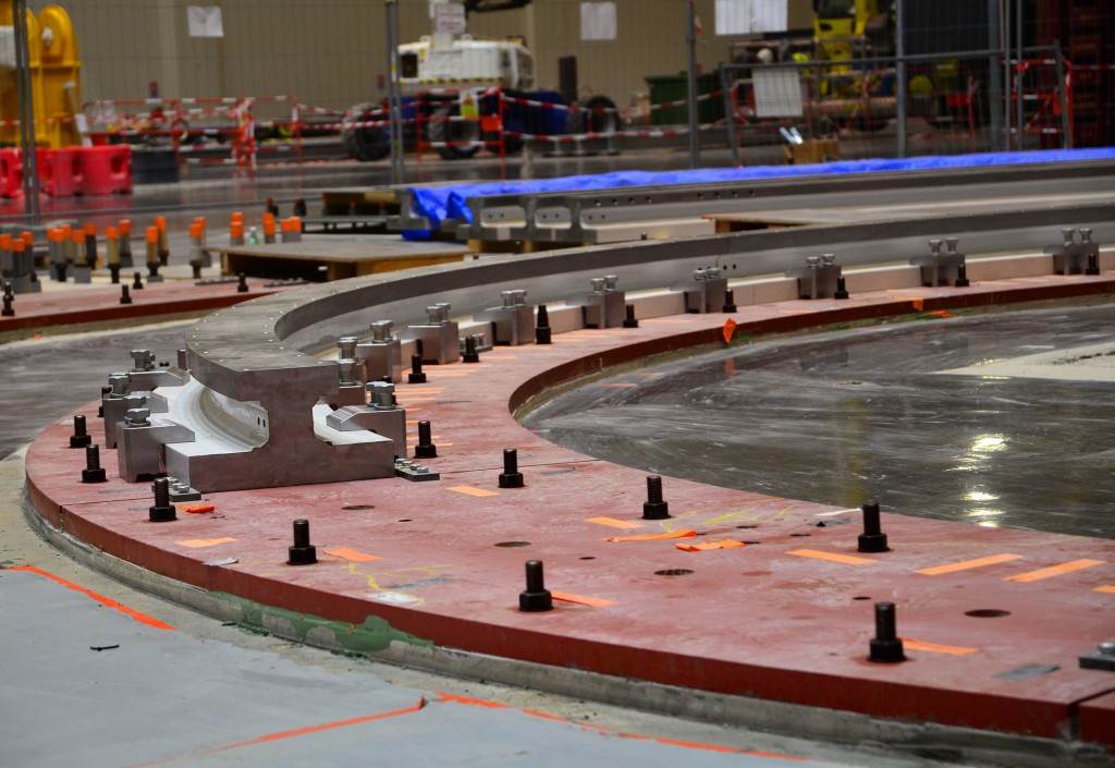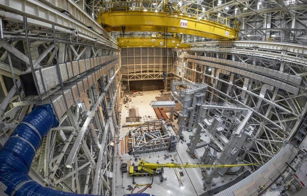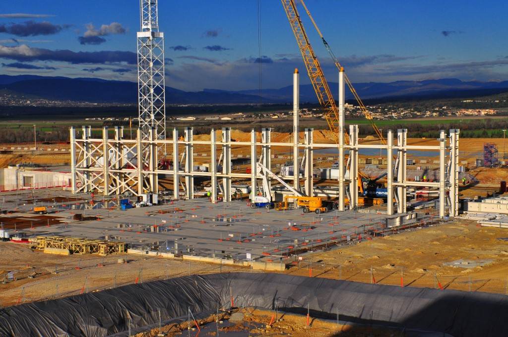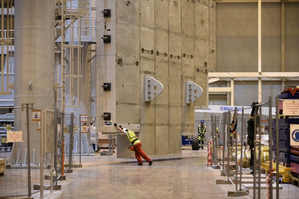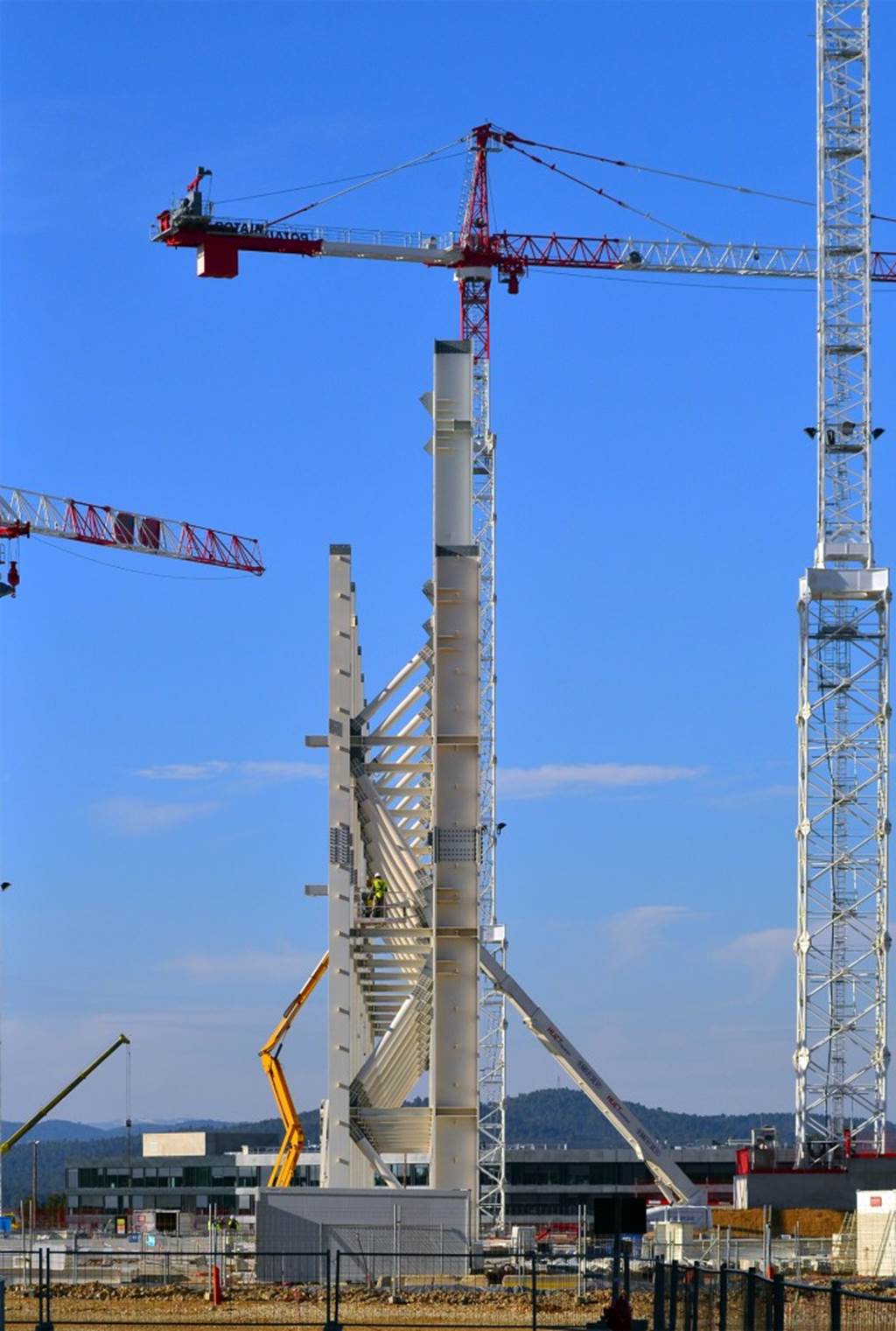 Connected directly to the Tokamak Building, the Assembly Hall is the location for pre-assembly activities on the massive components of the ITER device before they are transported to the Tokamak Pit for installation. This vast workshop hosts custom-made tools as well as two 750-tonne cranes that travel the length of the Assembly and Tokamak buildings.