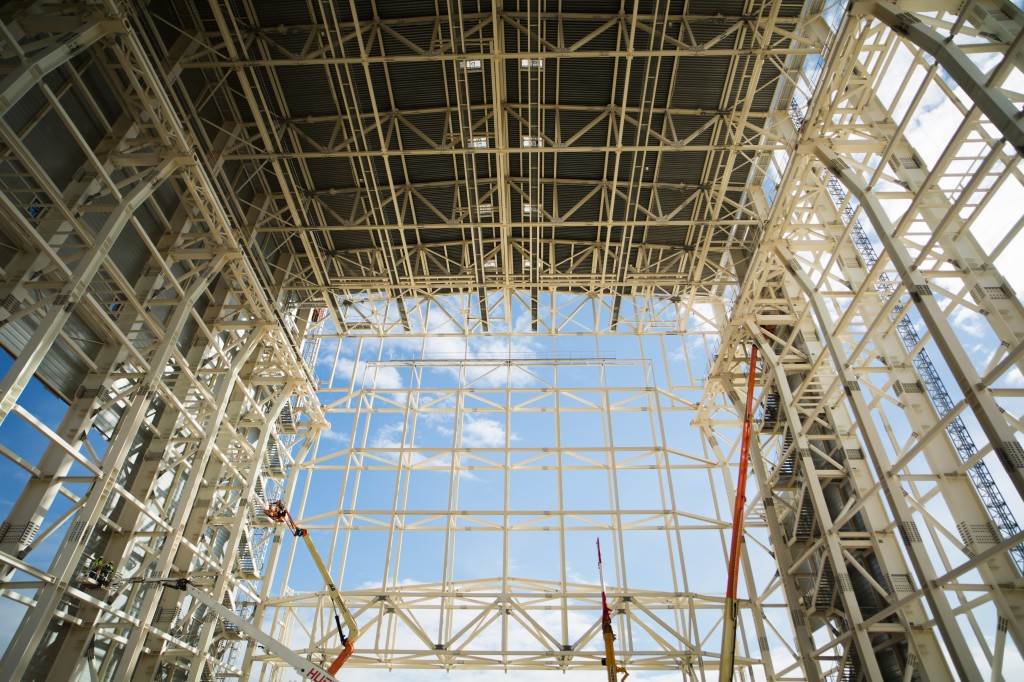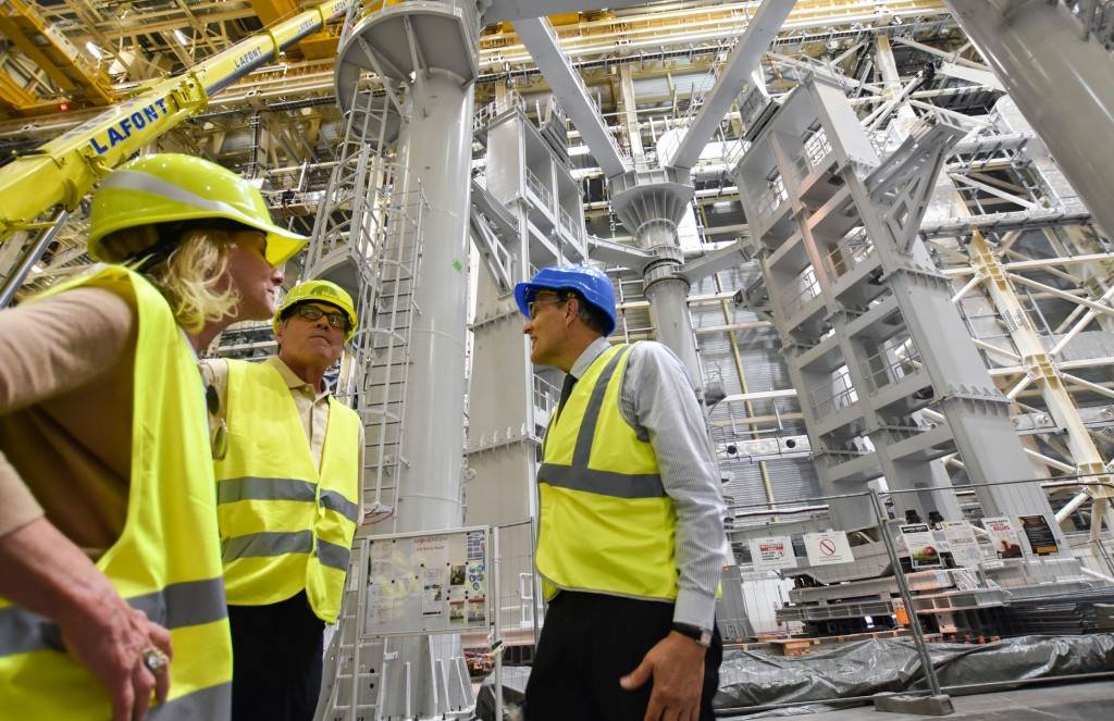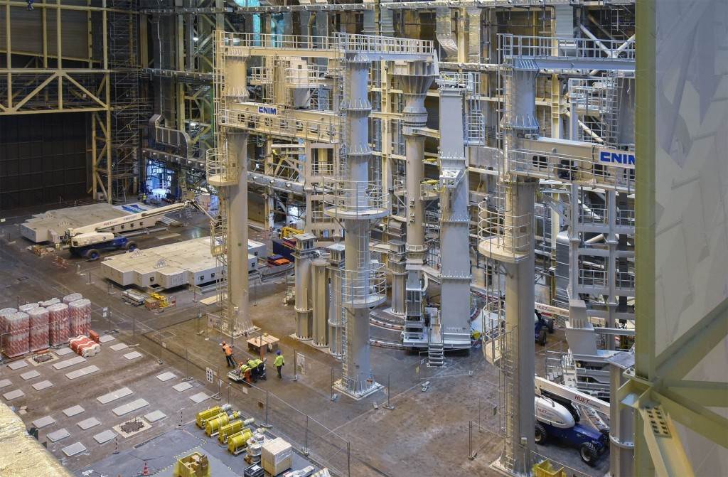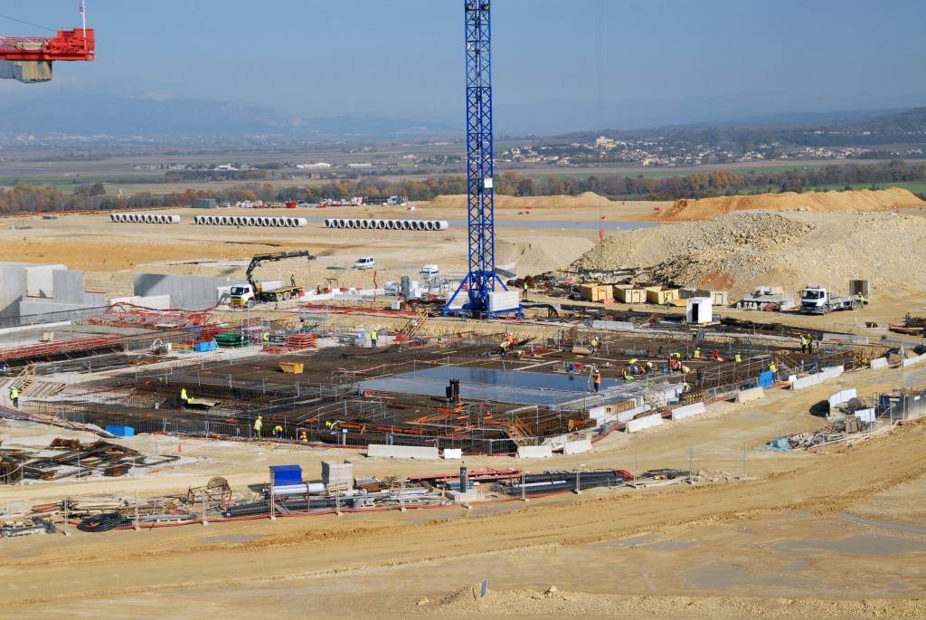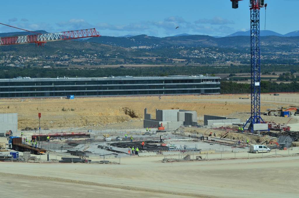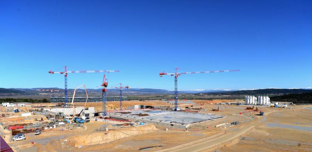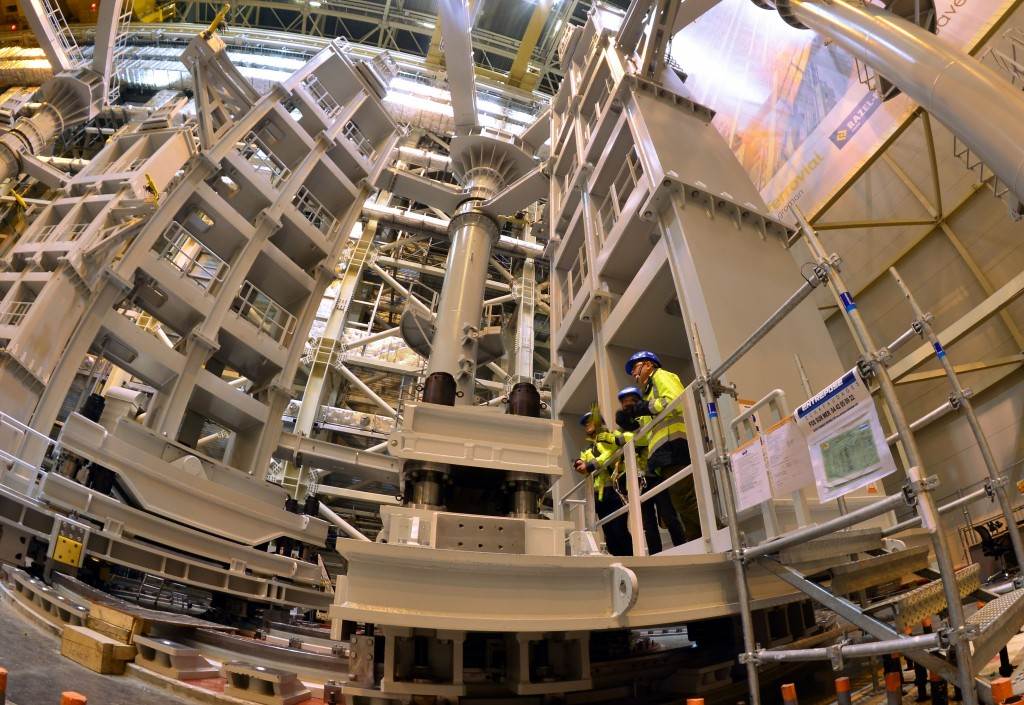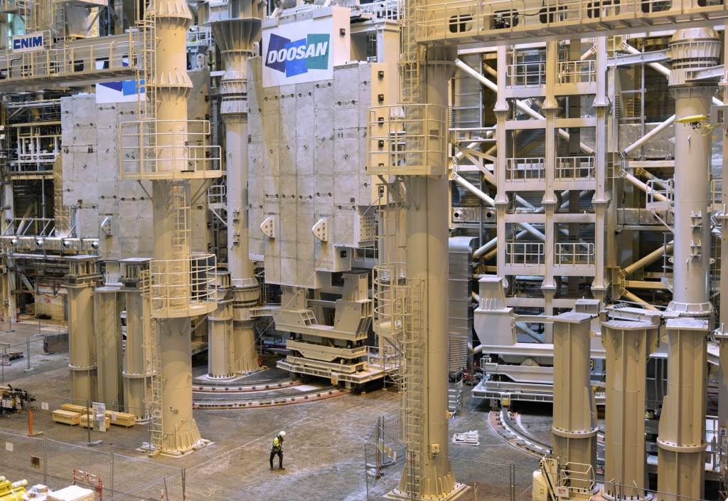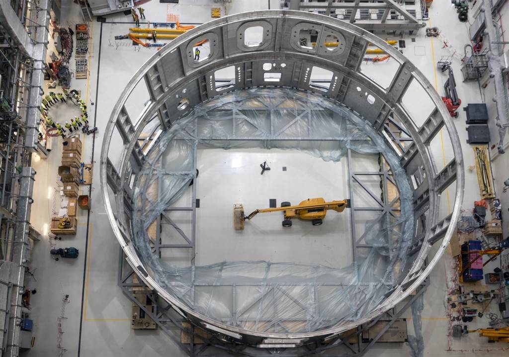 Connected directly to the Tokamak Building, the Assembly Hall is the location for pre-assembly activities on the massive components of the ITER device before they are transported to the Tokamak Pit for installation. This vast workshop hosts custom-made tools as well as two 750-tonne cranes that travel the length of the Assembly and Tokamak buildings.
