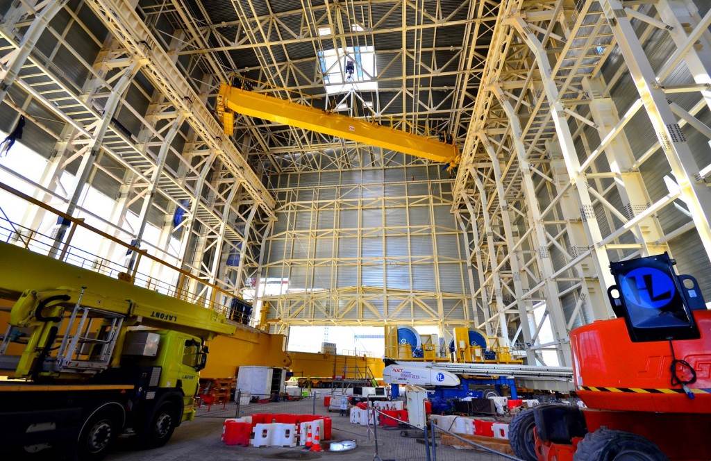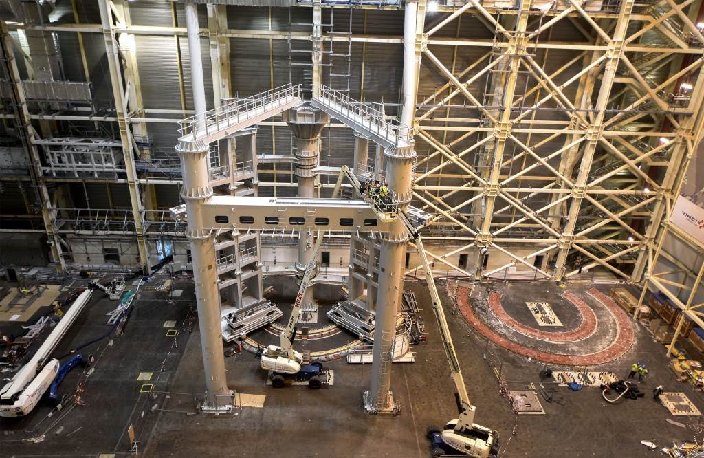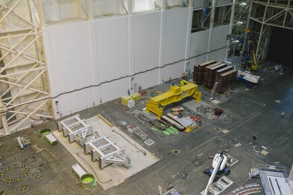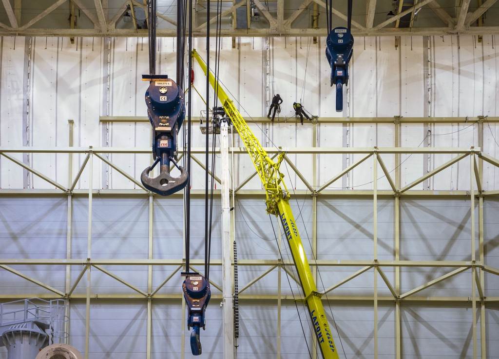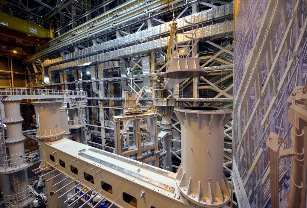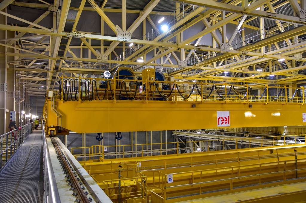 The main hoists of the Assembly Building, capable of handling loads of up to 1,500 tonnes. On the shop floor, some of the specialized tooling required to assemble, lift and finally manoeuver ITER's supersized components.