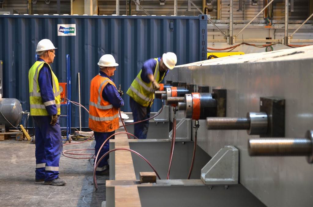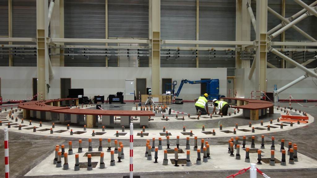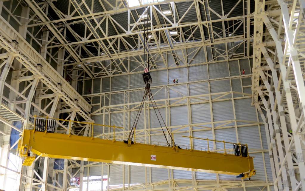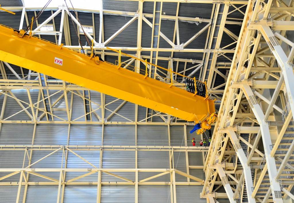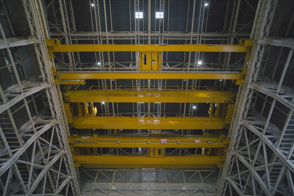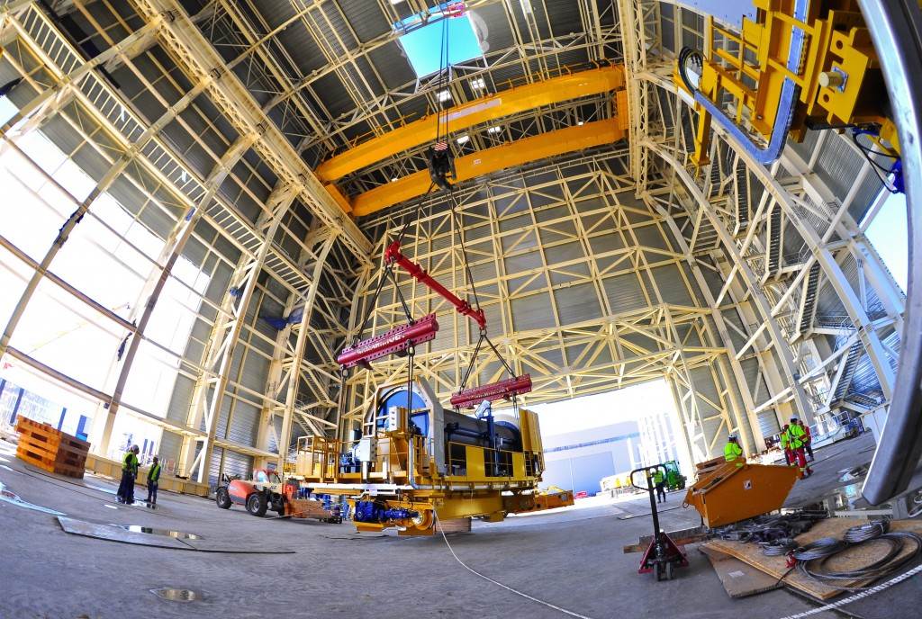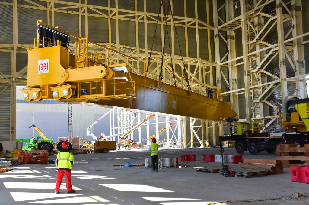 The main hoists of the Assembly Building, capable of handling loads of up to 1,500 tonnes. On the shop floor, some of the specialized tooling required to assemble, lift and finally manoeuver ITER's supersized components.