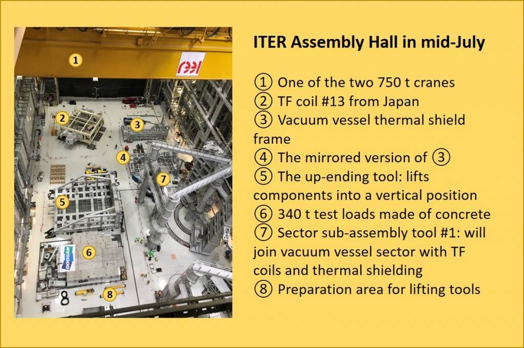 Here, for example, each of the nine steel sectors of the ITER vacuum vessel will be sub-assembled with thermal shielding and a pair of toroidal field coils before being lifted and positioned inside the machine. Here also, the six modules of the central solenoid will be stacked and consolidated within a support structure.