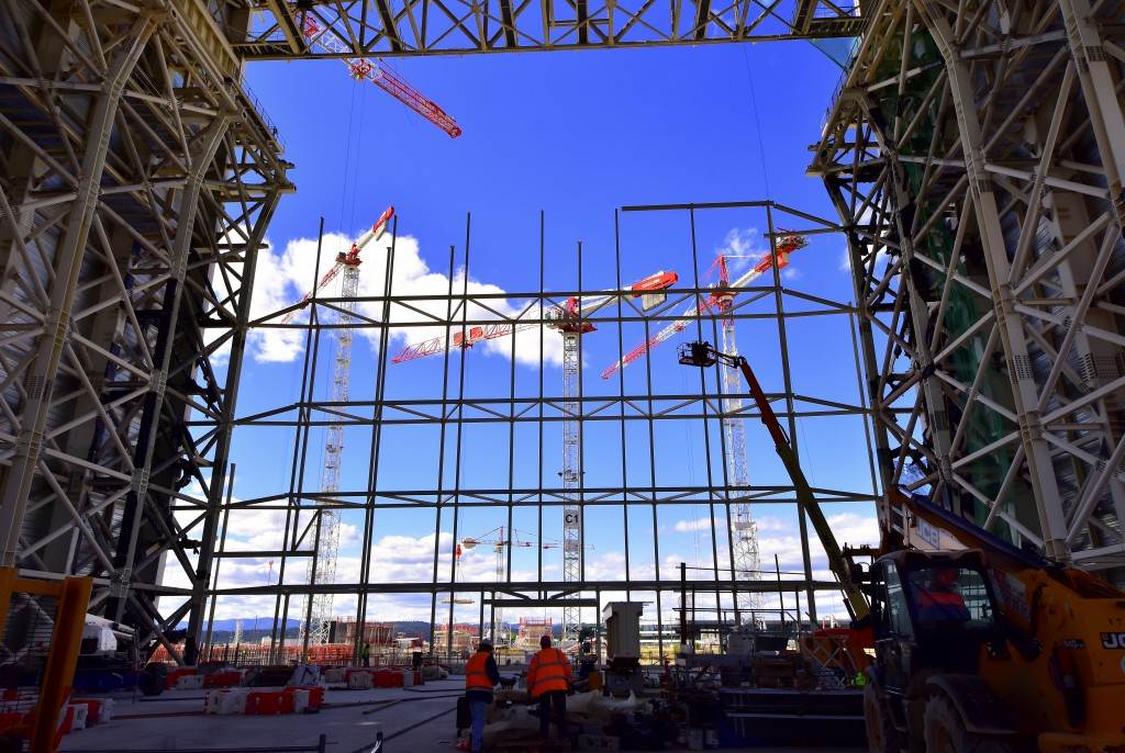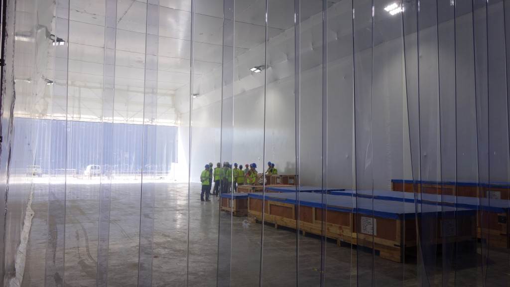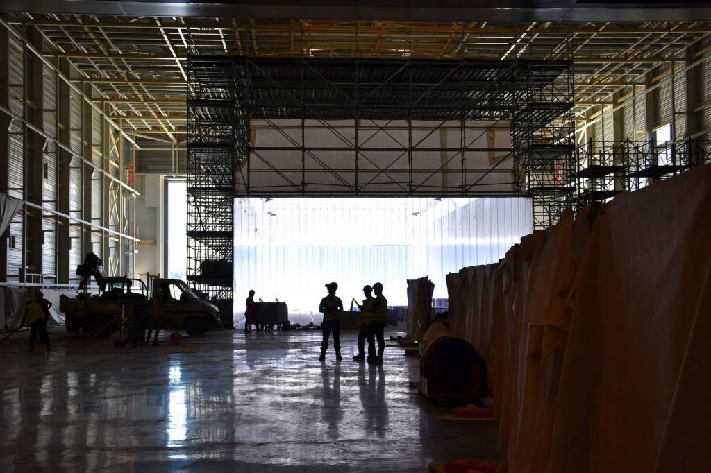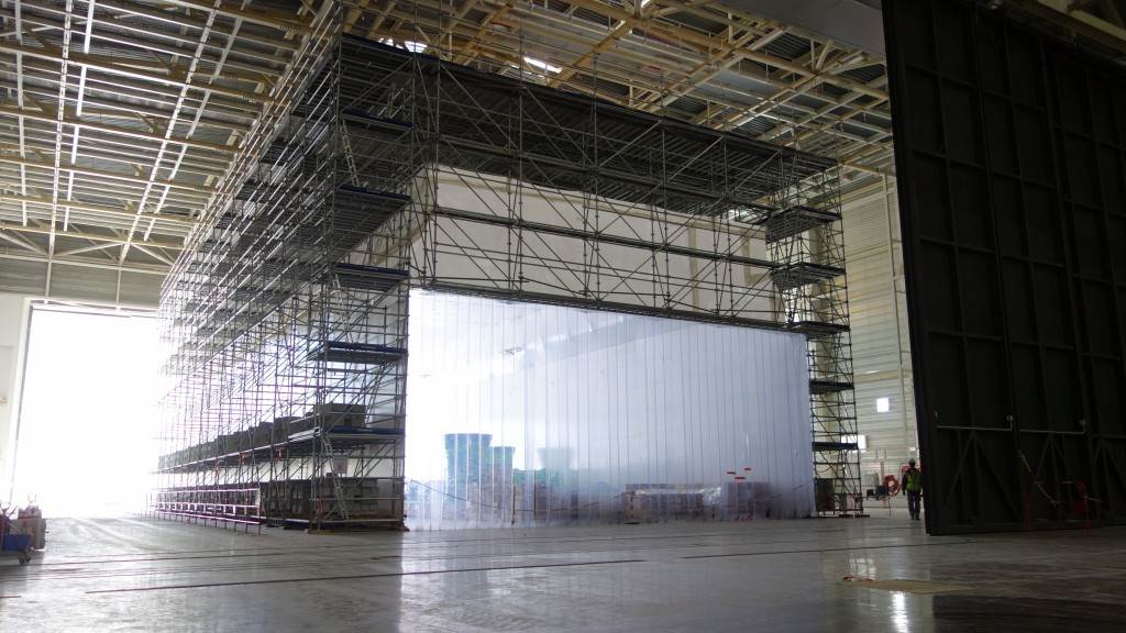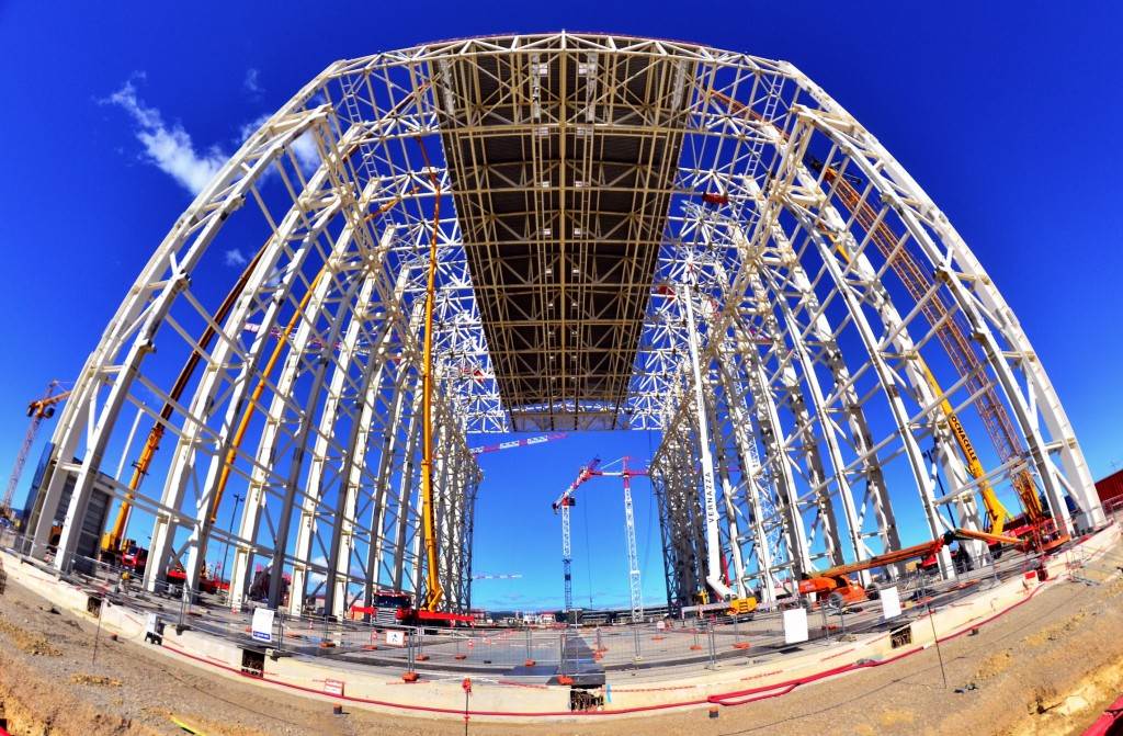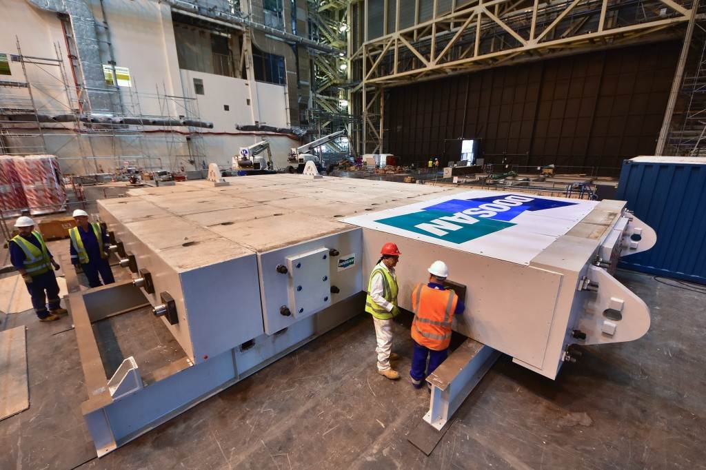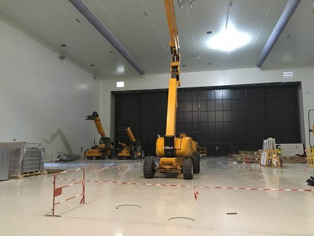 Work on the Assembly Hall began in June 2012 and was completed in September 2015 with the lifting of the massive 730-tonne roof structure. Two 750-tonne overhead cranes and two 50-tonne auxiliary cranes were installed and commissioned; tools for major assembly tasks were also put in place. In March 2020, the temporary wall separating the Assembly Hall from the Tokamak Building was removed, and the crane rails were extended over the Tokamak assembly pit to allow for the start of machine assembly.