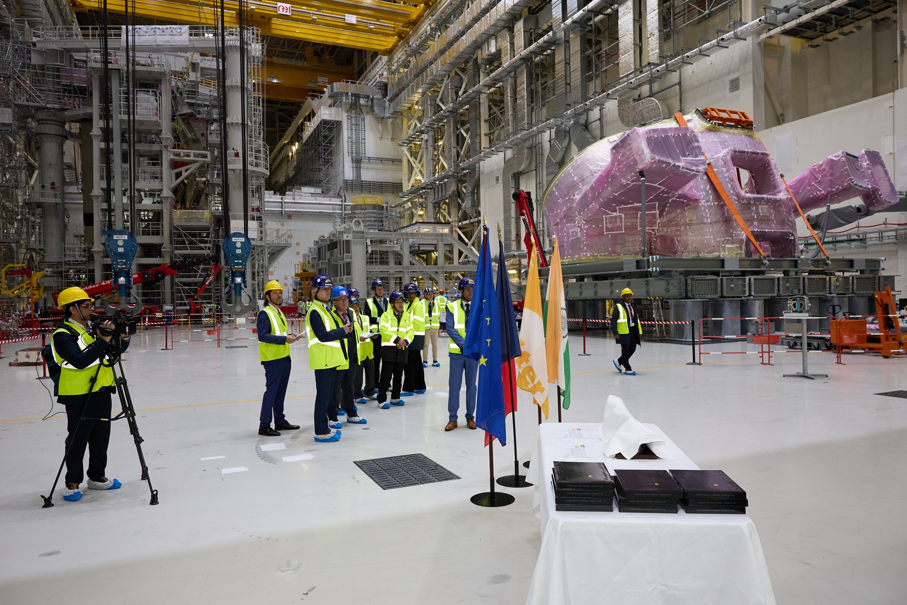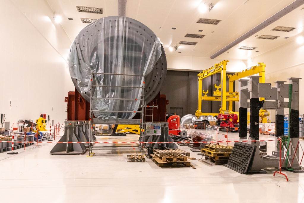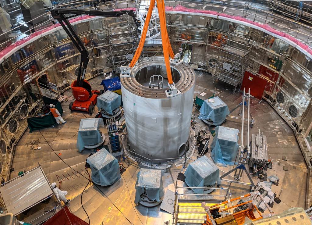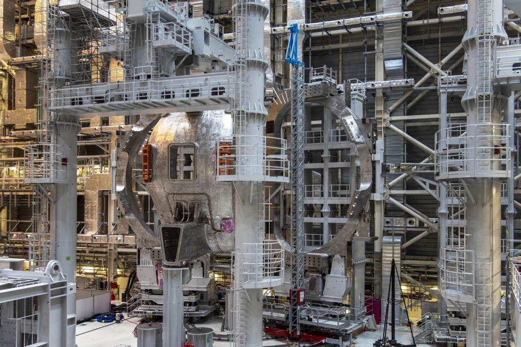 Purpose-built transportation and lifting tools have been designed for the installation of each cryostat section (base, lower cylinder, upper cylinder, top lid). Once installed, the sections are brought into alignment with the tokamak global coordinate system through hydraulic jacks. (Procured by the ITER Organization)