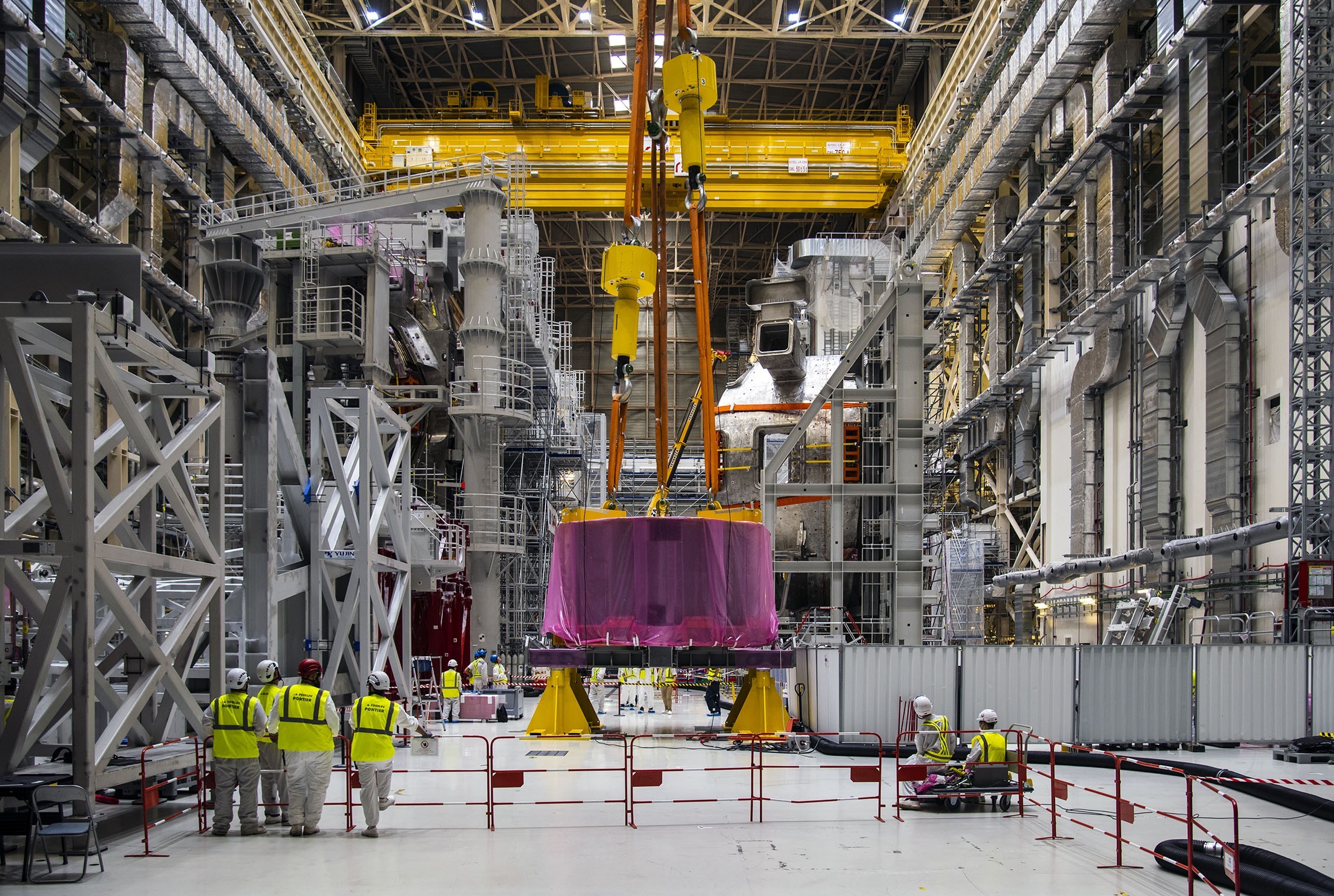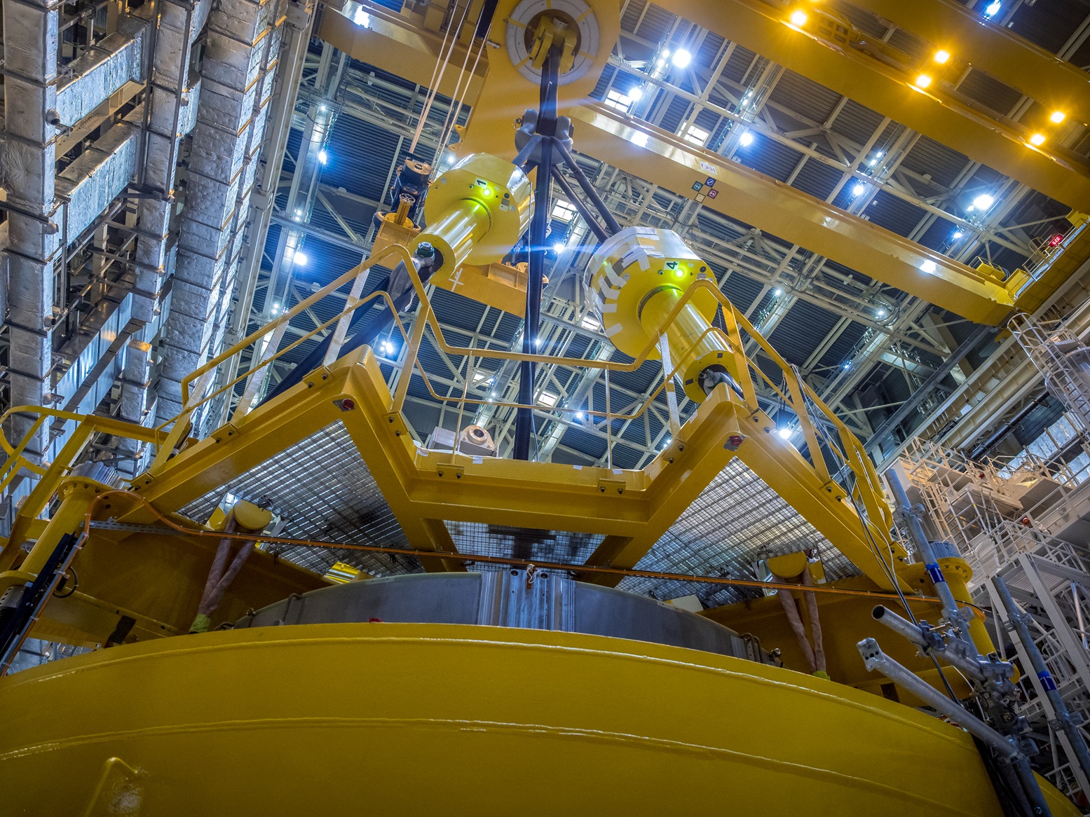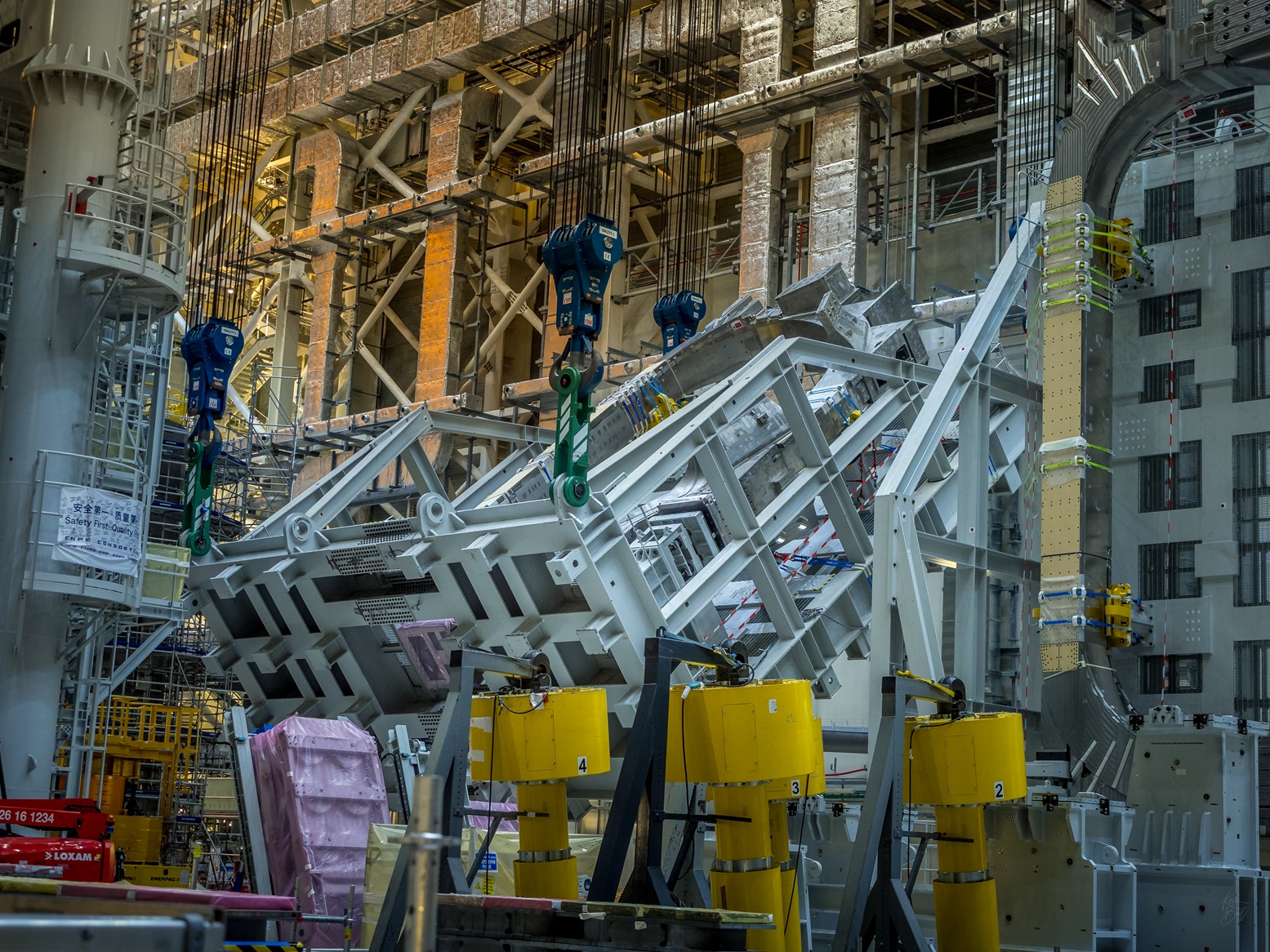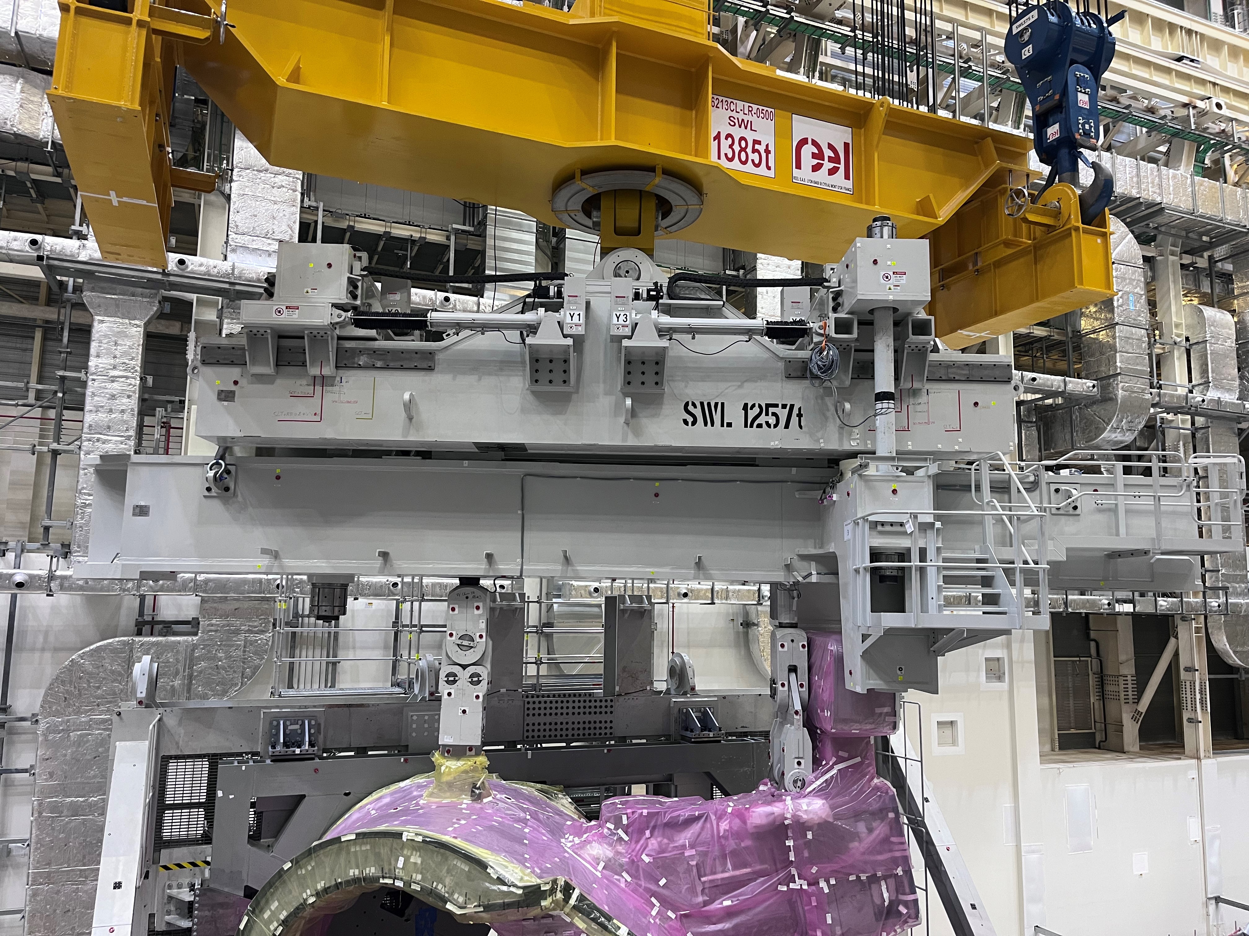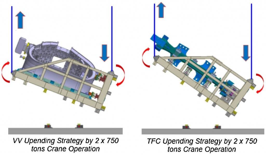 The tools have loading capacities that vary from 500 tonnes for the "upending" tool that turns vacuum vessel sectors from horizontal to vertical, to 1,500 tonnes for the heavy lift cranes overhead in the assembly theatre.