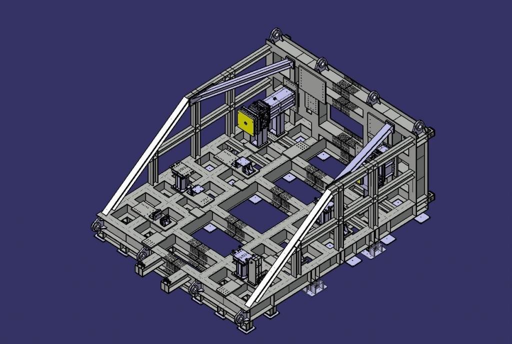 The in-pit installation tool for toroidal field coil pairs moves the D-shaped superconducting coils a few millimetres along three axes and ensures their precise positioning inside of the Tokamak pit to within 1/10th of a millimetre. It also performs the final adjustment of the Tokamak's nine sectors. (Procured by the ITER Organization)