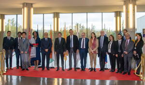 From left to right: Takayoshi Omae, head of the ITER Construction Project Office; KR Sriram, head of the ITER Office of the Director-General; Toshio Kaneko, special assistant to the IAEA Director General; DeLeah Lockridge, head of ITER's Department of Engineering Services; Sergio Orlandi, head of the ITER Construction Project; Rafael Grossi, IAEA Director General; Pietro Barabaschi, ITER Director-General; Massimo Garribba, Chair of the ITER Council Chair, European Deputy DG ENER; Anne-Isabelle Etienvre, Chairman of the CEA; Jean-Louis Falconi, CEA director of international relations; Laetitia Grammatico, head of the ITER Administration Department; Matteo Barbarino, IAEA fusion expert; Diego Candano Laris, advisor to the IAEA Director General; Sayed Ashraf, scientific adviser to the IAEA Director General; and Katja Rauhansalo, ITER Council Secretary.