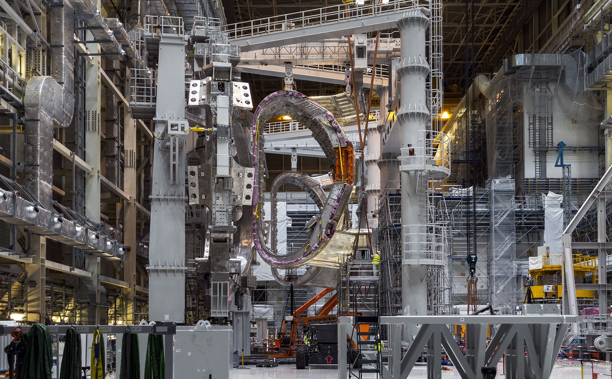 One year ago, the first of nine vacuum vessel sector modules (#6) had been transferred in the Tokamak pit and two others (#7 and #8) were in preparation in sub-assembly tooling in the Assembly Hall, where the 440-tonne sectors were being matched with thermal shield panels and toroidal field coils.