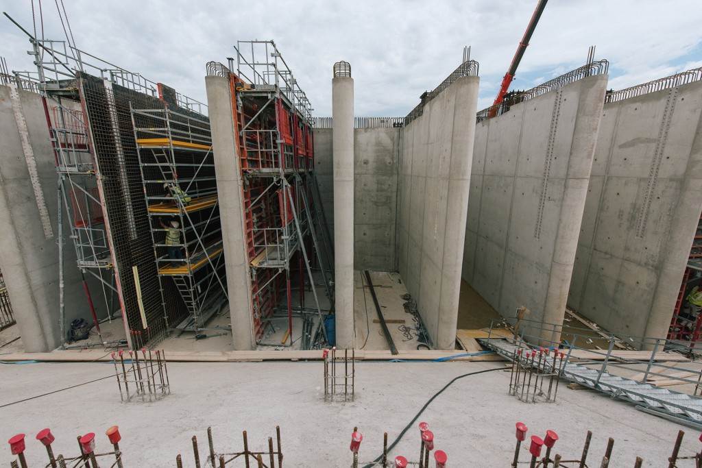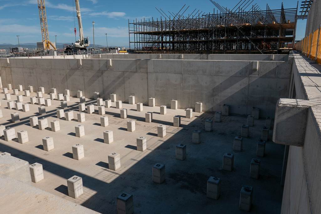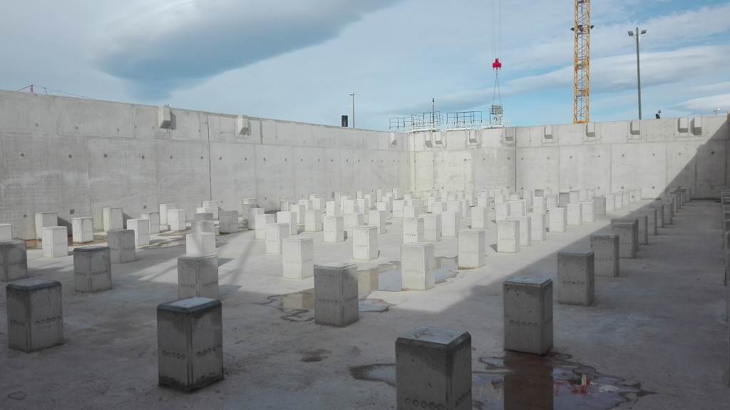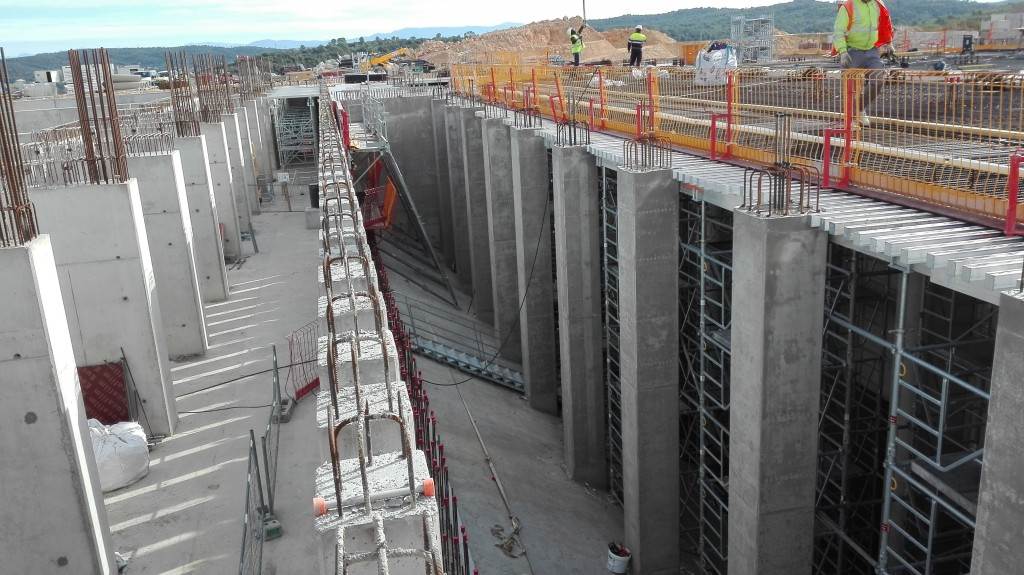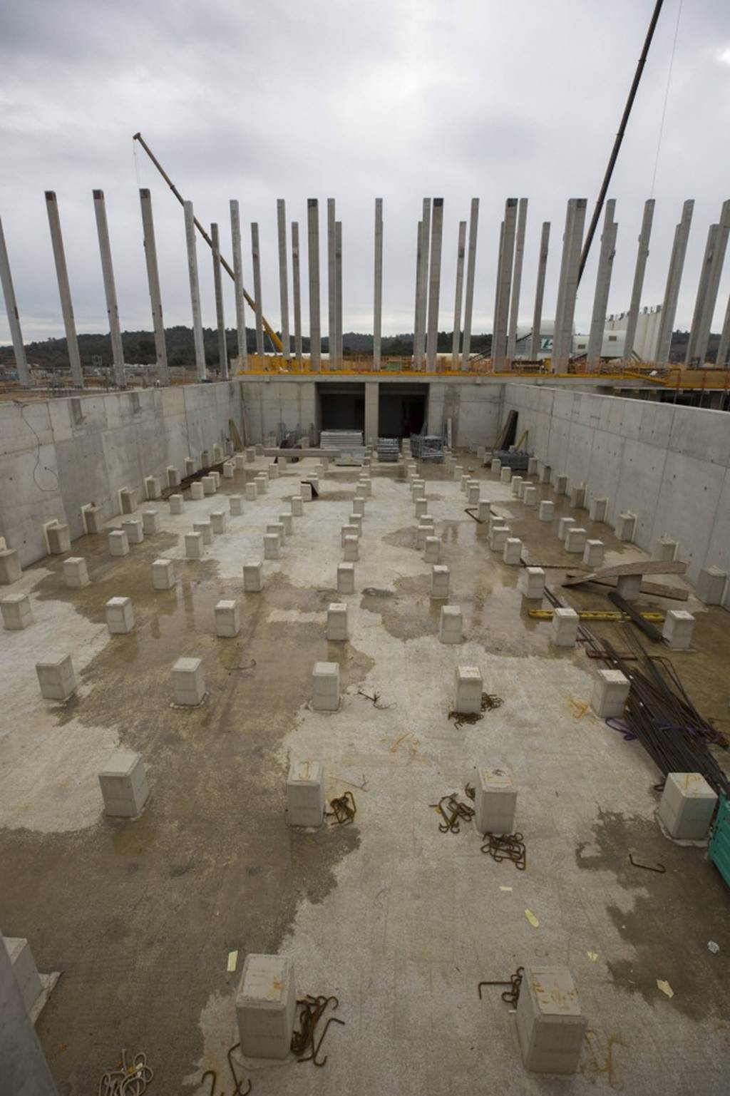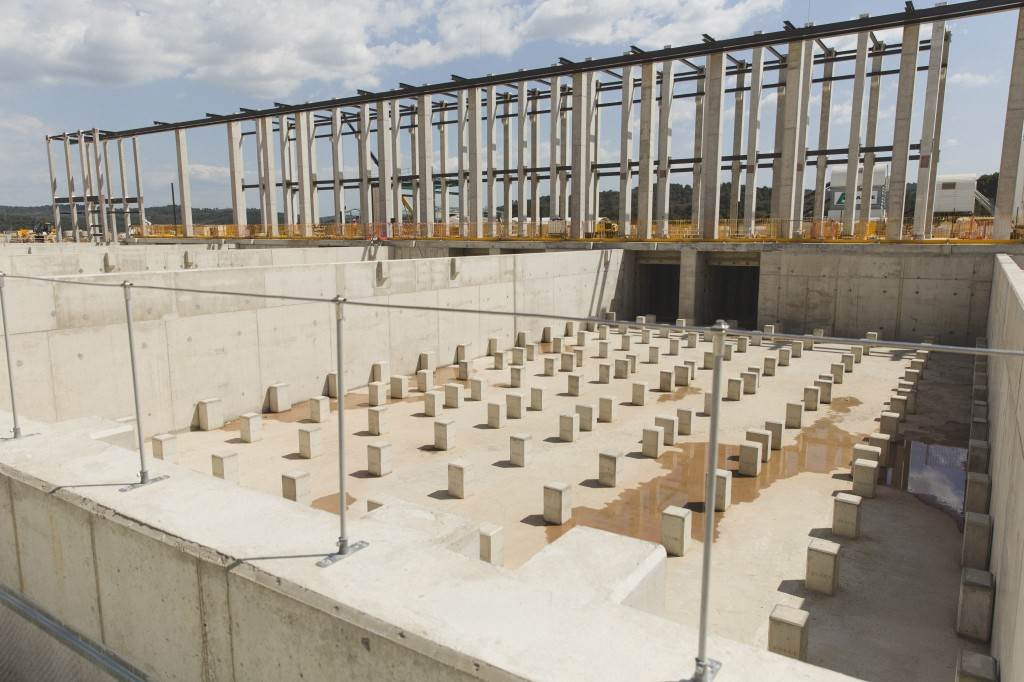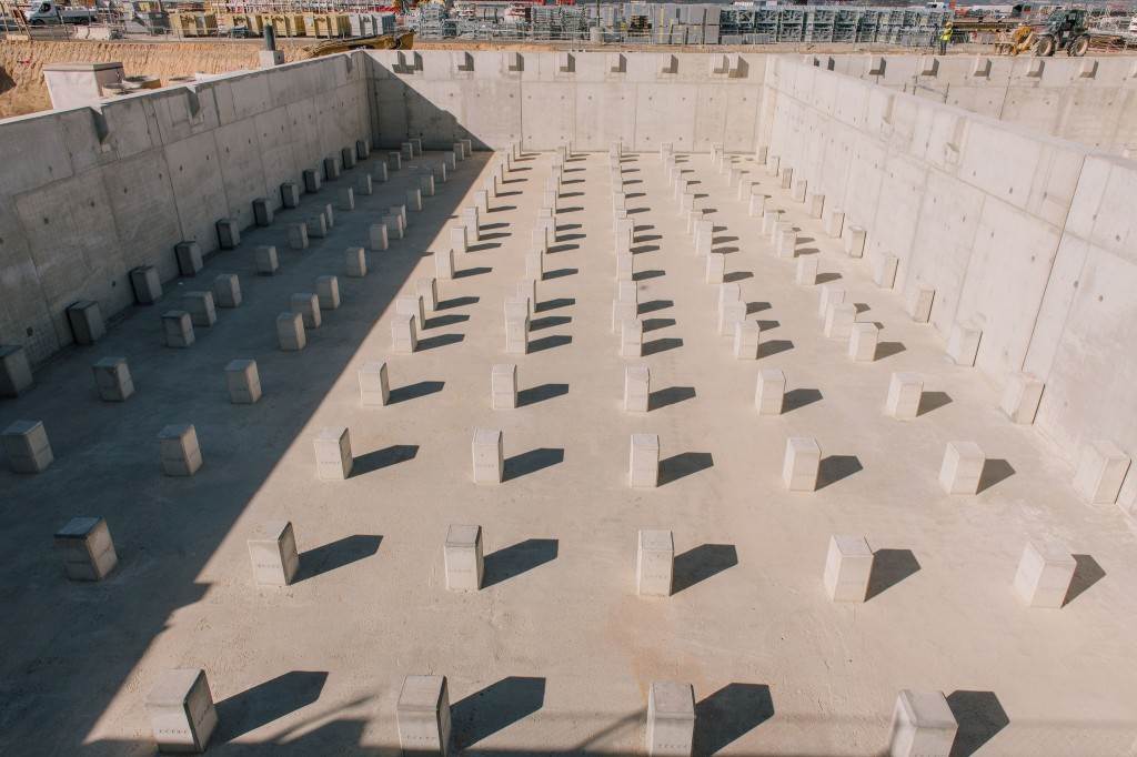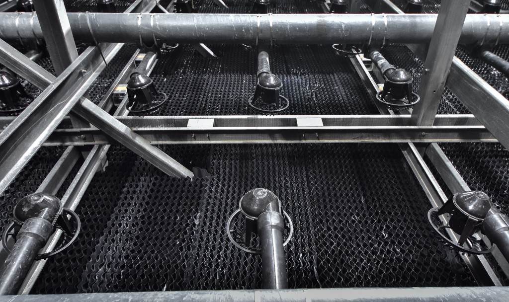 The ten cells of the cooling tower can be operated independently; ITER will start operation with just four. Each 16 x 16-metre cell is filled with hundreds of layers of corrugated plastic fill and equipped with a large fan that pulls air upward. As water falls through the fill, some of it evaporates due to the strong uptake of air, removing heat. The cooled water is collected in the cold basin located under the cells; from there, it is recirculated through the CCWS-1 and CCWS-2 heat exchangers. Control functions for the heat rejection system will be primarily managed from the ITER Control Building.