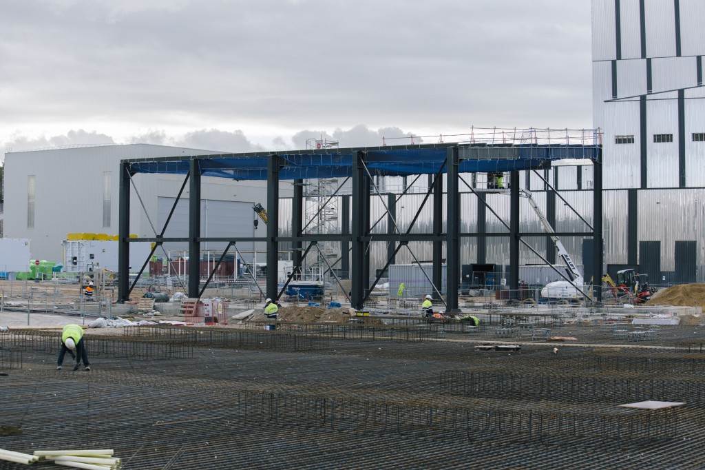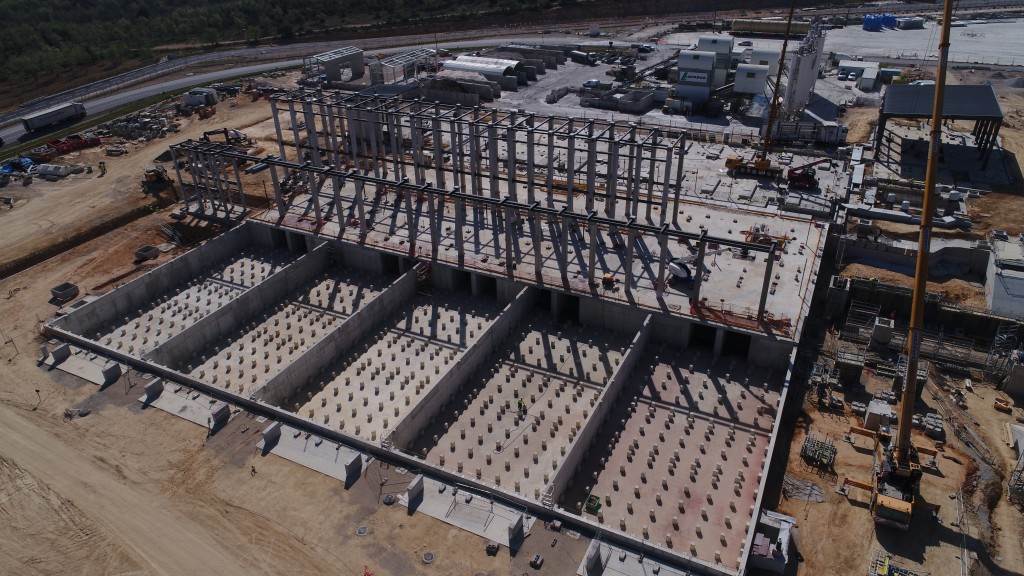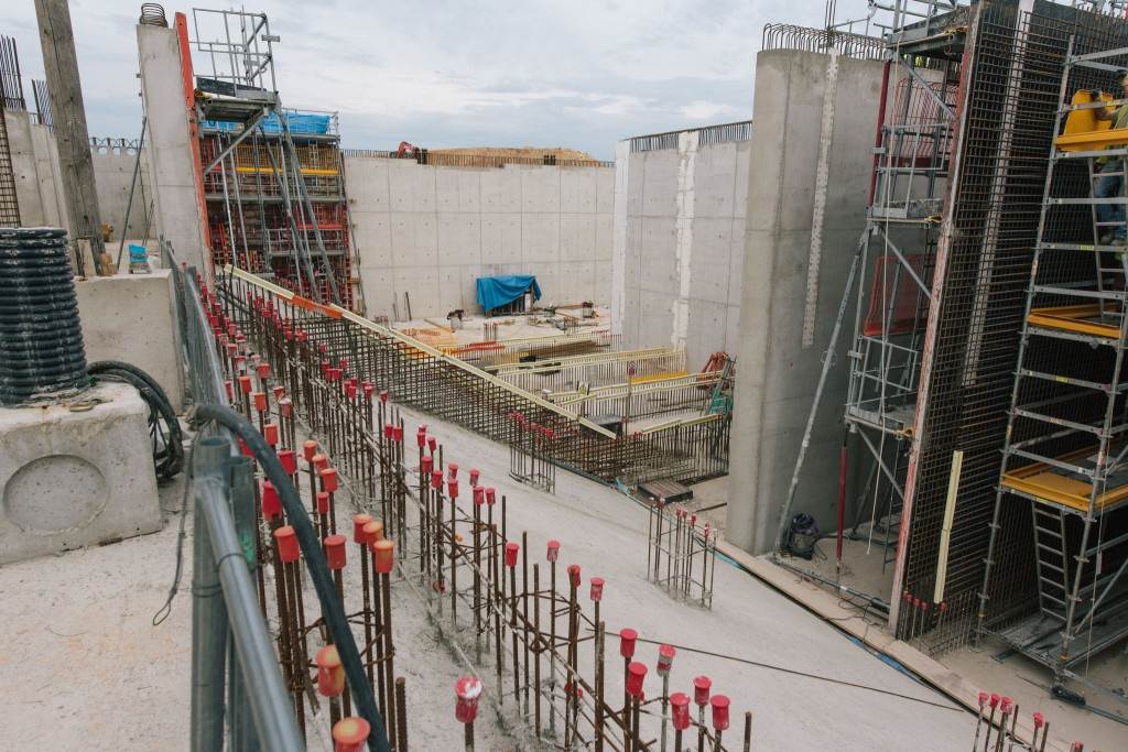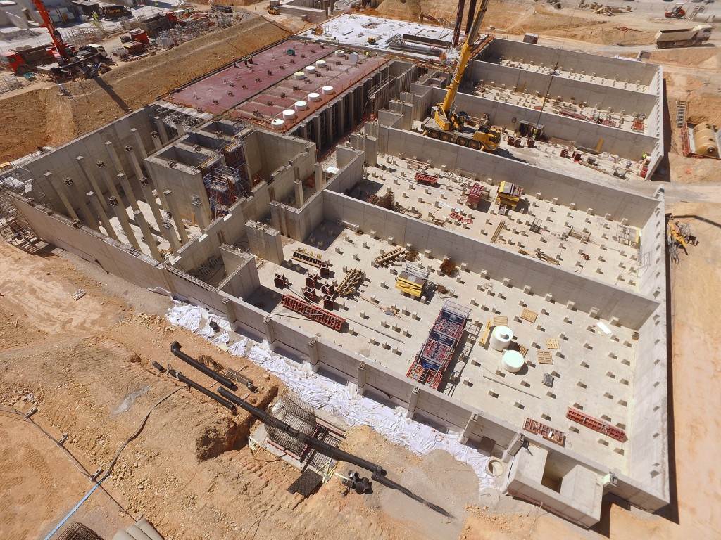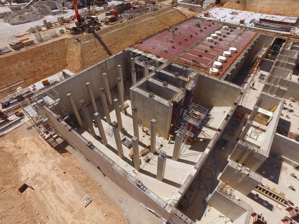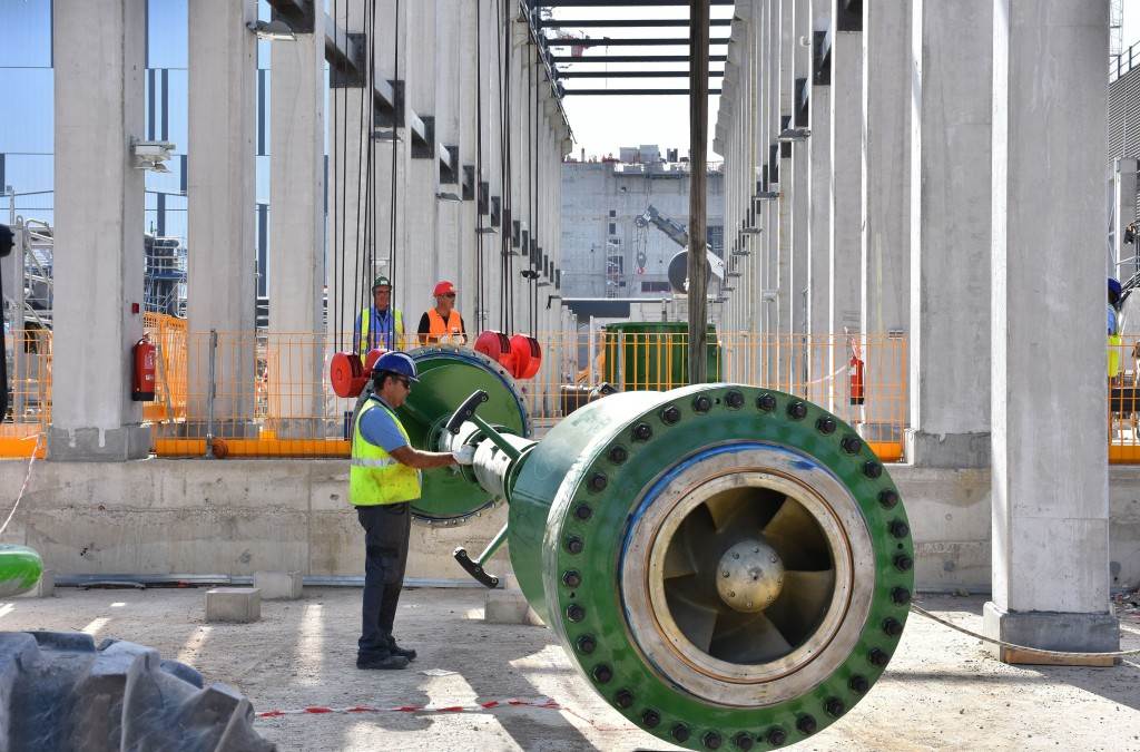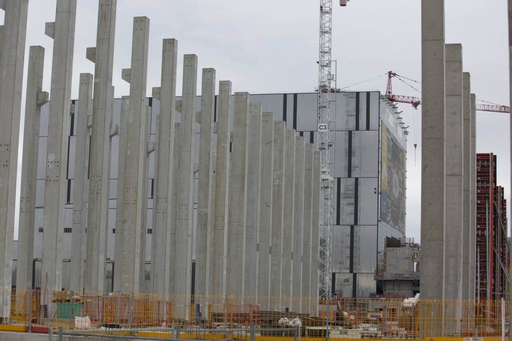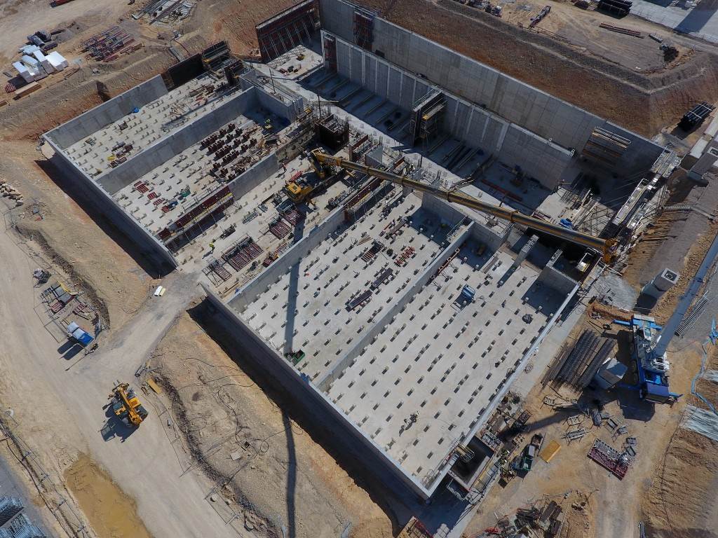 The heat rejection infrastructure is concentrated in a 6,000-square-metre area that comprises hot and cold cooling water basins, powerful pumps, heat exchangers, and an induced-draft cooling tower with ten individual cells.