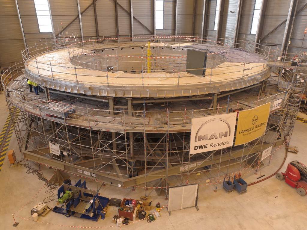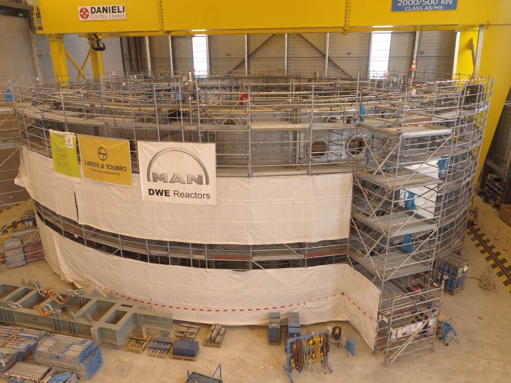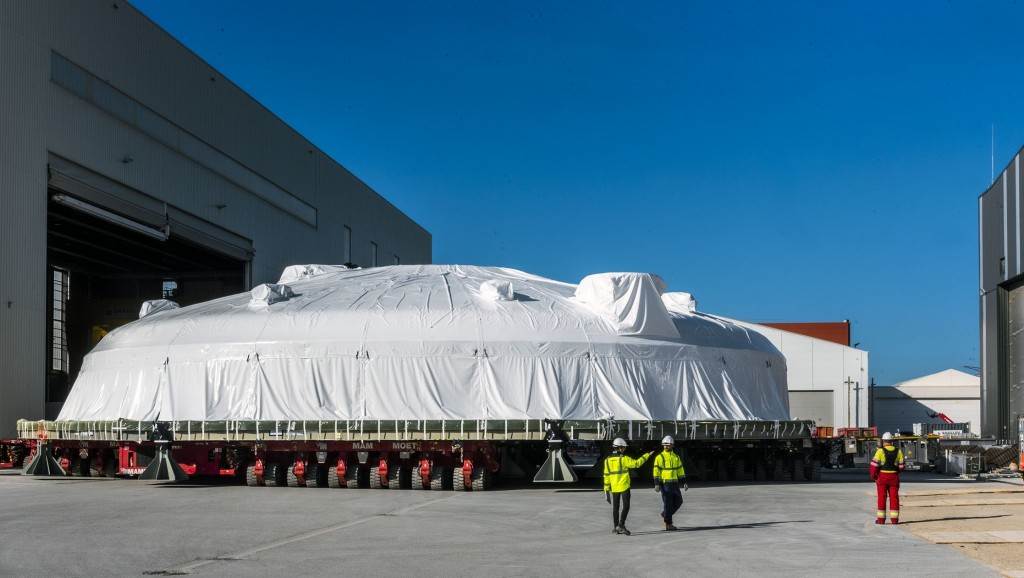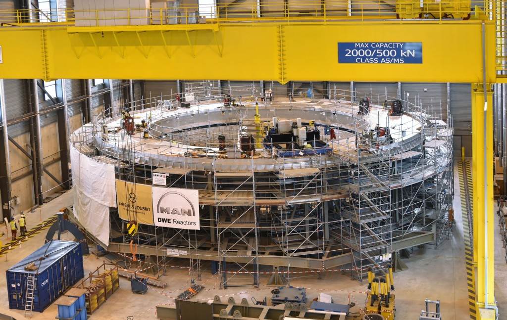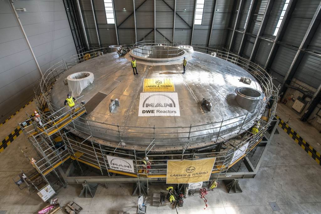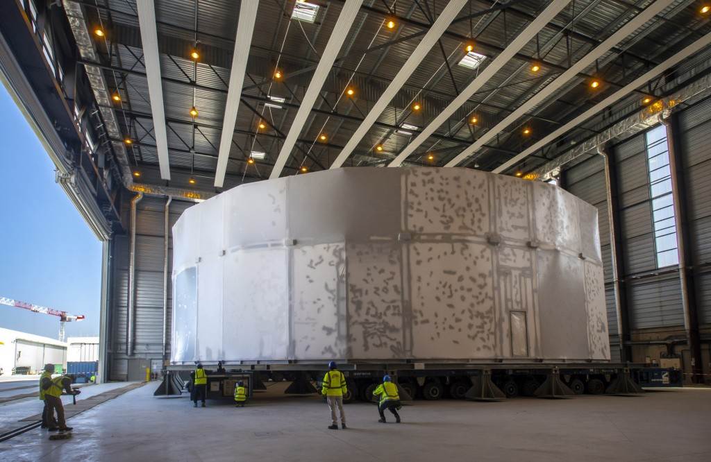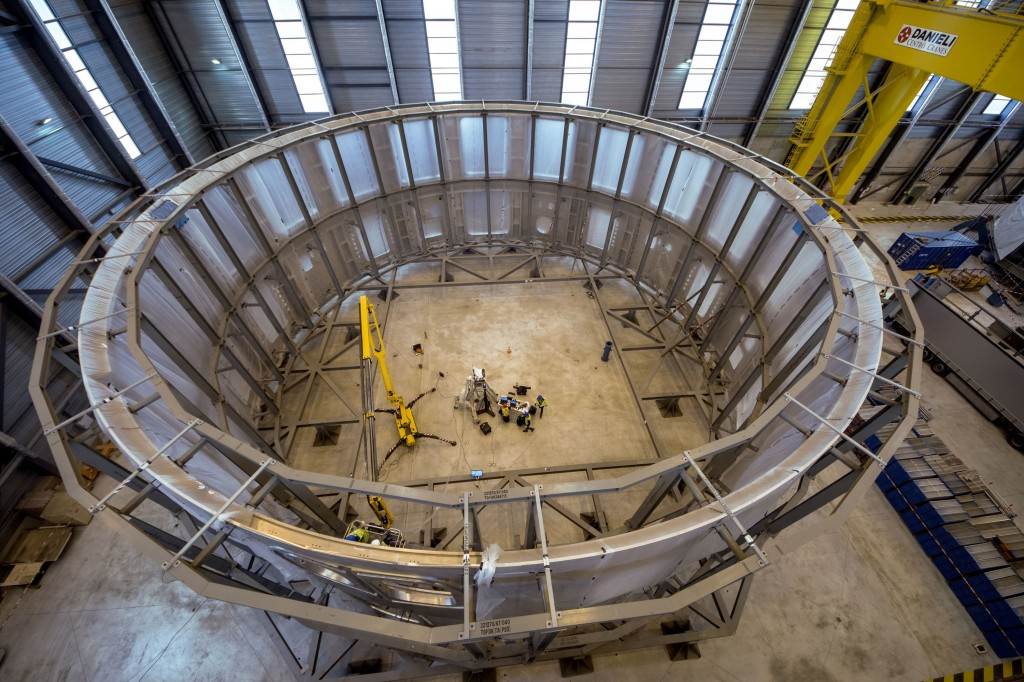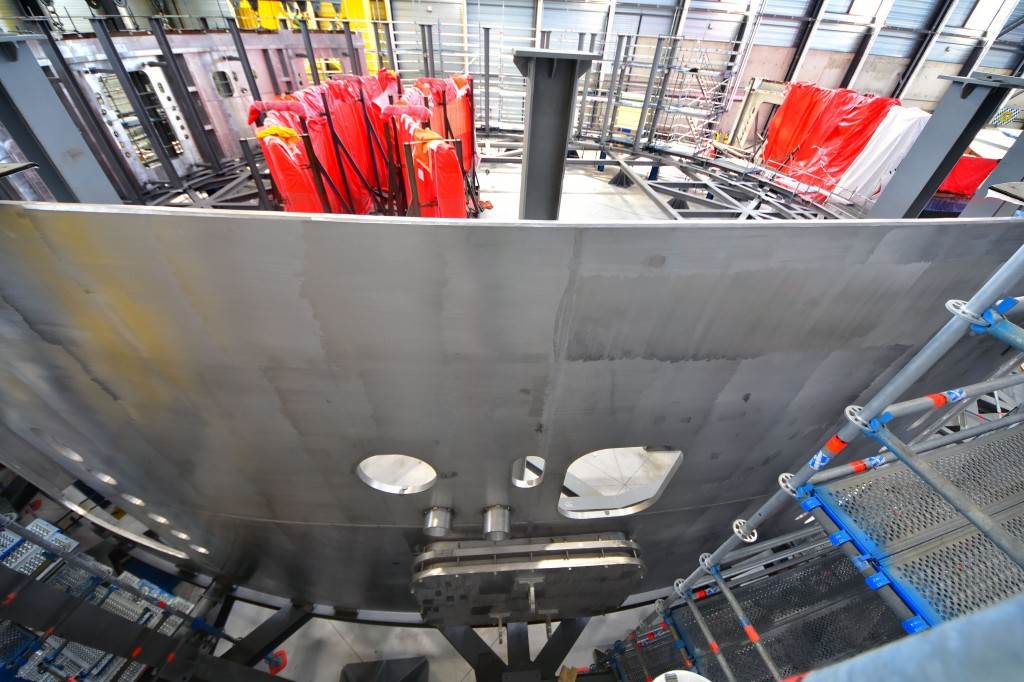The less-complex lower cylinder (375 tonnes) was assembled in two years, and completed in 2019, while the upper cylinder and top lid were completed in 2020 and 2022 respectively. The top lid is considered the most complex of the sections because of its 3D profile.