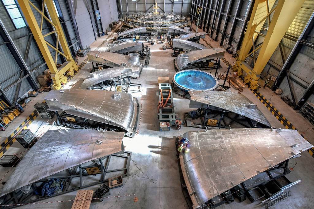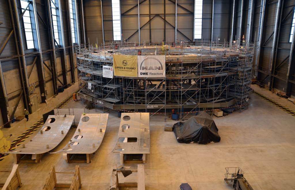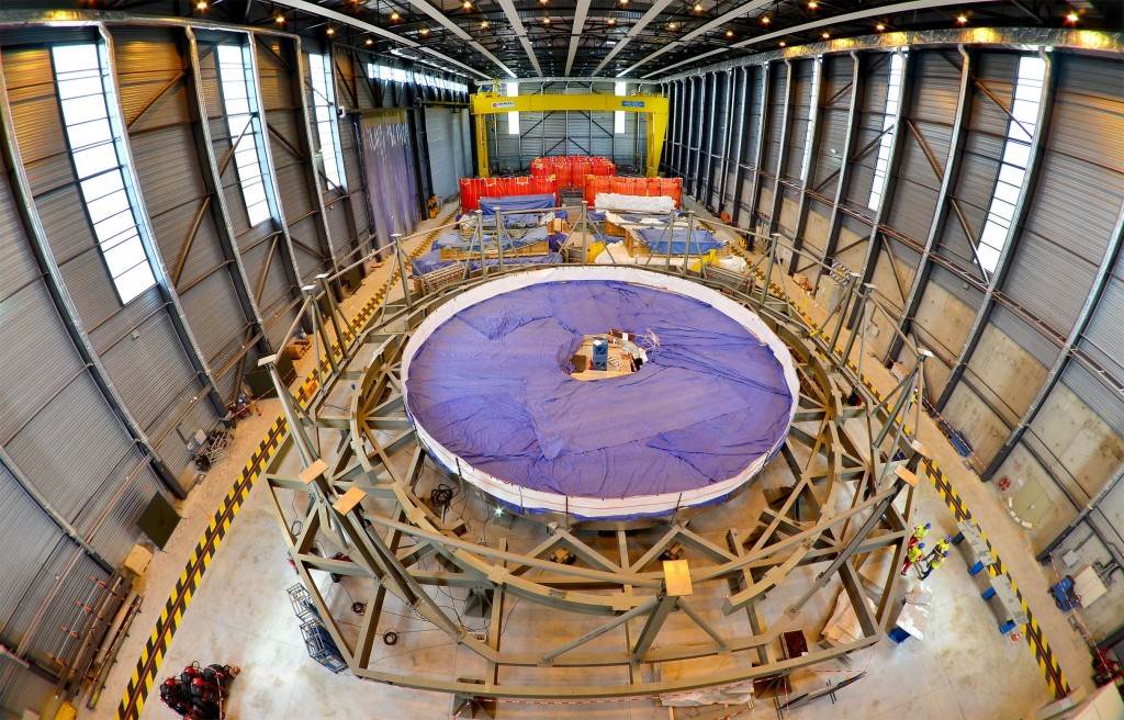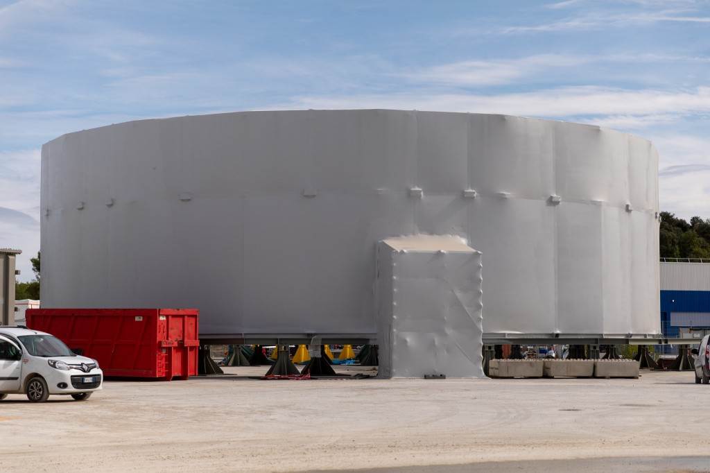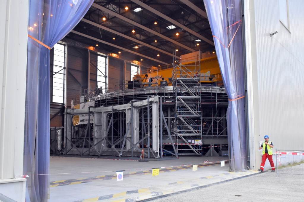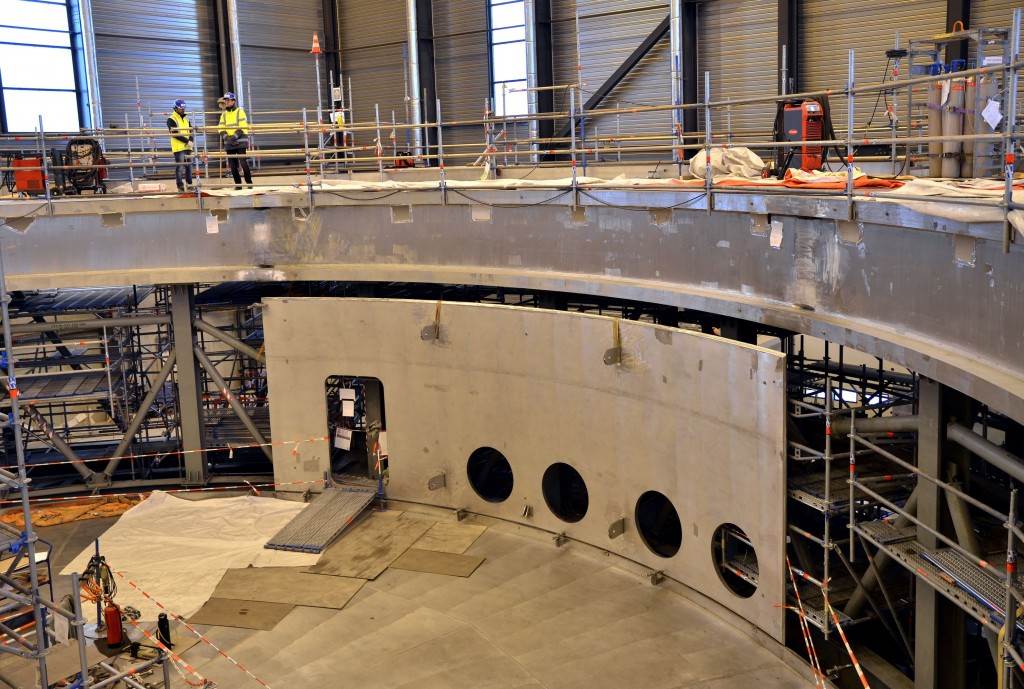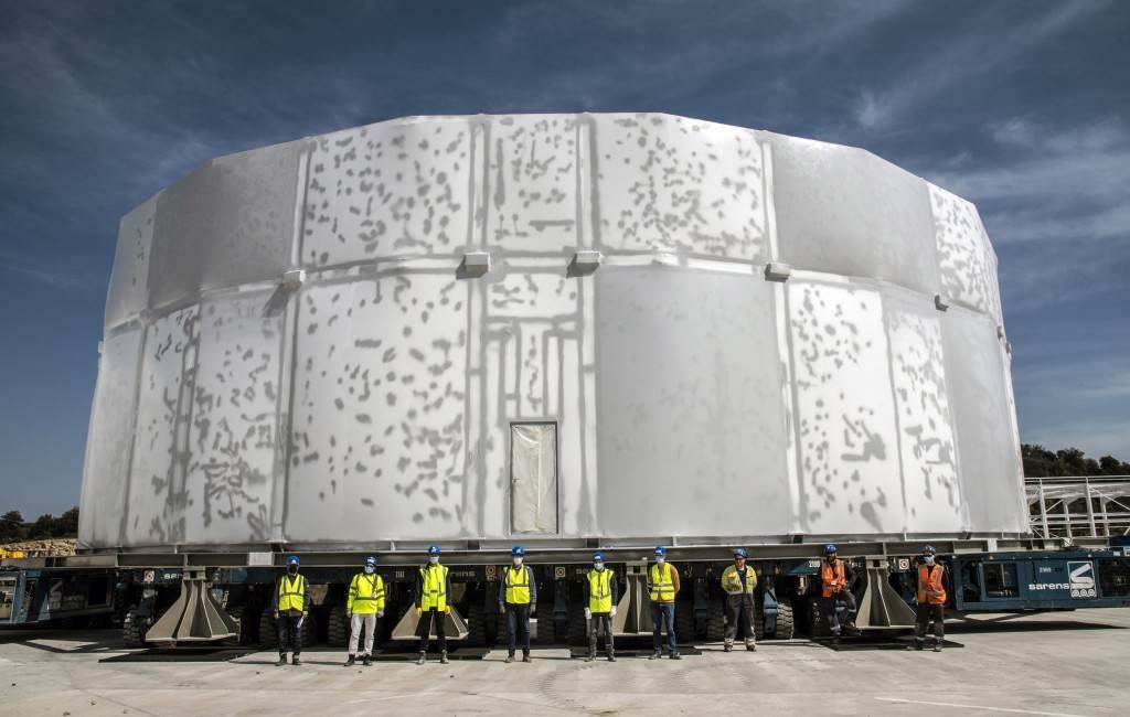 The less-complex lower cylinder (375 tonnes) was assembled in two years, and completed in 2019, while the upper cylinder and top lid were completed in 2020 and 2022 respectively. The top lid is considered the most complex of the sections because of its 3D profile.