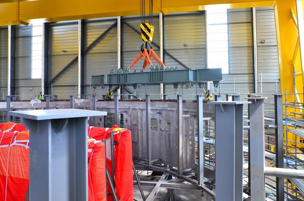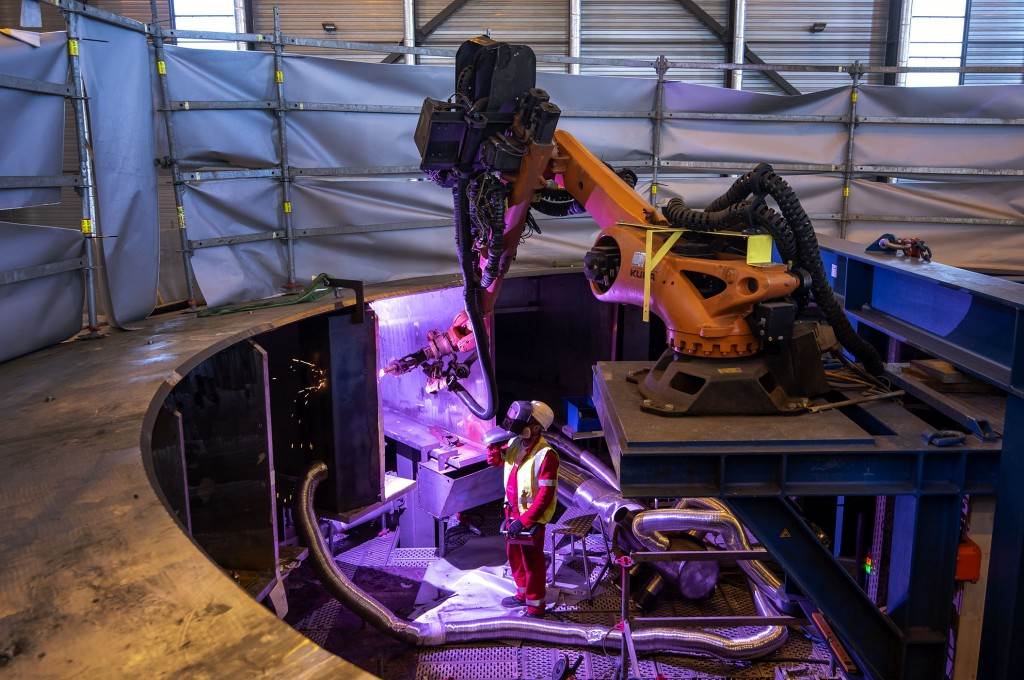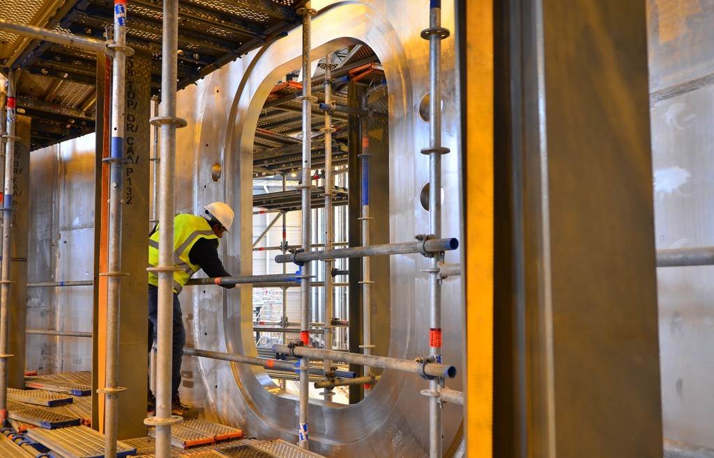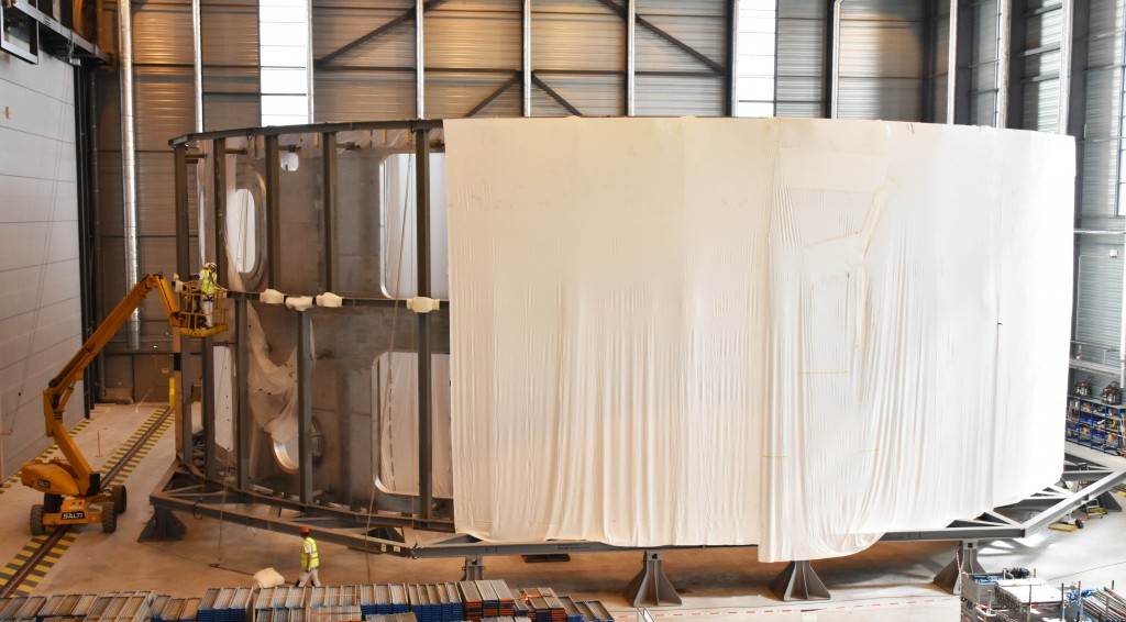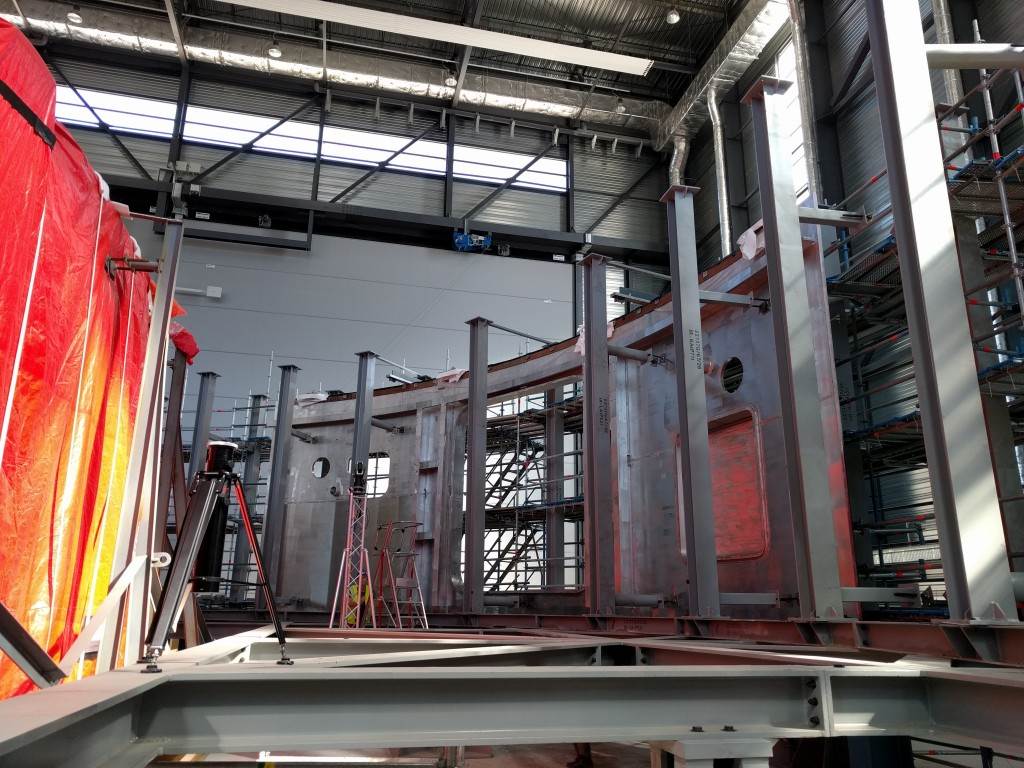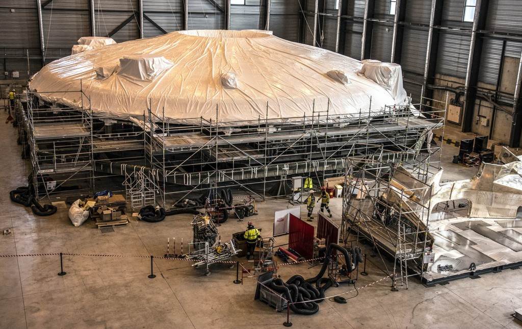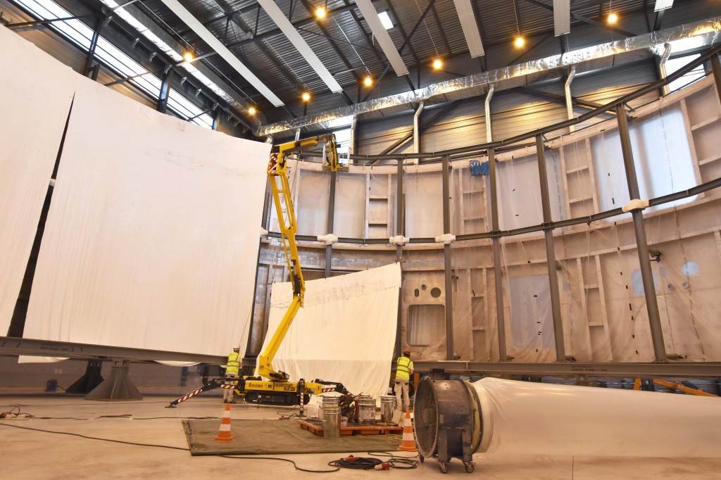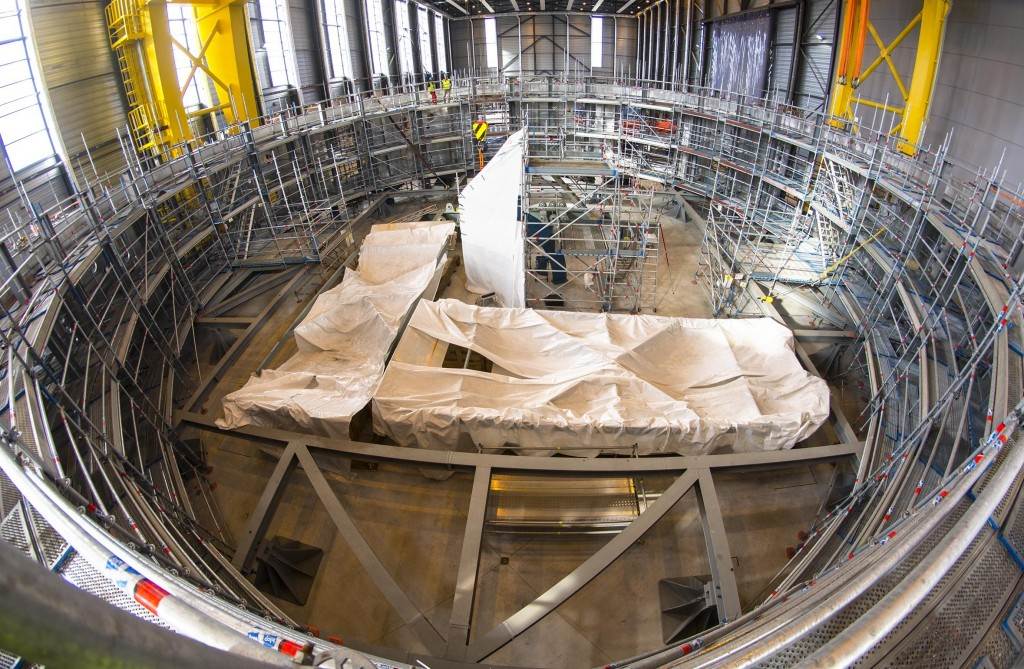 The less-complex lower cylinder (375 tonnes) was assembled in two years, and completed in 2019, while the upper cylinder and top lid were completed in 2020 and 2022 respectively. The top lid is considered the most complex of the sections because of its 3D profile.