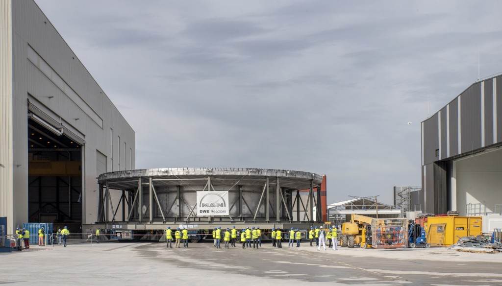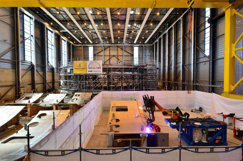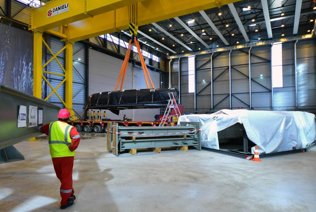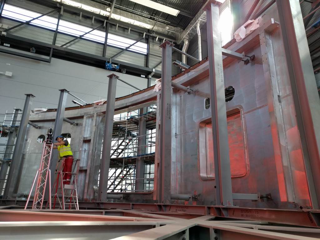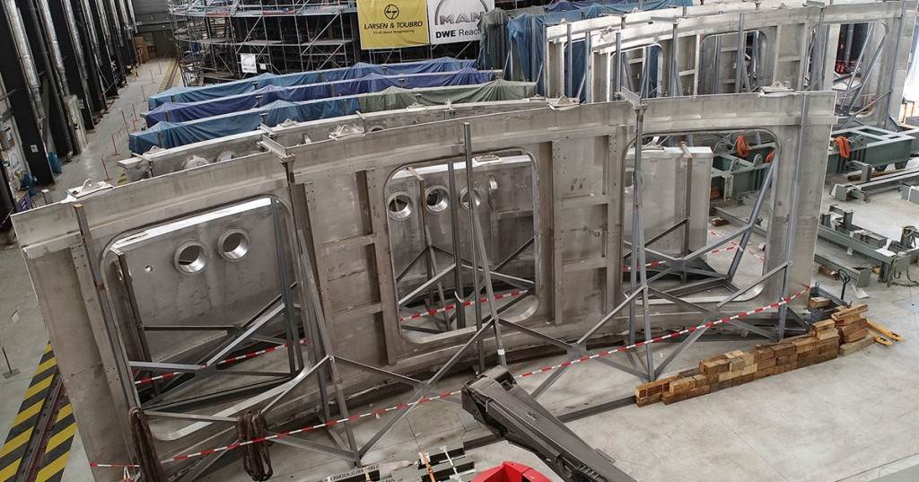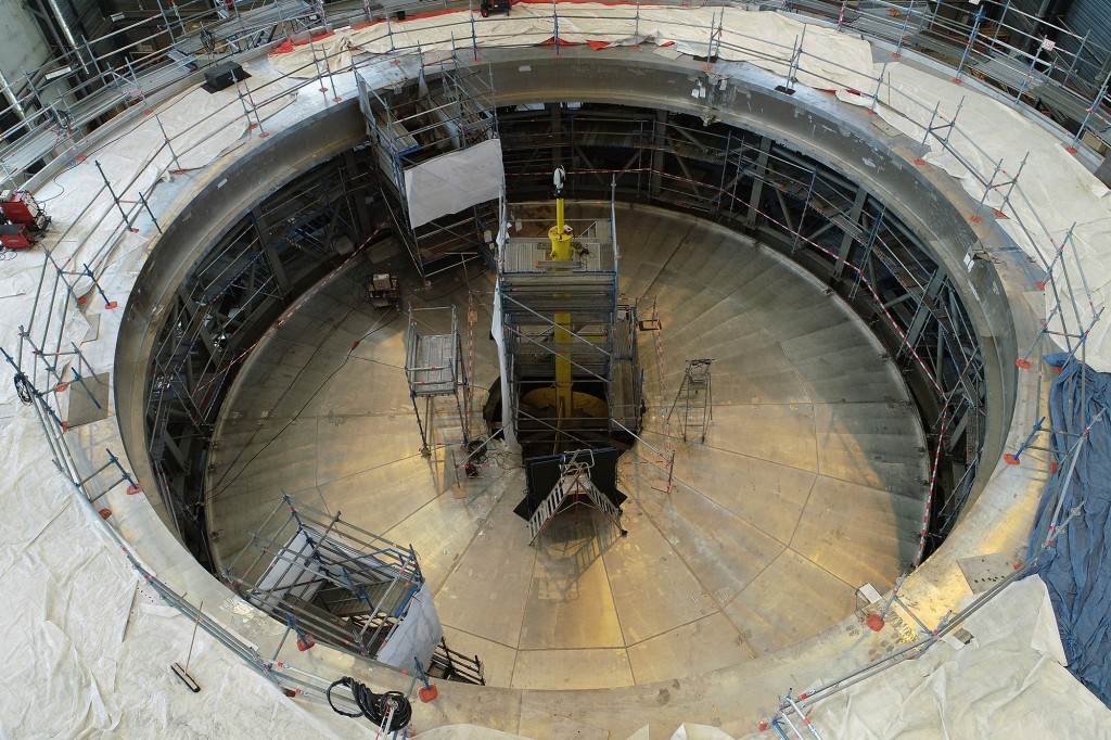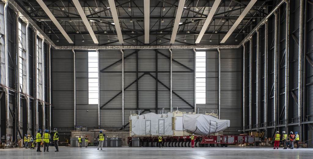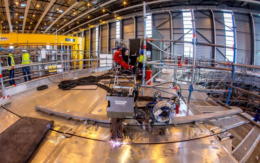 The less-complex lower cylinder (375 tonnes) was assembled in two years, and completed in 2019, while the upper cylinder and top lid were completed in 2020 and 2022 respectively. The top lid is considered the most complex of the sections because of its 3D profile.
