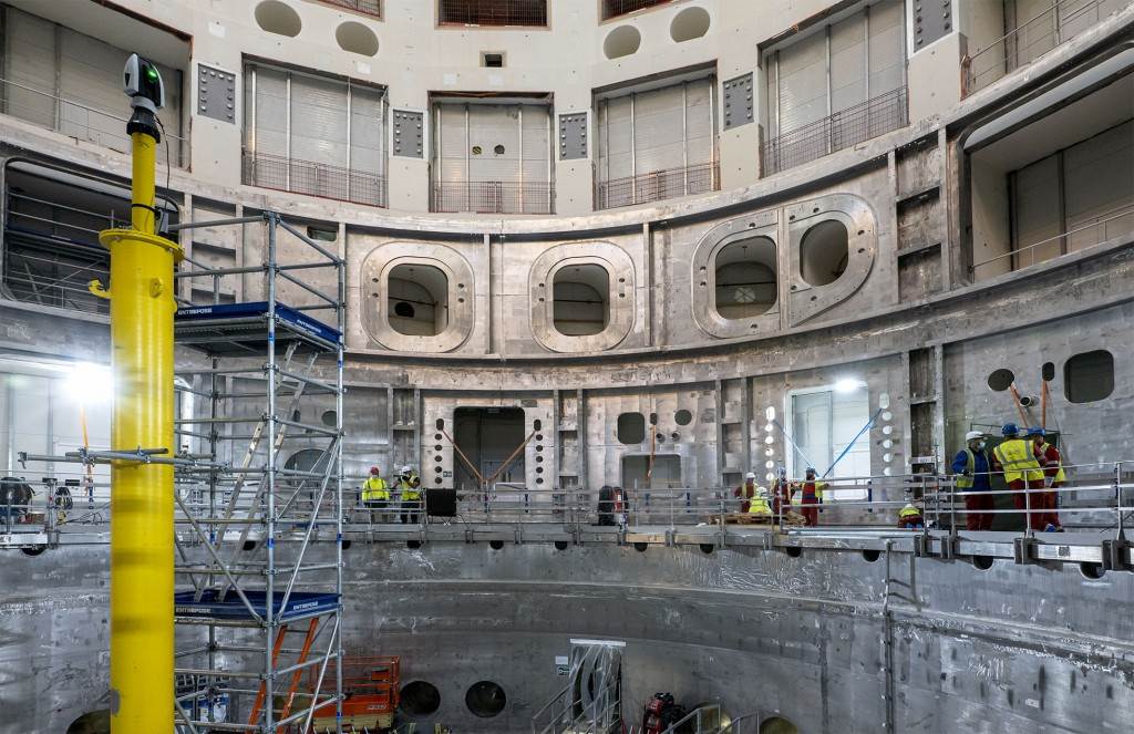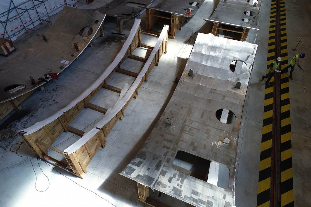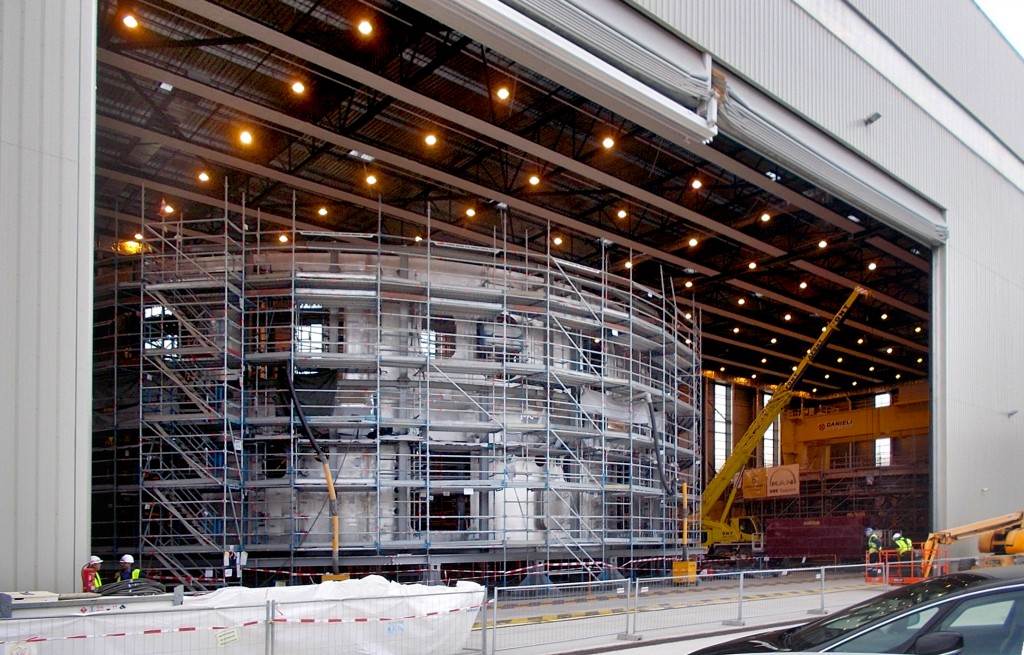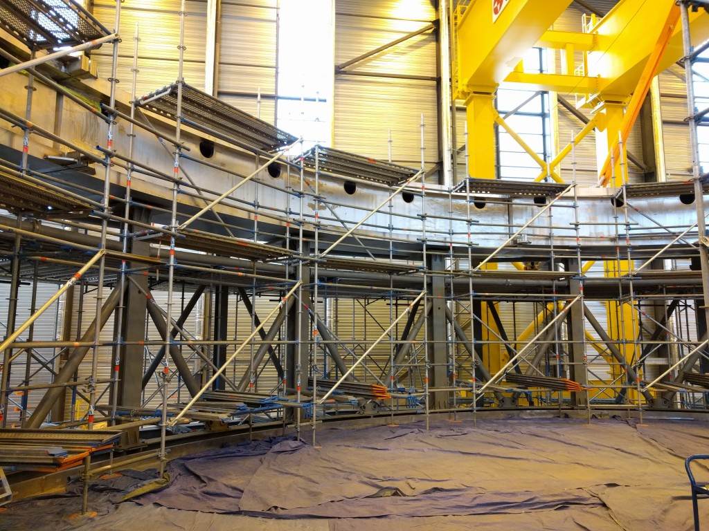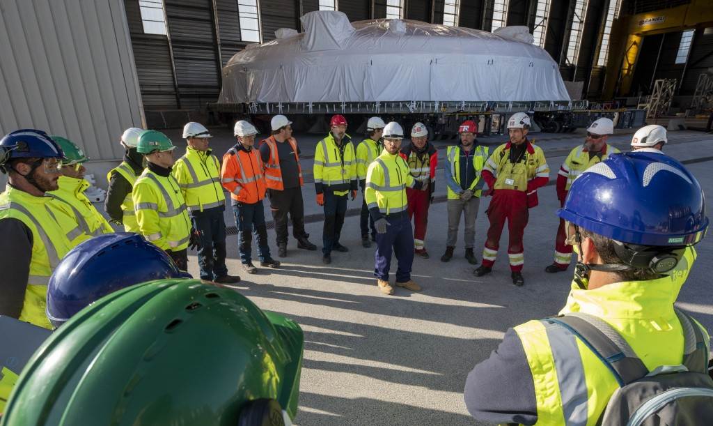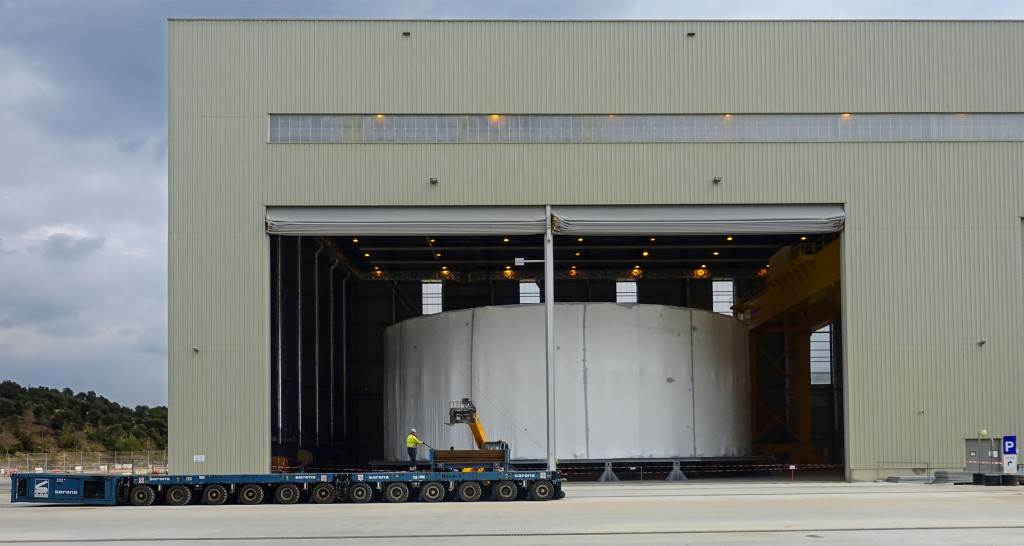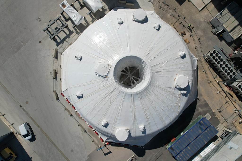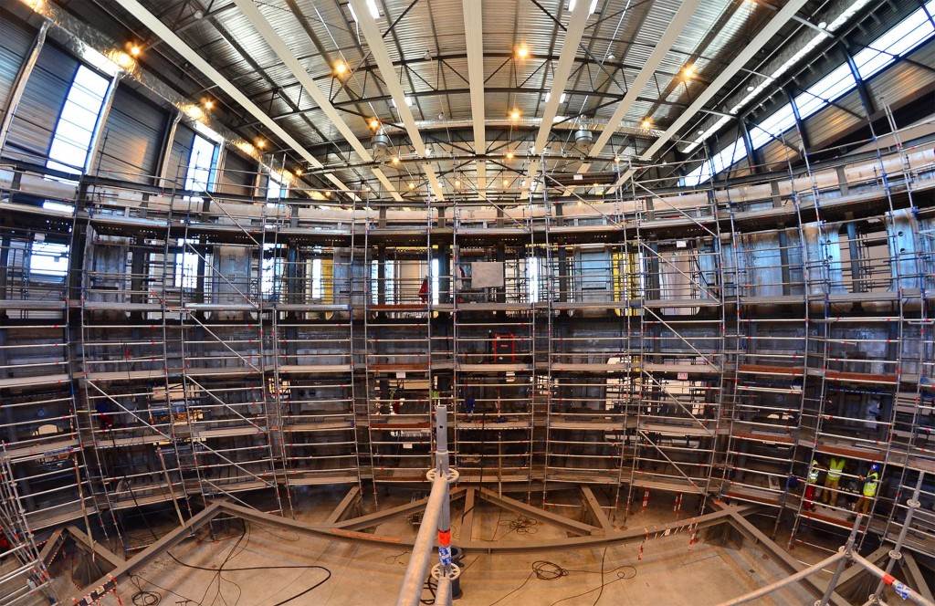 The less-complex lower cylinder (375 tonnes) was assembled in two years, and completed in 2019, while the upper cylinder and top lid were completed in 2020 and 2022 respectively. The top lid is considered the most complex of the sections because of its 3D profile.