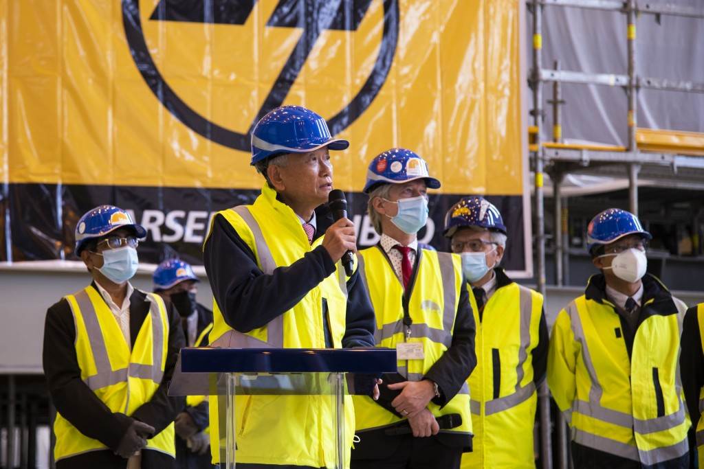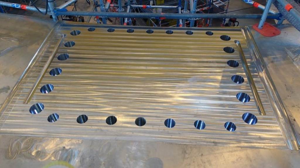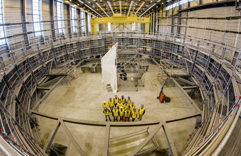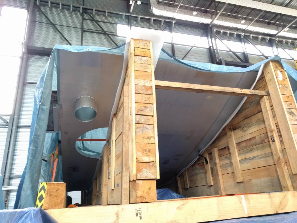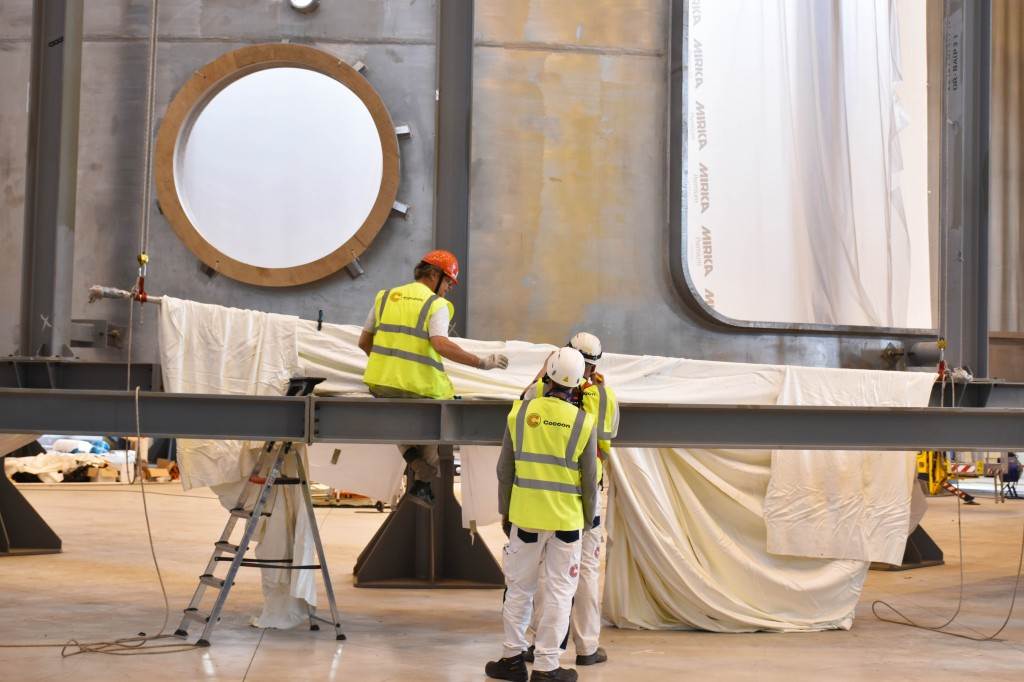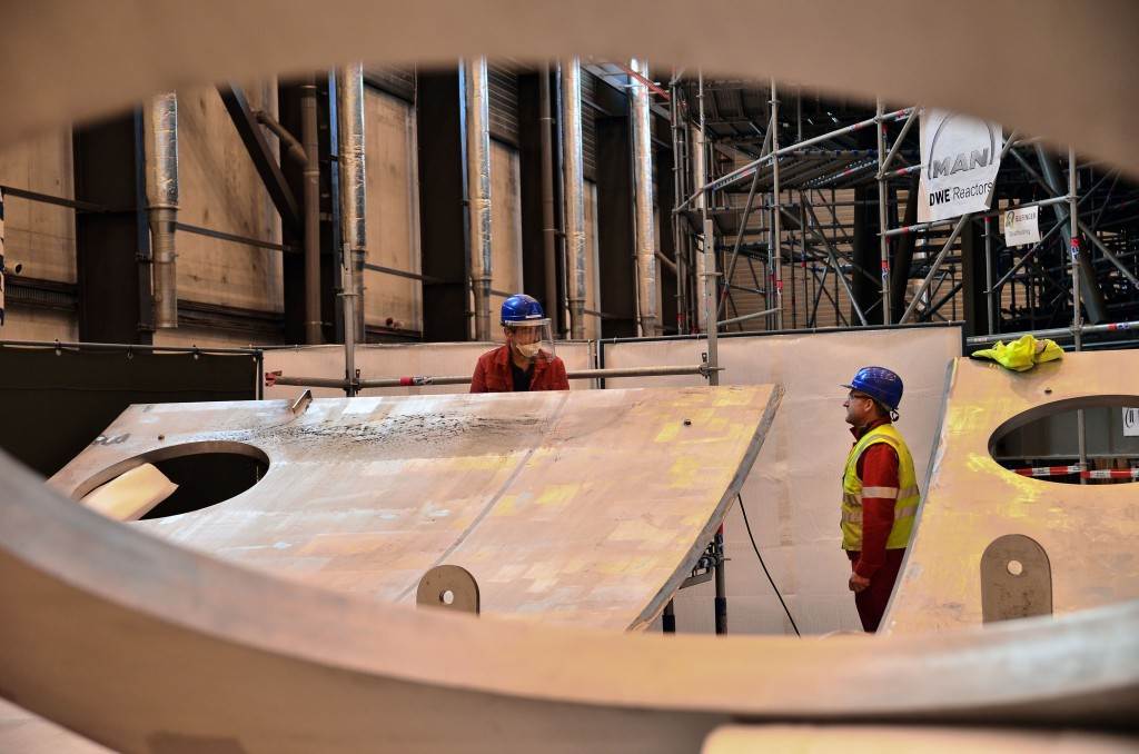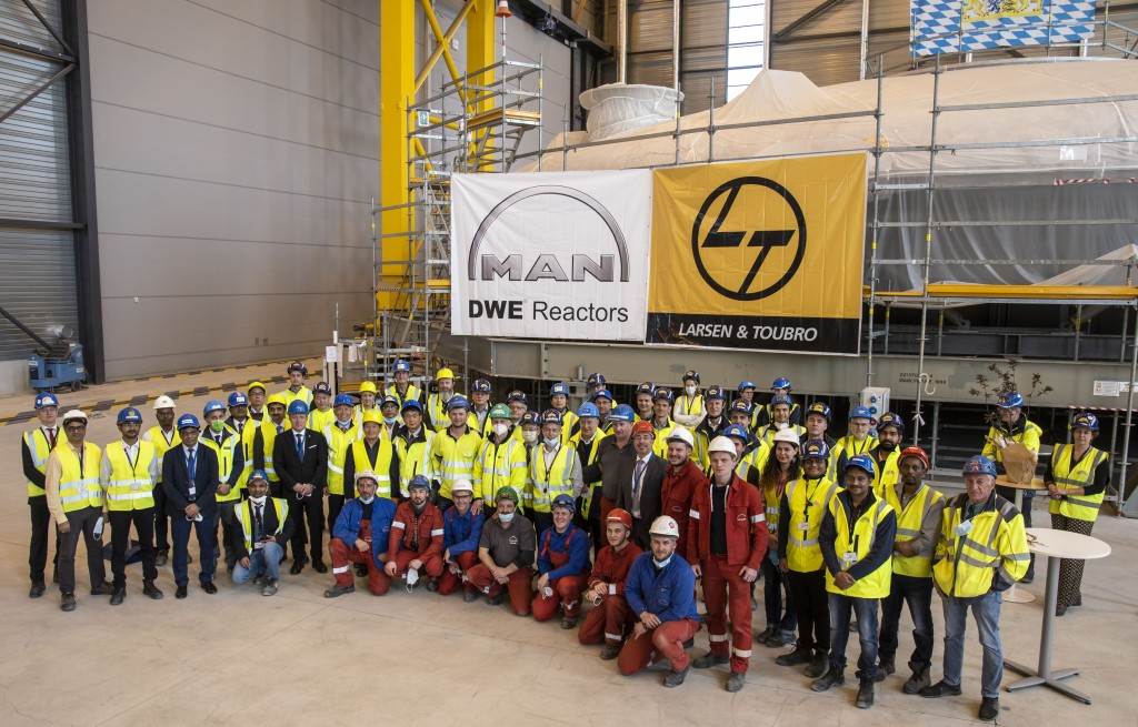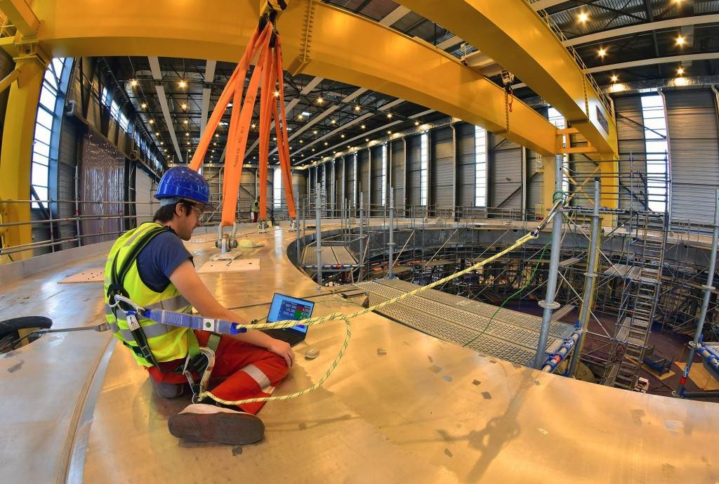 The less-complex lower cylinder (375 tonnes) was assembled in two years, and completed in 2019, while the upper cylinder and top lid were completed in 2020 and 2022 respectively. The top lid is considered the most complex of the sections because of its 3D profile.