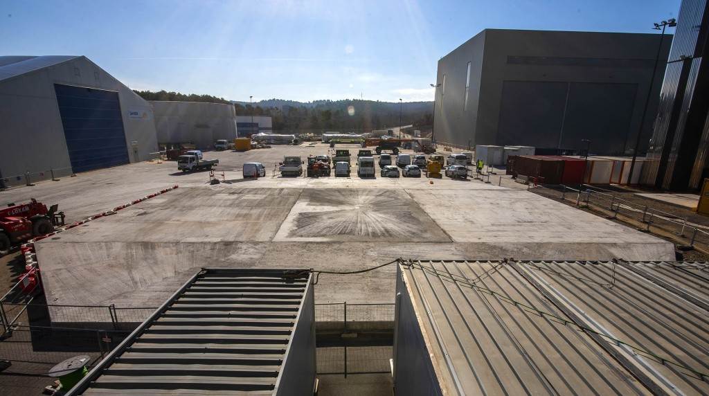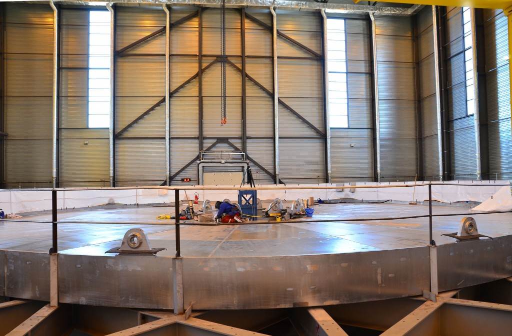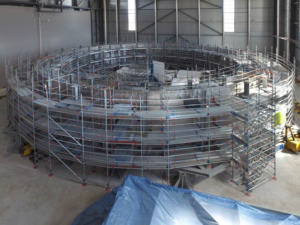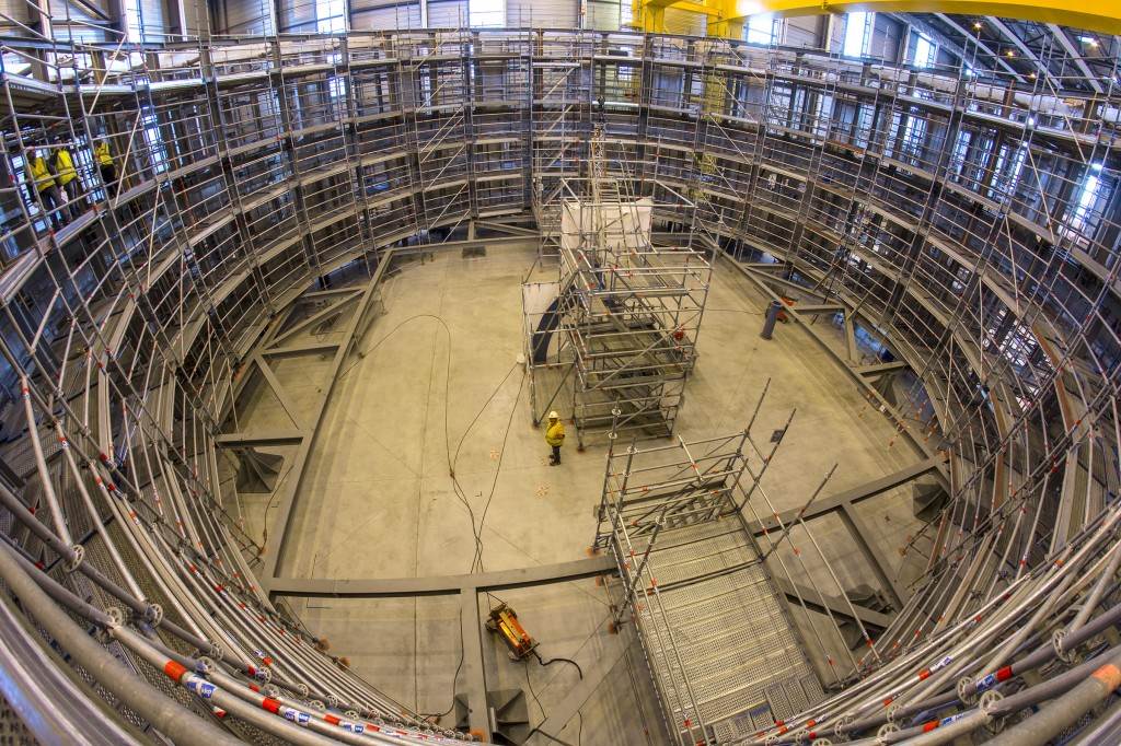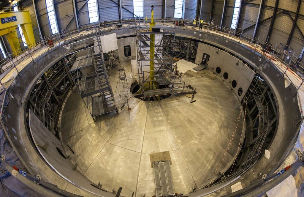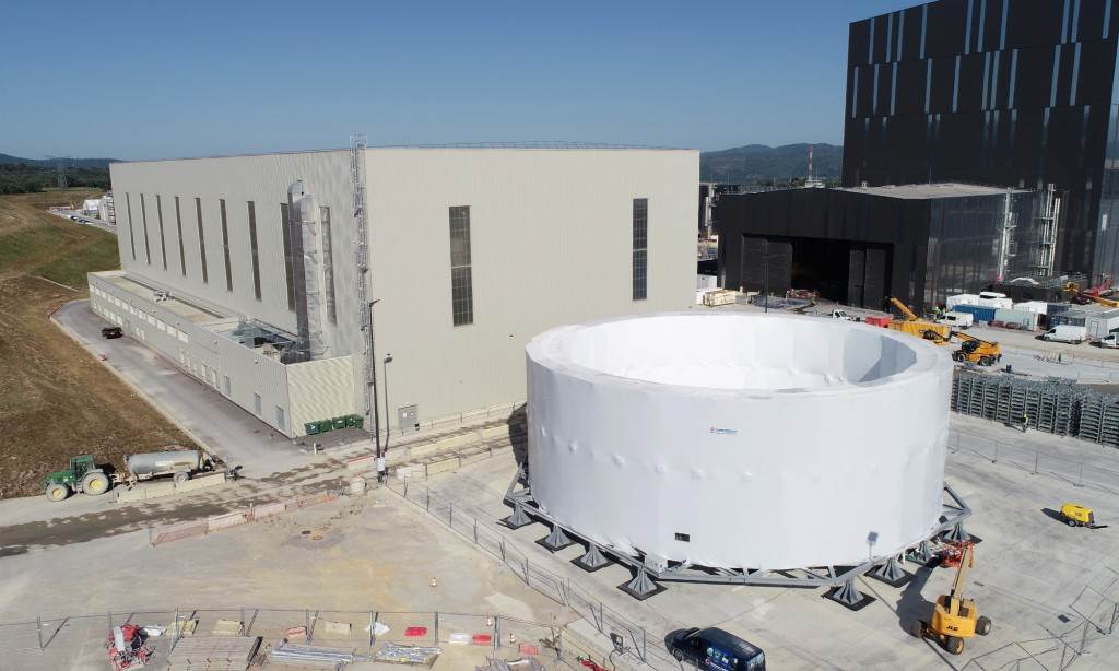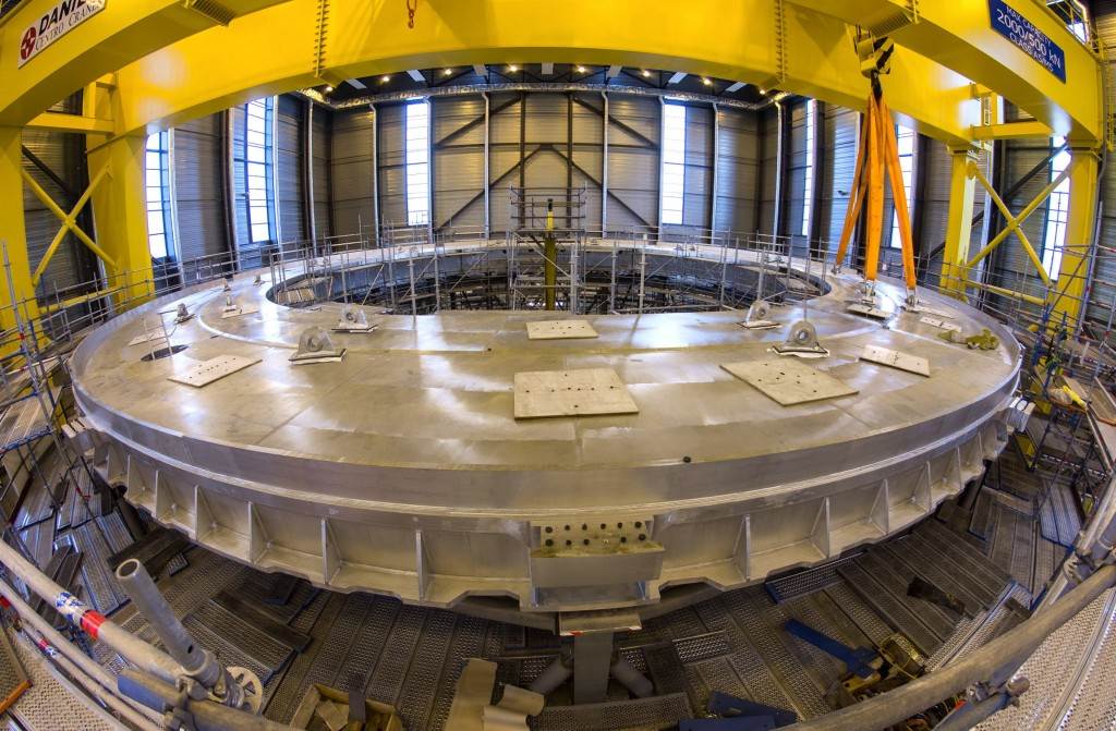It took approximately three years (2016 to 2019) to finalize the on-site assembly and welding operations for the cryostat base—a 1,250-tonne component formed from a tier 1 "disk" and a tier 2 vertical ring and pedestal.
