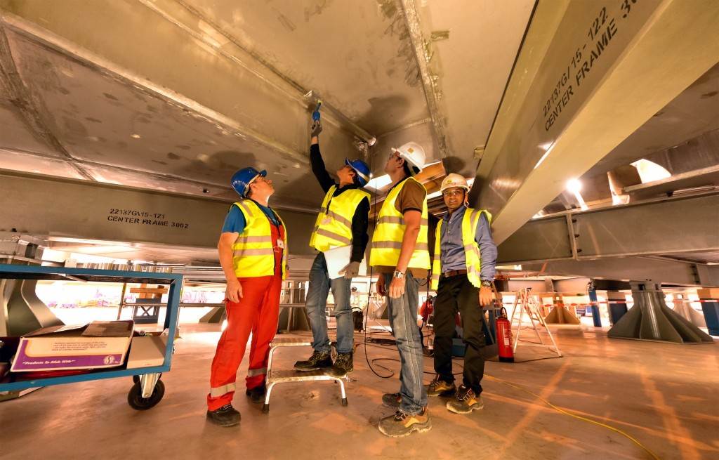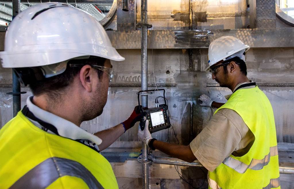 Three other quality assurance techniques were used: radiographic and ultrasonic testing to detect the presence of flaws that could challenge the structural integrity of the welds, and liquid penetrant testing (LPT) for surface checks.