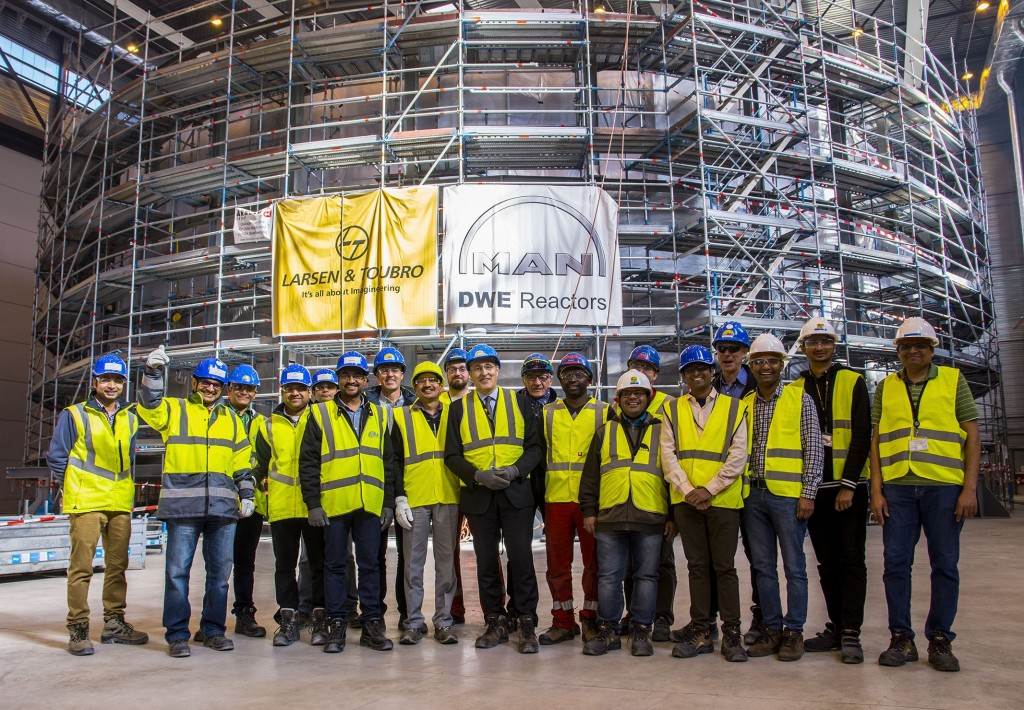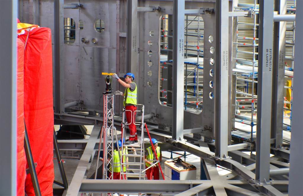In total, the Indian Domestic Agency estimates that one kilometre of full penetration weld joints were carried out to exacting standards for the sub-assemblies in the site workshop, to be followed by several hundred metres of weld joints to assemble the cryostat sections in the Tokamak pit.