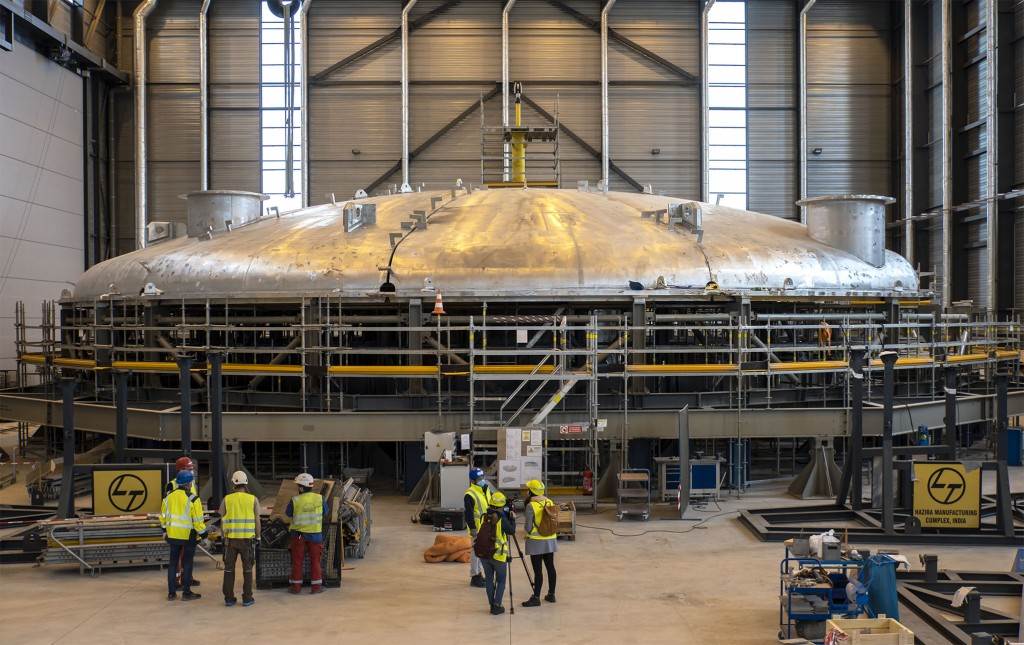 In a 5,000-square-metre workshop on site, the Indian Domestic Agency oversaw the assembly of the sections of the cryostat—a huge vacuum containment vessel that is also the single largest component of the ITER machine.