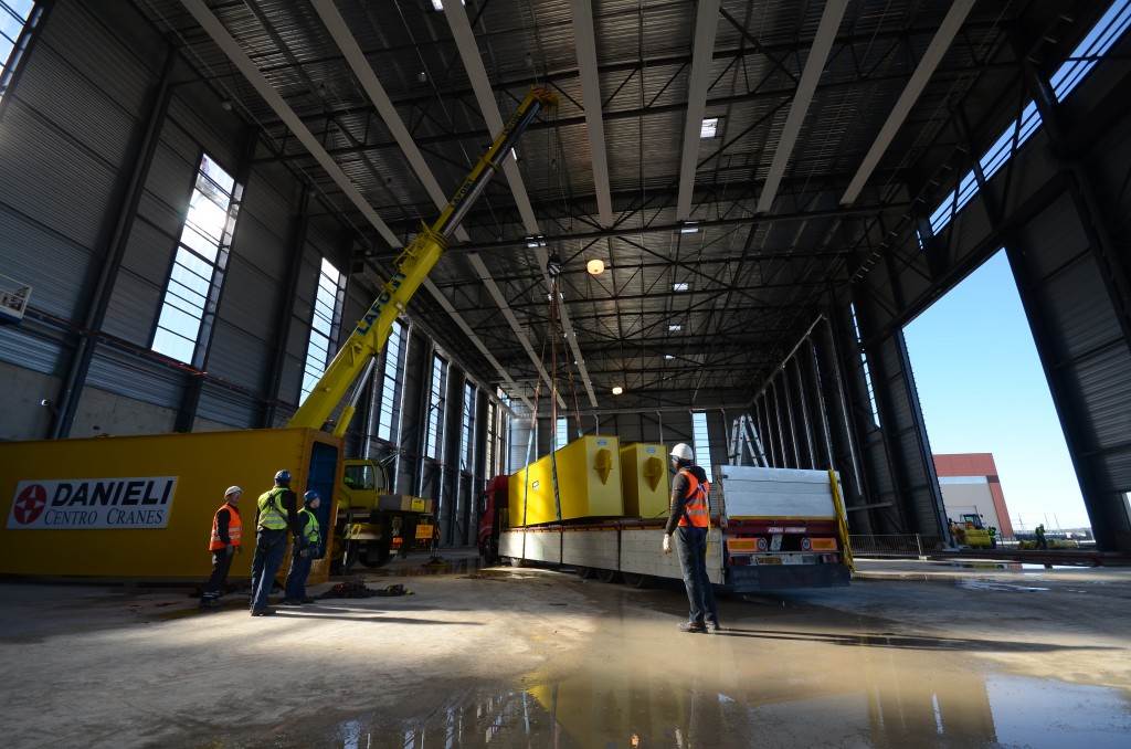 Assembly operations in the Cryostat Workshop took place on two 30 x 30 metre platforms that also acted as transport platforms as the sections left the building powered by self-propelled modular transporters.