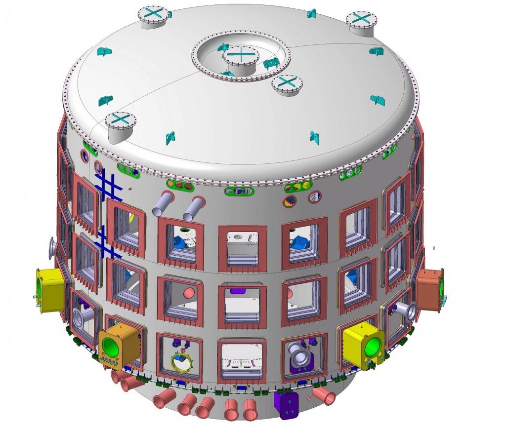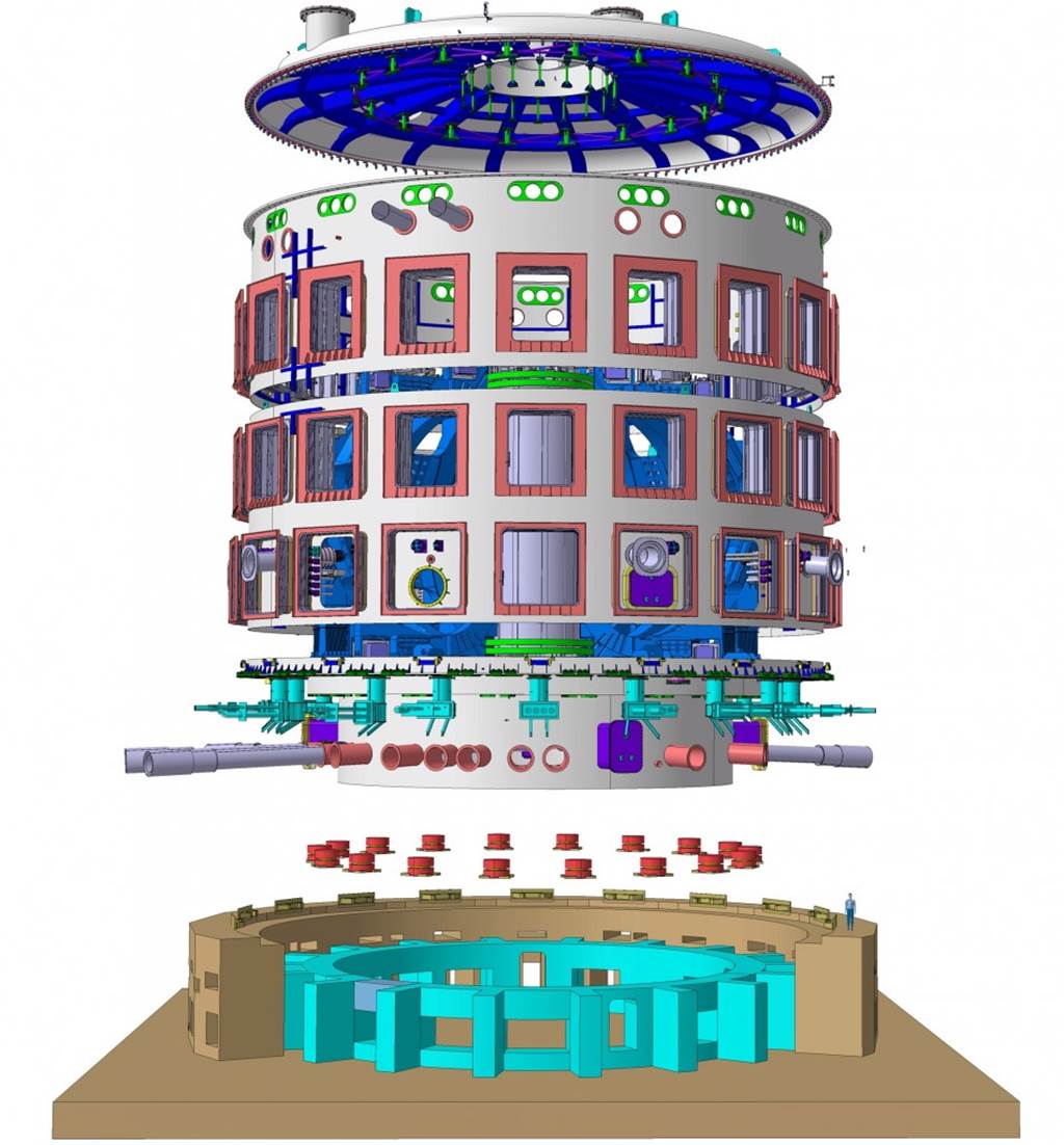 The cryostat is the vacuum-tight container that will surround the ITER vacuum vessel and superconducting magnets. The base section of the cryostat was the first large component installed in the Tokamak Pit; the top lid of the cryostat will be the last, set into place after the installation of the vacuum vessel and magnets.