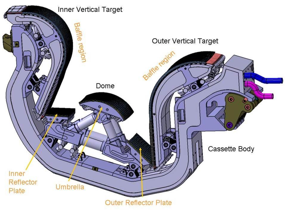 With essentially the same purpose in the divertor, the plasma-facing components—the inner vertical target, the outer vertical target, and the dome—differ most in shape and location on the cassette assemblies.