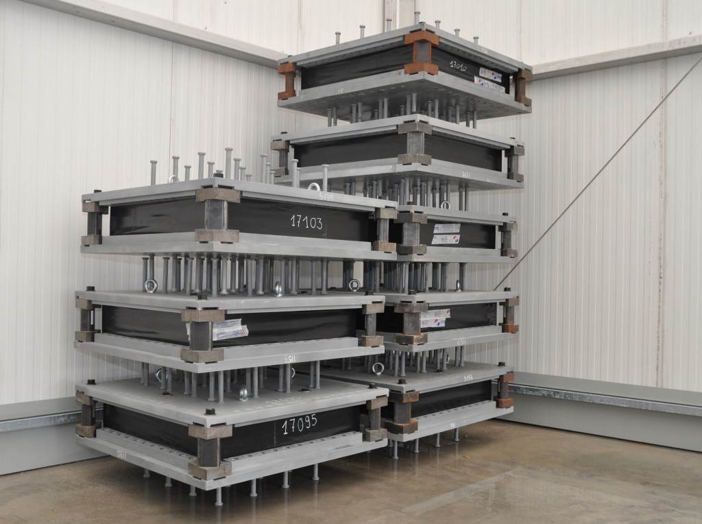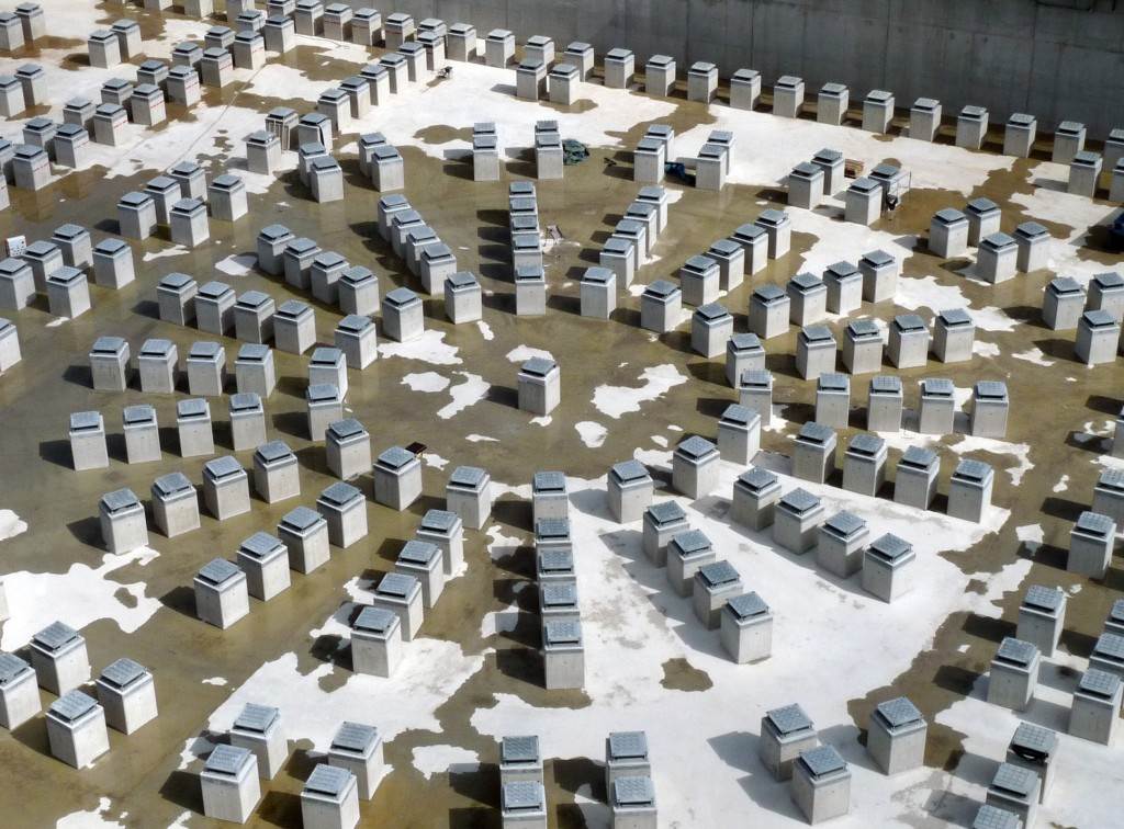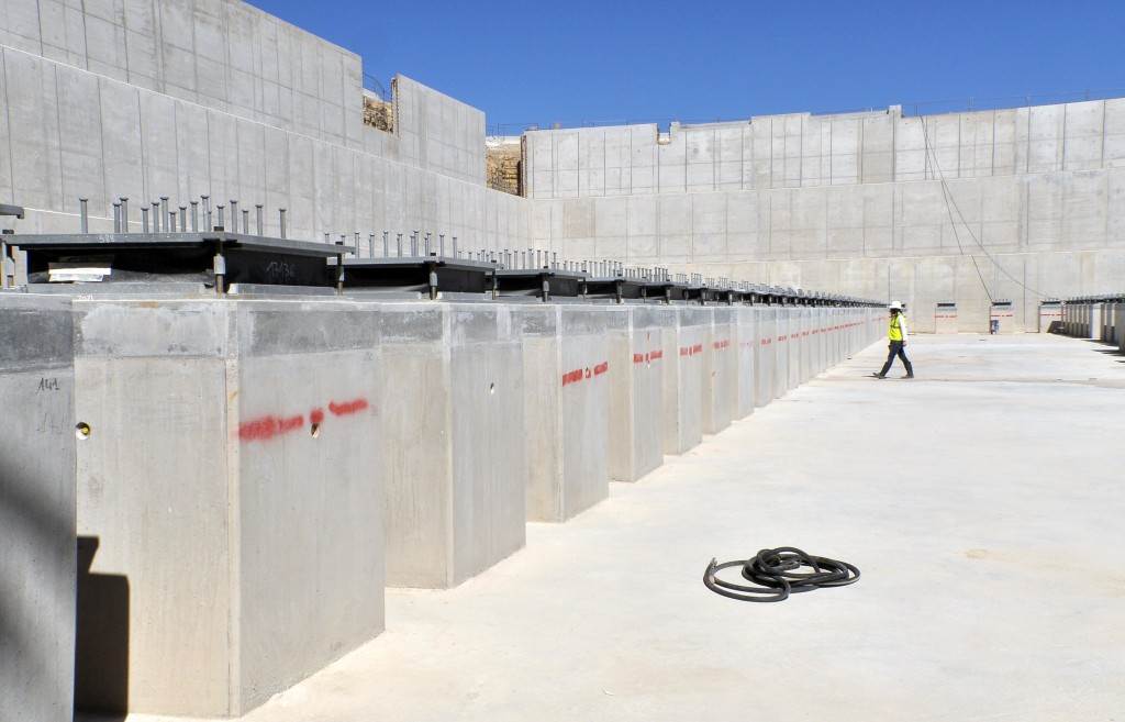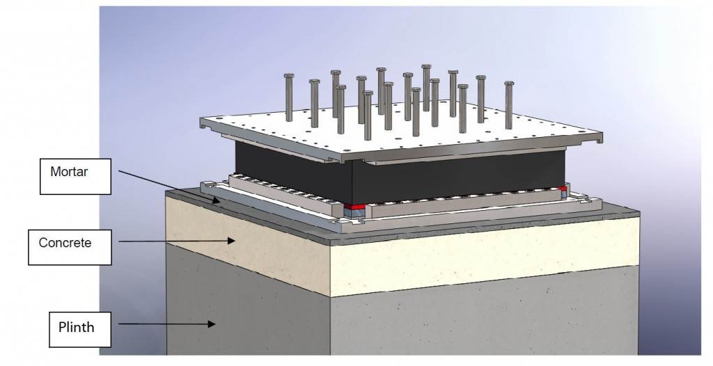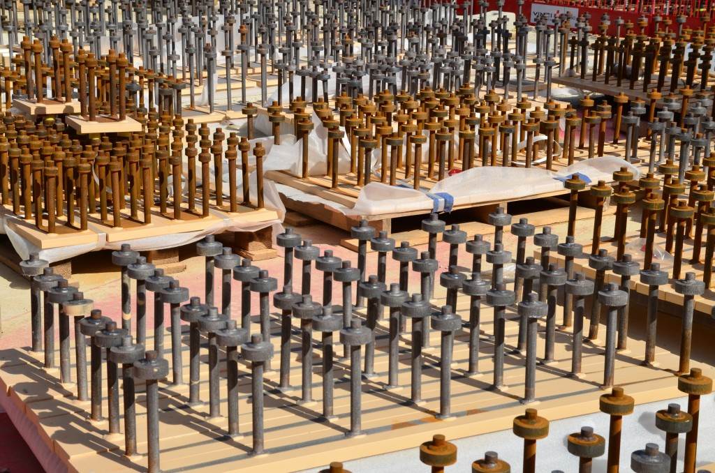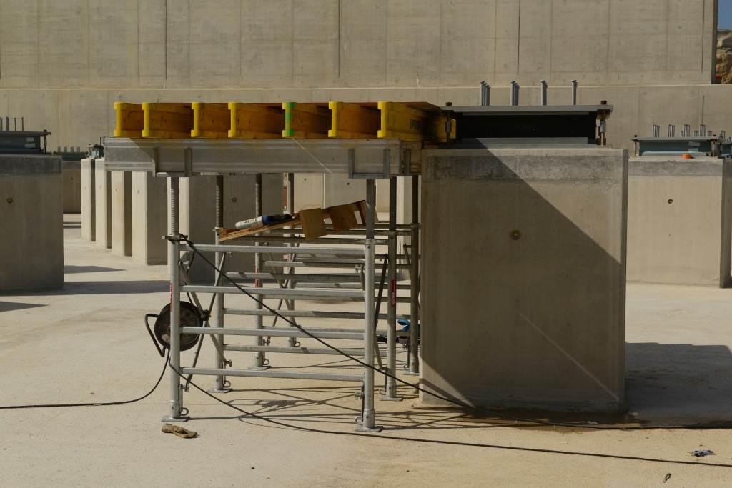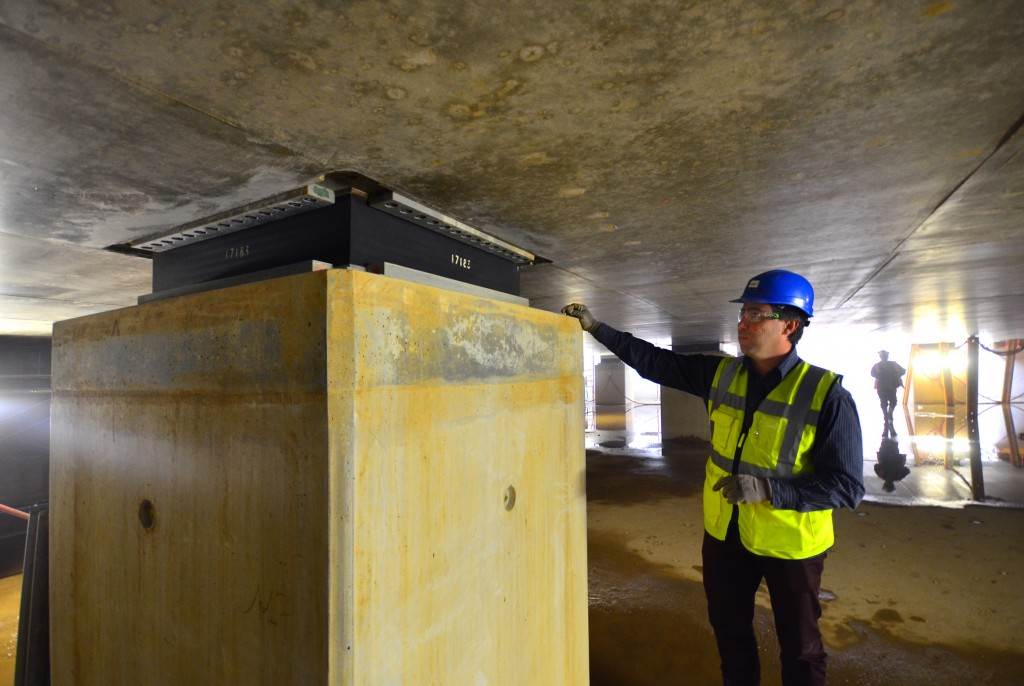On the level surface of the Seismic Pit basemat, 493 columns topped with anti-seismic bearings, made of alternate layers of metal and rubber, were put in place at regular intervals. With a capacity for lateral movement of 10 cm, these 20-cm-thick bearings are capable of filtering and absorbing the accelerations linked to earthquake-induced ground motion.