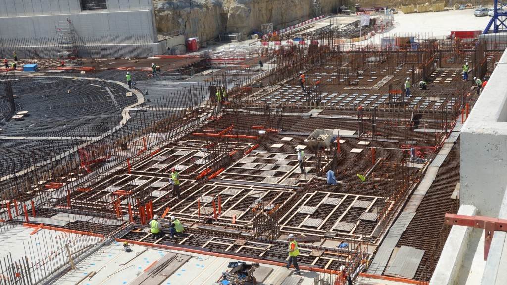 The basemat for the Tokamak Complex—the 1.5 metre-thick B2 slab—will sit directly on top of the Seismic Pit's 493 columns and pads. On 27 February 2013, the Central Integration & Engineering Directorate completed the challenging mission of closing B2 slab design and obtaining model approval in a meeting held with the European Domestic Agency and the Architect Engineer ENGAGE. Work began immediately on B2 propping and formwork activities in the Seismic Pit.