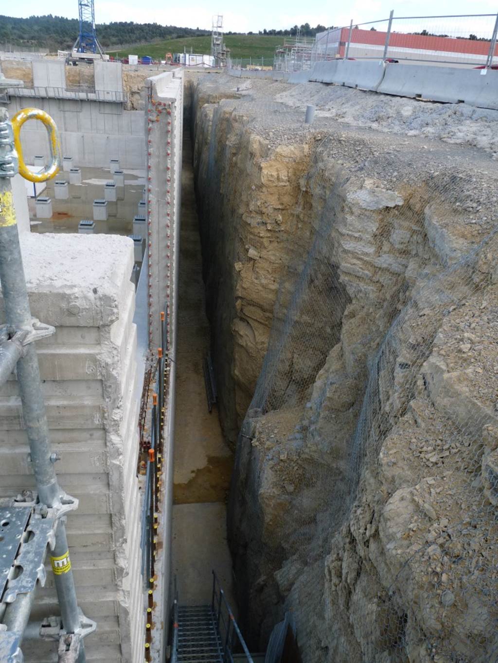 - Thickness of retaining walls: from 1.5 metres (bottom) to 0.5 metres (top)