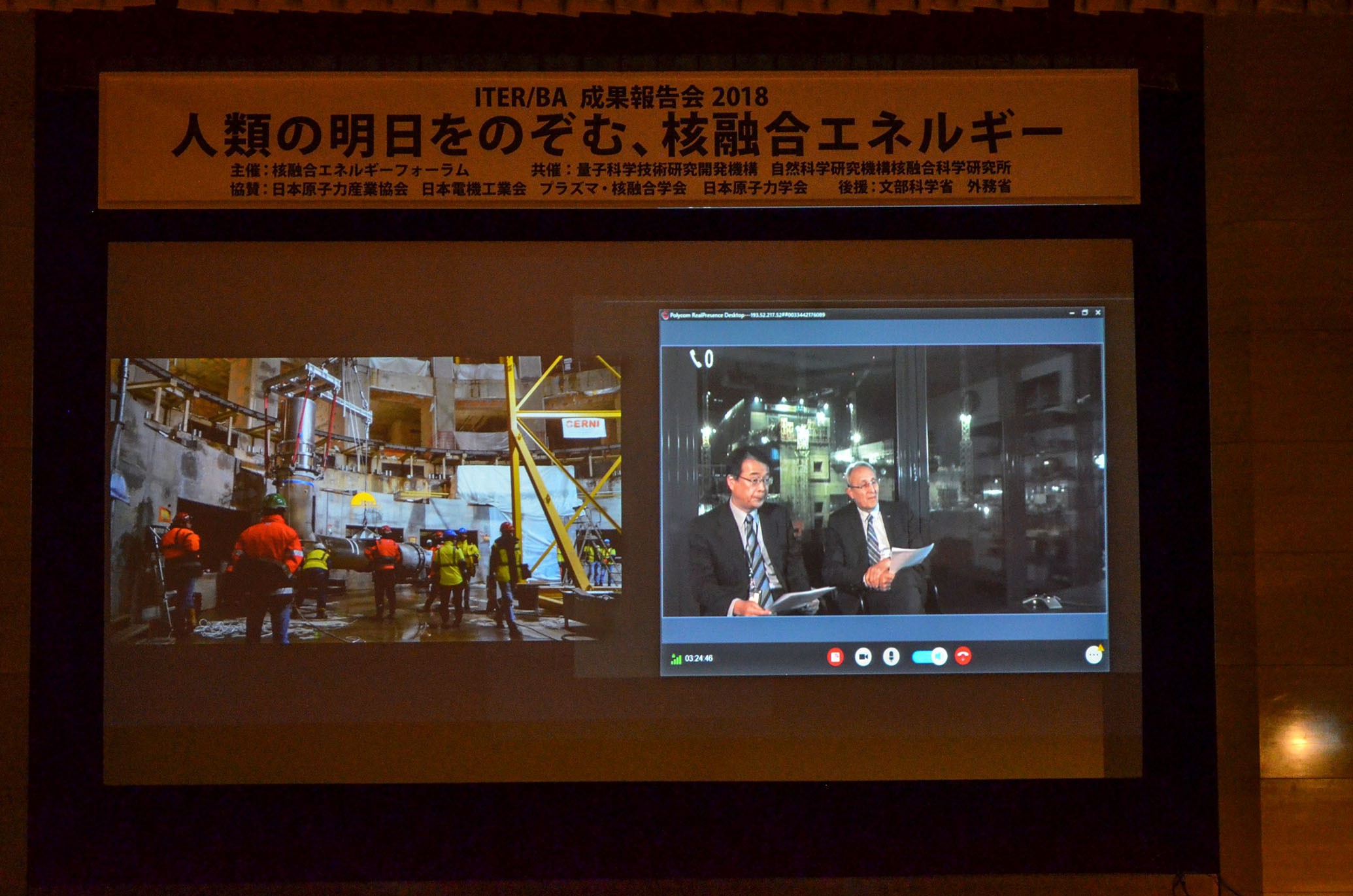 It was 6:00 a.m. at ITER Headquarters when Director-General Bernard Bigot and Deputy Director-General Eisuke Tada spoke to participants through live broadcast.