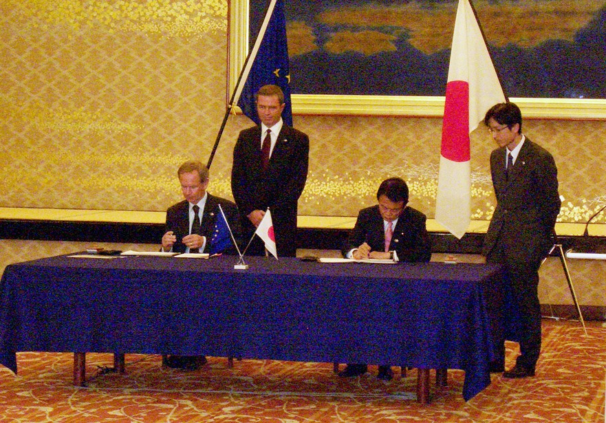 On 5 February 2005 in Tokyo, Mr Taro Aso, Minister for Foreign Affairs of Japan, and Mr Hugh Richardson, the Ambassador of the Delegation of the European Commission to Japan, signed the Agreement for the Joint Implementation of the Broader Approach Activities in the Field of Fusion Energy Research.