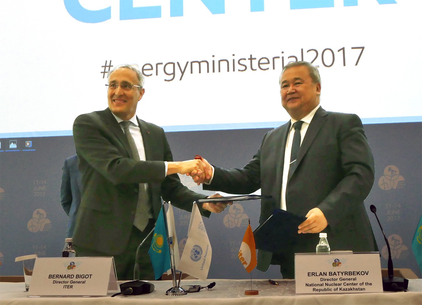 "We are very thankful to add today a new collaboration partner to the ITER Project," said ITER Director-General Bernard Bigot after signing a Cooperation Agreement with the director of Kazakhstan's National Nuclear Center, Erlan Batyrbekov.