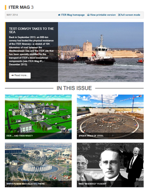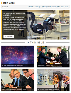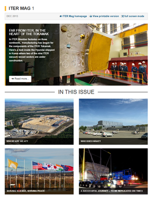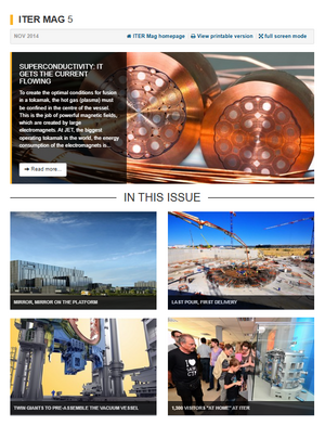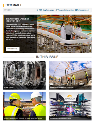 ITER Mag is a general interest publication written in French for non-specialists, and translated in English from 2013 to 2016. The archives below still present an interest by introducing the reader to ITER science and technology, and to the international partnership that is behind the project, telling the ITER story in progressive installments.