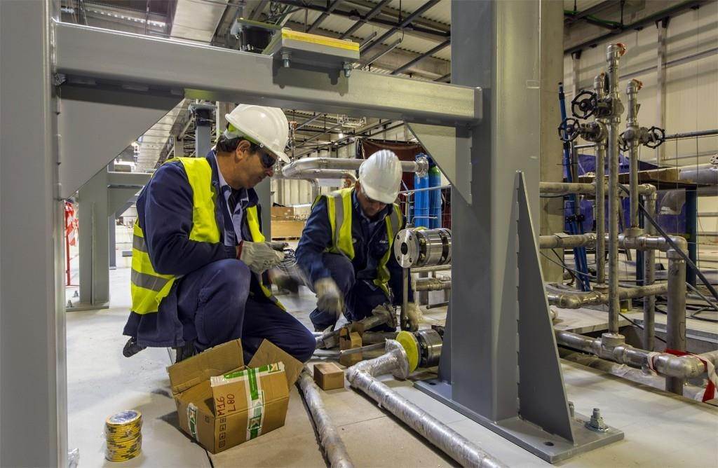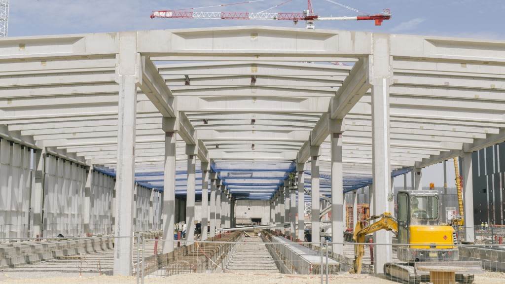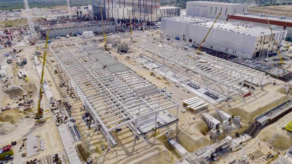 Once the current has been "rectified," it can be fed to the magnets. Given the intensity of the current, steel-jacketed aluminium bars called "busbars"—actively cooled through a constant flow of pressurized water—replace more traditional cables. No fewer than 5 km of bipolar busbars will travel through the Magnet Power Conversion buildings and across 50-metre-long elevated bridges to the Tokamak Complex. On the last leg of their journey, the busbars will almost fully occupy two levels of the Diagnostics Building.