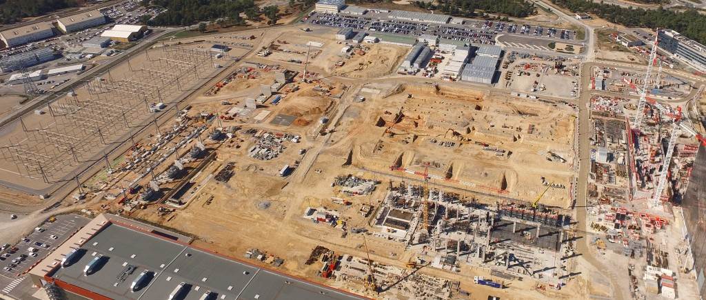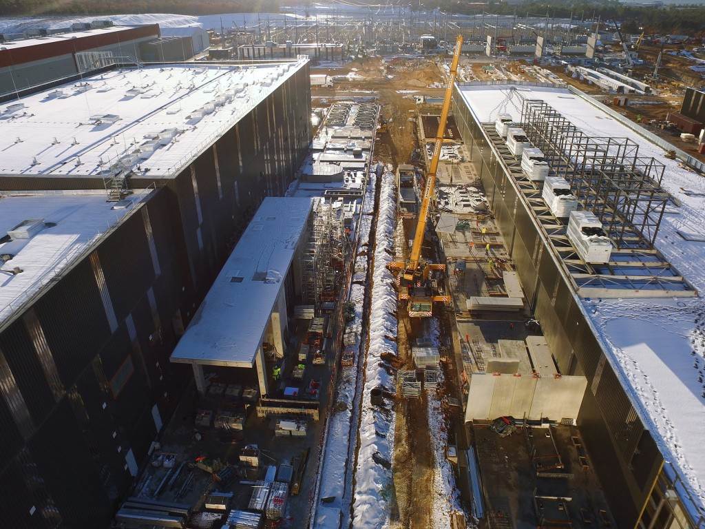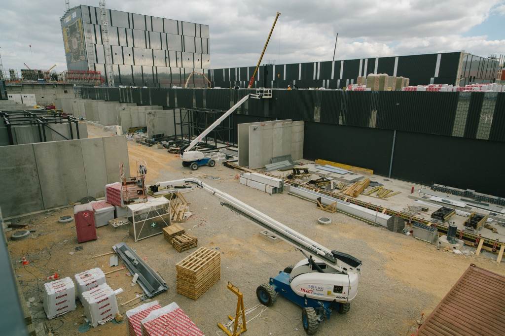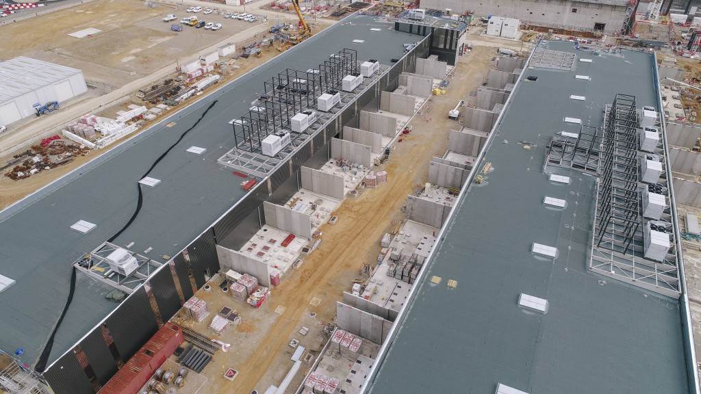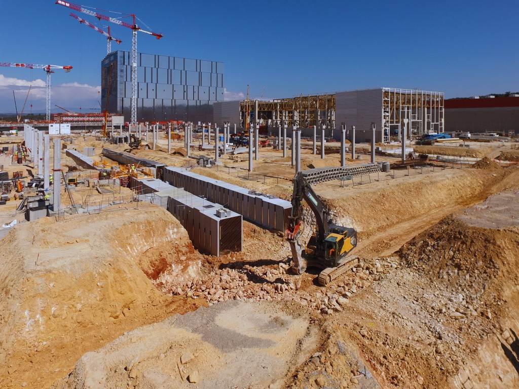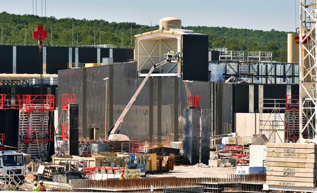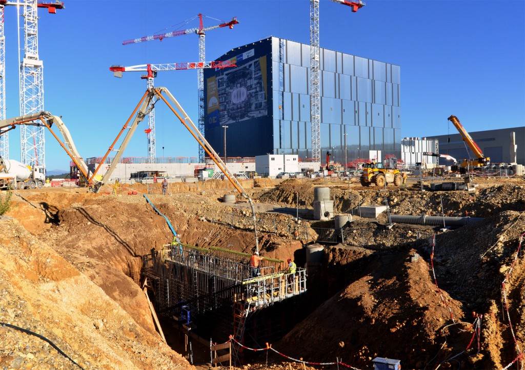 Two identical buildings on the platform—the Magnet Power Conversion buildings—play the role of adapter. One hundred and fifty metres in length, densely packed with equipment, the twin buildings are the "stepping stone" between the power arriving at the ITER switchyard at 400 kV, and the ITER magnets, which require power at DC voltages between 0.10 kV and 1.35 kV, depending on their size.