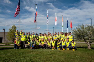 SOLPS-ITER Code Camp participants, dressed for a visit to the construction site.