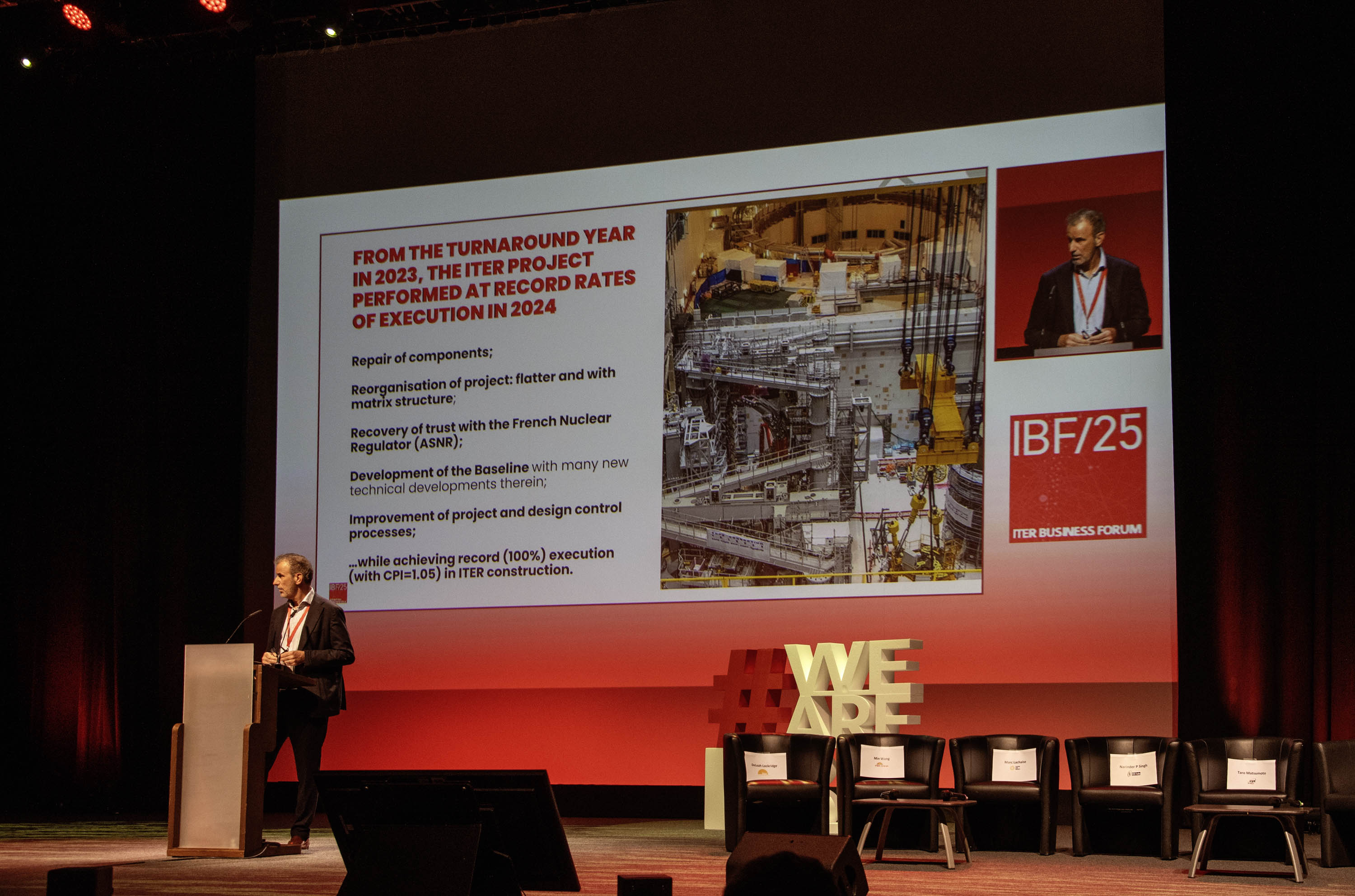 For different reasons, foremost among them the aftermath of the Covid-19 pandemic, the ITER Business Forum (IBF) had not convened for the past six years. “We missed you,” said AIF Director Fabrice Raynal in his welcome address to the participants. The 2025 edition intervenes at a critical juncture in project history. “In 2022, the project was in serious difficulty,” acknowledged ITER Director-General Pietro Barabaschi to the crowd. “Today, the outlook is different. We had a record rate of execution in 2024, the faulty components are now repaired, a new matrixed organization has been set up, and by assembling a sector module in 6 months instead of 18 previously we have made the impossible possible.” The revised project Baseline promises to “rapidly deliver substantive research.” All of this, he insisted, thanks to “all the people that use their hands and turn financing into reality.”