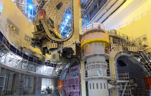 Watch as one-ninth of the ITER vacuum vessel is lifted out of tooling and lowered into the machine assembly pit. The operation—which took…