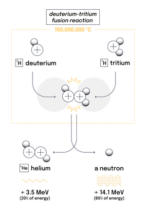 Twentieth-century fusion science identified the most efficient fusion reaction in the laboratory setting to be the reaction between two hydrogen (H) isotopes deuterium (D) and tritium (T). The DT fusion reaction produces the highest energy gain at the "lowest" temperatures. It requires nonetheless temperatures of 150,000,000 degrees Celsius—ten times higher than the hydrogen reaction occurring in the Sun.