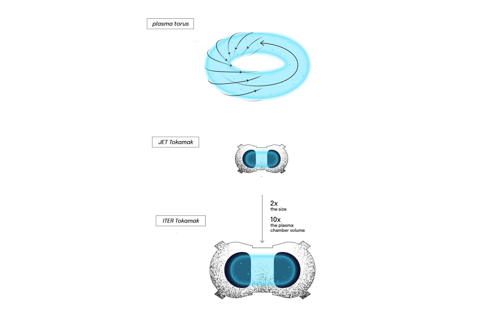 First developed by Soviet research in the late 1960s, the tokamak has been adopted around the world as the most promising configuration of magnetic fusion device. ITER will be the world's largest tokamak—twice the size of the largest machine currently in operation (JT-60SA in Japan), with six times the plasma chamber volume.